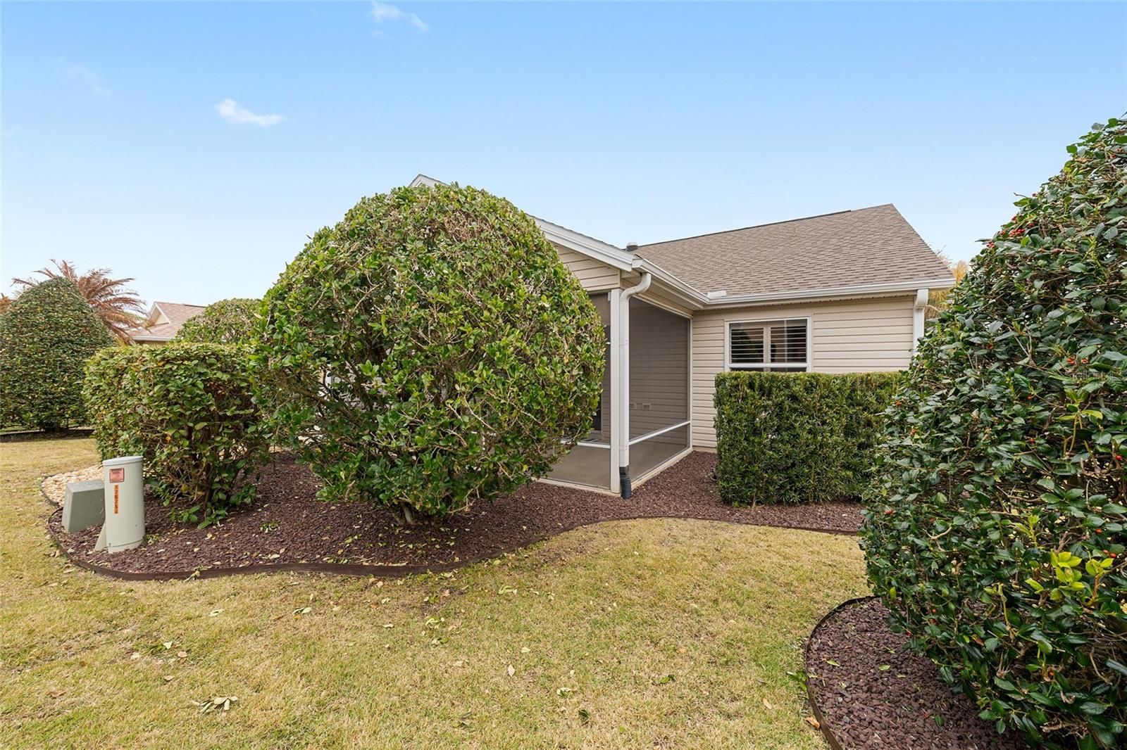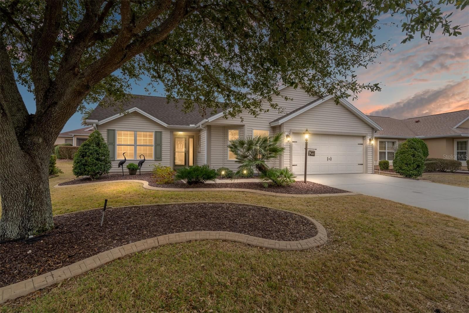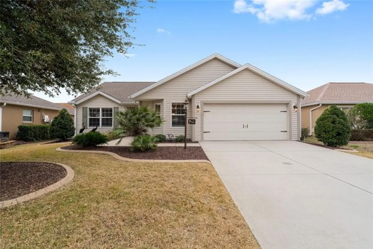 Where Comfort meets convenience… Arguably the BEST DEAL “between the 6’s “, this Wisteria offers a newer (2021) ROOF, 2015 Hot water heater, and the BOND IS PAID! Situated in the highly sought after Village of Mallory Square, this LOCTION can’t be beat… just minutes to Lake Sumter Landing by car or golf cart! Some features of this wonderful home include: a stretch across the back of the house making the Primary BR, 2nd Bedroom and Living Room very generous in size plus a 2’ stretch in the garage making it possible to fit 2 cars and a golf cart, CROWN MOLDINGS, PLANTATION SHUTTERS & Ceiling Fans throughout, CUSTOM CLOSETS & luxurious Karastan carpeting in all three Bedrooms, Maple Cabinetry & GRANITE Countertops in the Eat In Kitchen, storm door with a leaded glass entry interior door, Tiled Walk-in Roman Shower, dual sinks with recently installed GRANITE Countertops and one of two Linen Closets in the Primary Bath, Tiled Hall Bath with GRANITE Countertops, Cherry Engineered Hardwood flooring and custom roll down shade in the spacious Living Room, large Solar tube in the main Living Area, wonderful screened Lanai and grilling Patio, pull down stairs leading to a generously sized floored attic area (yes, you can stand up!), GAS cooking & heating, Indoor Laundry Room, & an offset home site (NO KISSING LANAI)! Spacious lanai with pull down shades and an epoxy coated floor! This home will convey with a HOME WARRANTY (Platinum Plan) from Select Home Warranty that covers the systems and appliances through August 24, 2028. And did I mention, the BOND IS PAID!