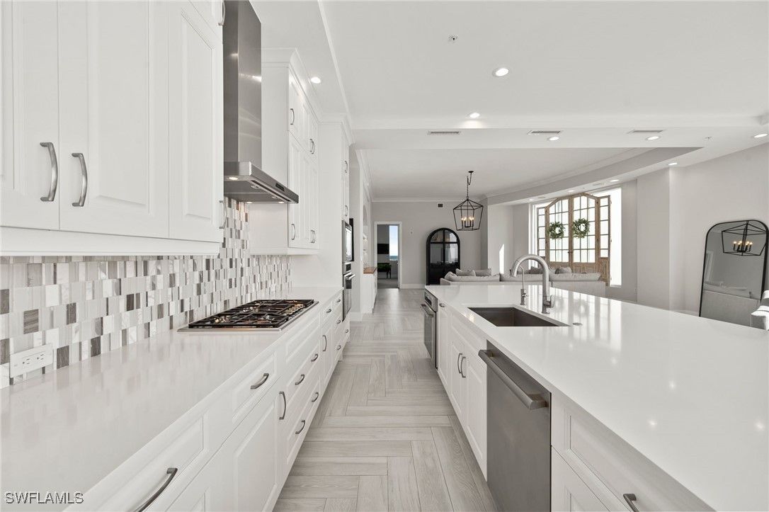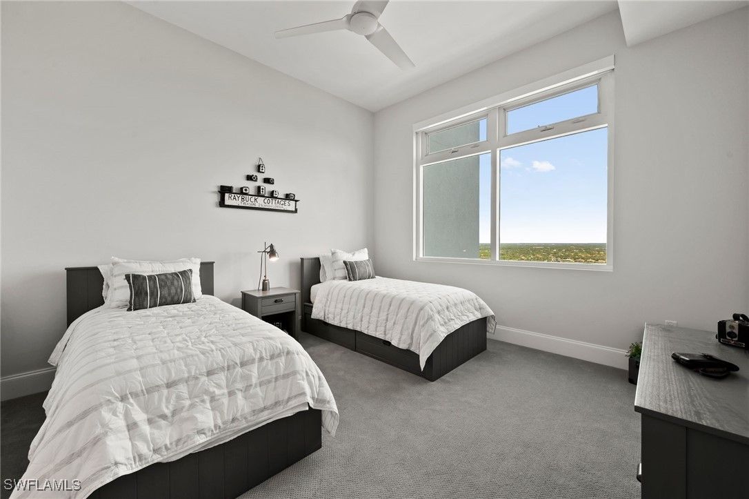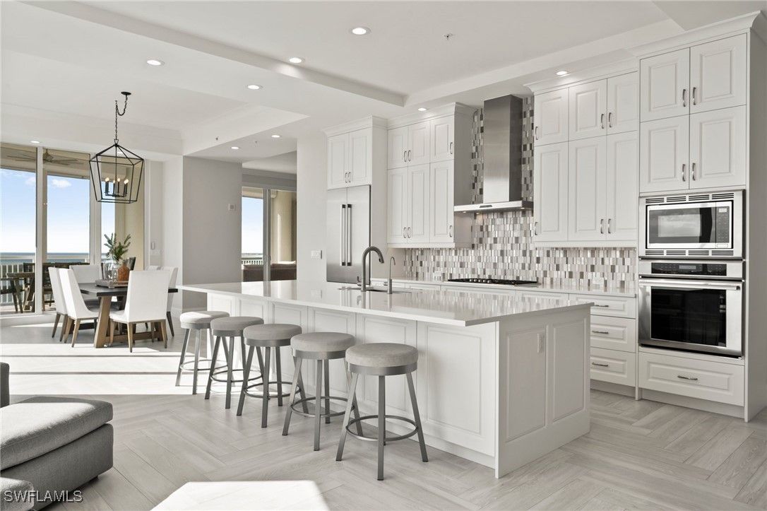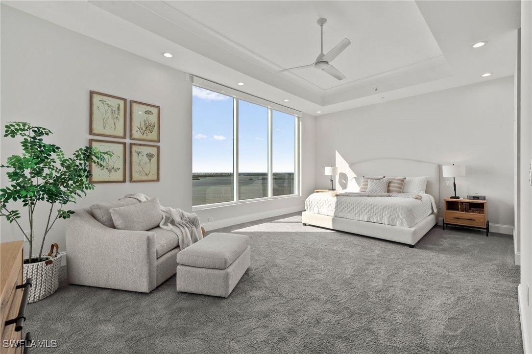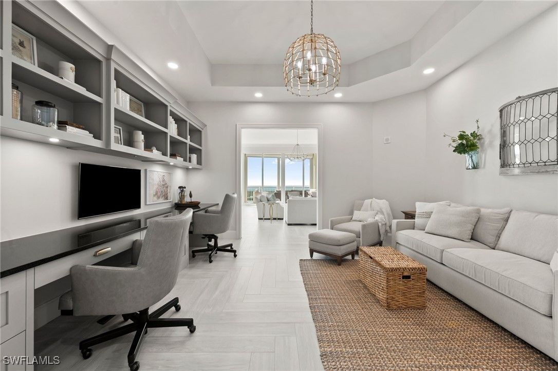Honey Stop The JET! Reduced $500,000. Seaglass penthouse offering unobstructed Gulf and Bay views, 4,590 sq ft of refined living, 4 bedrooms, 5 baths, a media room, two gathering rooms, and one of the few private 2.5-car garages in the building. Owner has residents in Seaglass to purchase the garage for $300,000 if new owner does not need a private enclosed 2.5-car garage. Move-in ready and available for immediate occupancy. Attractive pricing reflects the seller’s readiness to move forward, creating exceptional value for a true penthouse experience in Bonita Bay. Floor-to-ceiling windows and an open-concept layout showcase sweeping horizon views. The chef’s kitchen features Thermador appliances, gas cooking, double ovens, a wine chiller, and a sleek island designed for gathering. Each bedroom offers an en-suite bath and private retreat-like ambiance. The expansive balcony with built-in gas grill provides a front-row seat to the Gulf’s most breathtaking sunsets. Seaglass residents enjoy a resort-style pool and spa, state-of-the-art fitness center, private beach club, miles of walking and biking trails, and marina access. Optional memberships include five championship golf courses, tennis, pickleball, and a world-class lifestyle center. Penthouse opportunities in Seaglass are limited and highly sought after — interest has been strong and has no asessments. This is a rare chance to live the Bonita Bay lifestyle at its highest level.