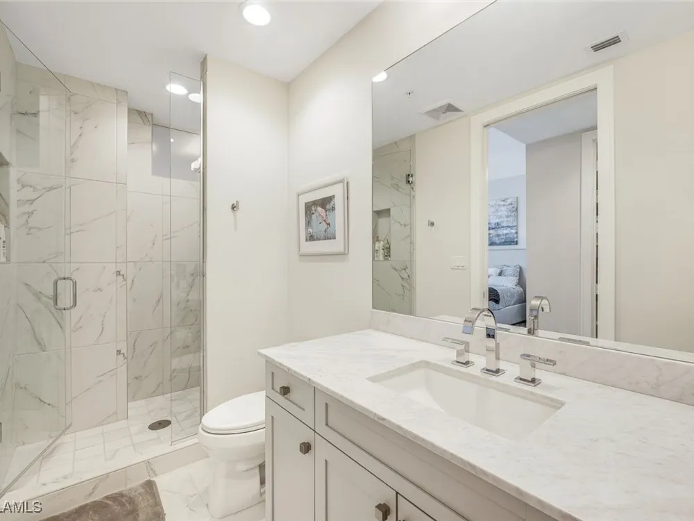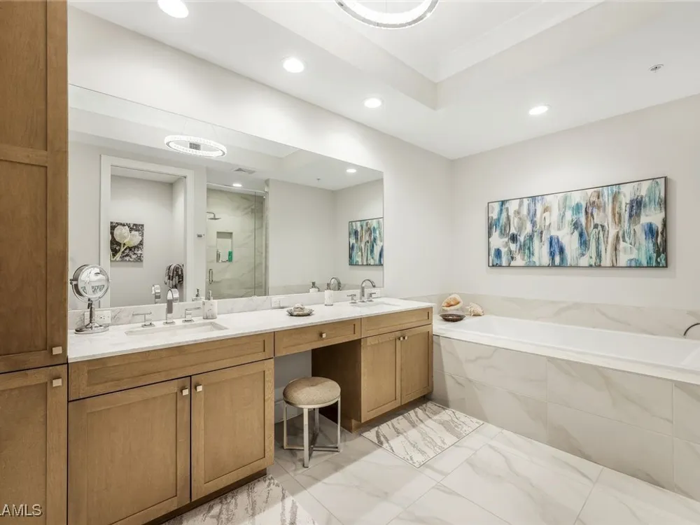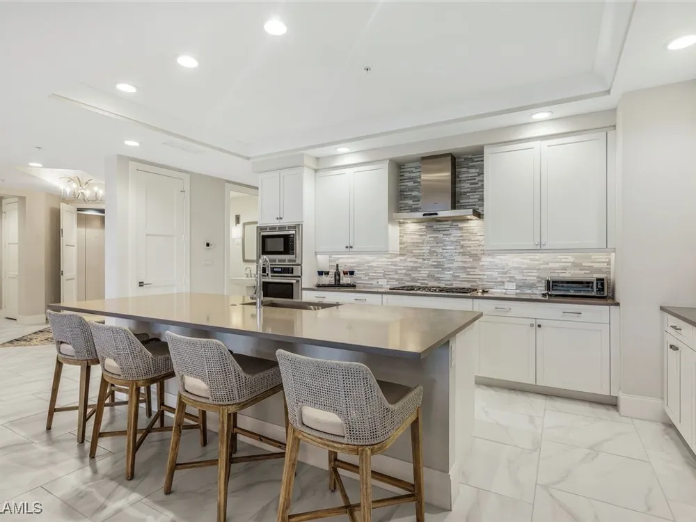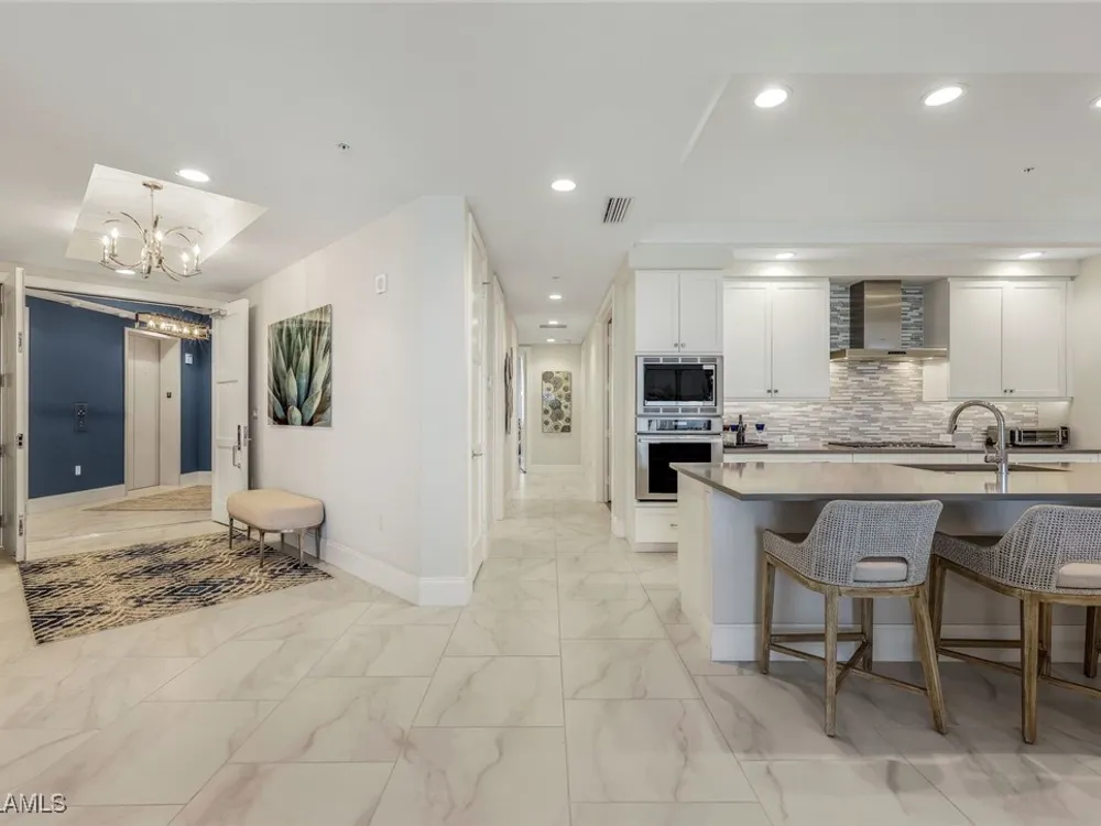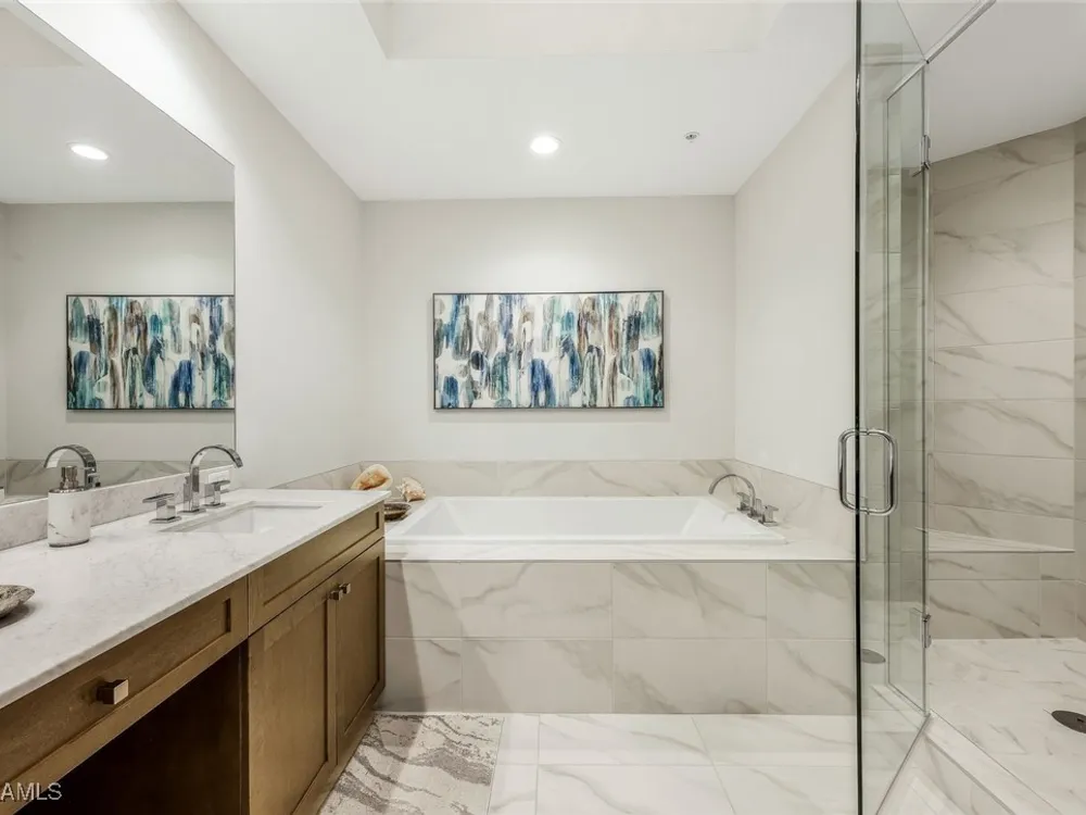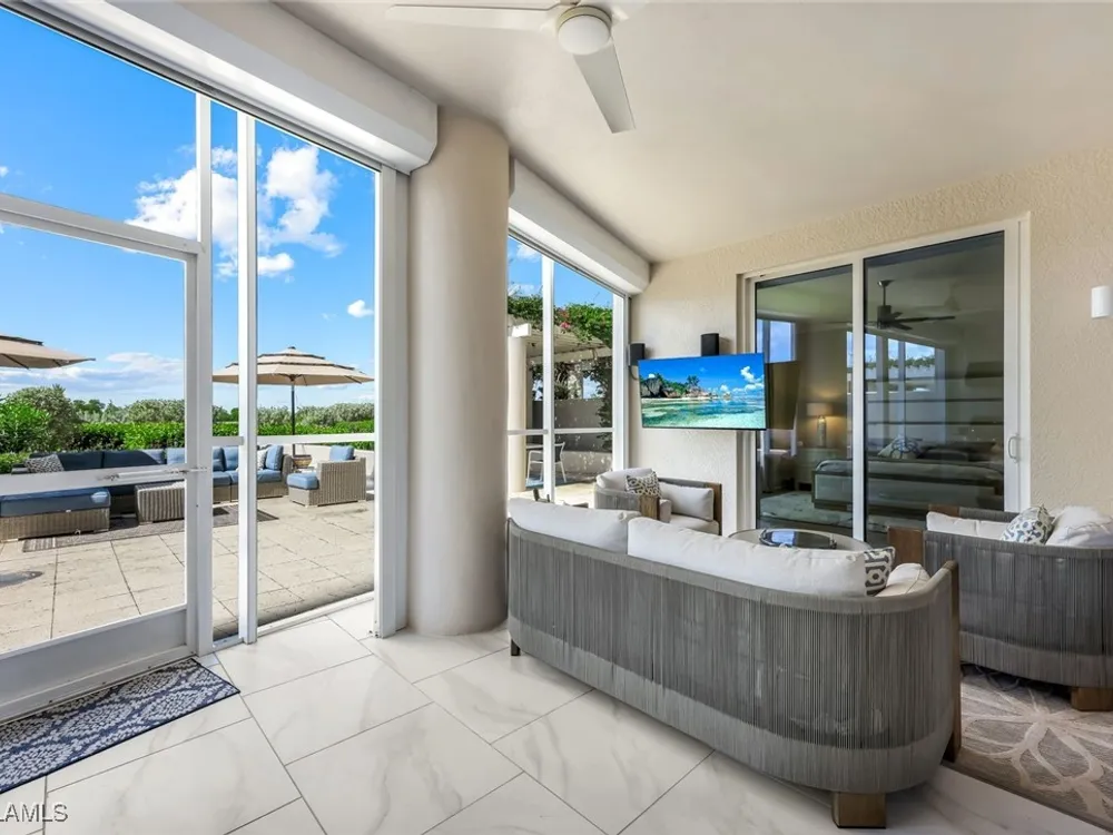 Walk from your terrace to the resort pool/spa area! This is your RARE opportunity to own one of the most unique and beautifully upgraded homes, with extended terrace space on both the East & West Sides of the home in Bonita Bay.This gorgeous LIKE NEW, HOME in Seaglass of Bonita Bay has it all - tile flooring throughout the main living areas, beautiful wood flooring in the bedrooms and den, custom lighting, high end appliances, Â and so much more! With almost 3090Â square feet of air conditioned space and an additional 1580 square feet of outdoor space, there is plenty of room for family and friends to gather together! Enter the home through the private elevator lobby which can be locked/unlocked from your cell phone. Once inside, be impressed by the spacious layout, the volume ceilings and THE FLOOR TO CEILING WINDOWS throughout the home! The outdoor space is second to none! The lanai on the West side of the home boasts a gas grill & hurricane shutters. Just outside the screened lanai is an outdoor patio where lounging in the winter sun is a favorite past-time. The kitchen, living & dining are open to one another, with the primary bedroom suite on the Western side of the home and all guest bedrooms tucked privately away on the East side of the home. WALK to the COMMUNITY POOL FROM your lanai! This condo lives like a single family home, as it is so easily accessible. Walk from the garage to your home or take the elevator. Easy living at its finest! No maintenance, no fuss! Each night, you will enjoy the spectacular colors of the sky as the sun sets to the West . When you desire the perfect view of the Southwest Florida coastline from Fort Myers to Naples, simply take the elevator to the 28th floor. There is an exclusive rooftop deck with plenty of space for you and your guests to relax with your favorite bottle of wine. In the mornings, sit on the East balcony with a cup of coffee as the sun rises in the sky. Additional highlights include a Water Cop leak detection system, new AC & new refrigerator in 2020, and a new hot water heater in 2023. The rich amenity center is like no other with a huge club room, card room, billiards room, state of the art gym, movie theater, massage rooms, steam showers, and one of the most beautiful pools in all of Bonita Bay! Bonita Bay amenities include a private beach club, kayaks, canoes, pickle ball, tennis, several community parks/public spaces, 12+ miles of walking/biking paths and a full service marina/restaurant! There are FIVE golf courses, several restaurants, a state of the art fitness center, tennis and so much more available with club membership (additional fees)! Bonita Bay is close to ALL that SWFL has to offer - world class dining/shopping, beaches, nature preserves, the burgeoning downtown Bonita Springs, downtown Naples and so much more! A very SHORT drive to RSW International Airport! Whether you are searching for your winter retreat or a permanent residence, this home could very well be THE ONE!