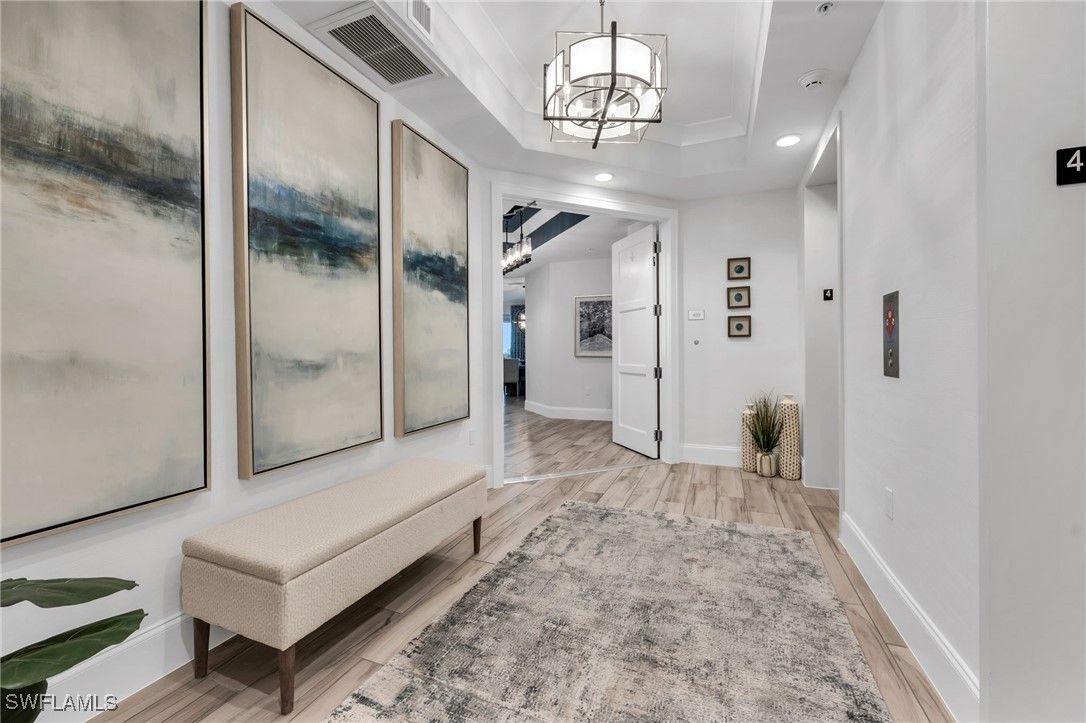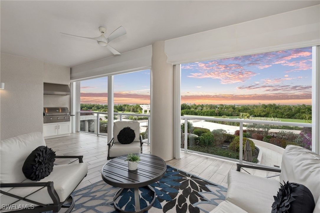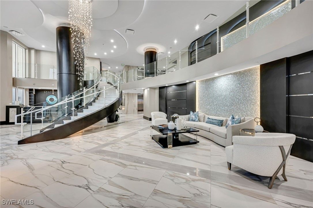 Welcome to this stunning 3 Bedroom plus Den, 3.5 Bath furnished and freshly painted residence located in one of Bonita Bay’s premier high-rises – SEAGLASS. A private elevator entry foyer leads you into an elegant and sophisticated open living/dining area with 10 ft. plus ceilings and a ceramic wood effect floor tile throughout the living area of the home that benefits from many upgrades. Custom closets and motorized shades in all rooms. The west-facing terrace overlooks the Bonita Bay’s recently refurbished Bay Island golf course, Estero Bay and the Gulf of Mexico. The terrace has a gas grill and has been upgraded with glass panel railings, bug protection power screens, and power storm shutters, perfect for soaking in the dramatic and breath-taking sunsets over the Gulf of Mexico. There are two well-spaced guest bedrooms, with adjoining east facing terrace. EV capable garaging for two cars and a private air conditioned storage locker are located on the UPPER LEVEL. Seaglass residents benefit from a vibrant social scene with a social room, card room, theater, fitness center, pool room and a stunning pool and spa with an outdoor screened cabana. There are three guest suites for your visitor’s convenience in the tower plus another 4 guest suites in the amenity center. Seaglass also has a 24-hour reception desk. Bonita Bay has 5 golf courses, 18 court tennis, 18,000 sf. fitness, 8,000 sf. Lifestyle spa & salon, full-service marina, Gulf front beach park, 5 restaurants, 10 pickle ball courts, croquet, bocce ball, canoeing, Life Enrichment Center & 3 parks.