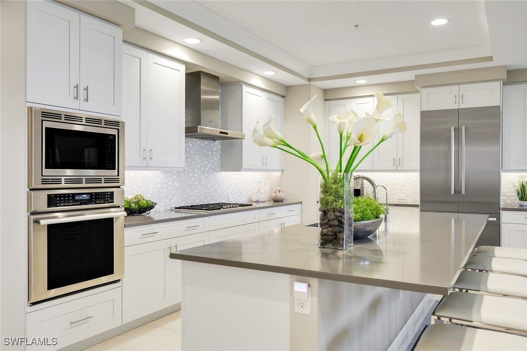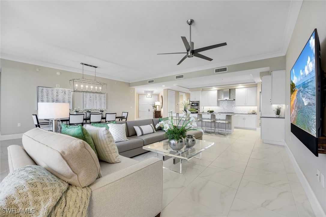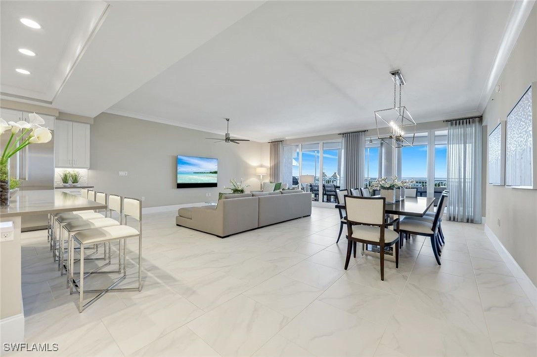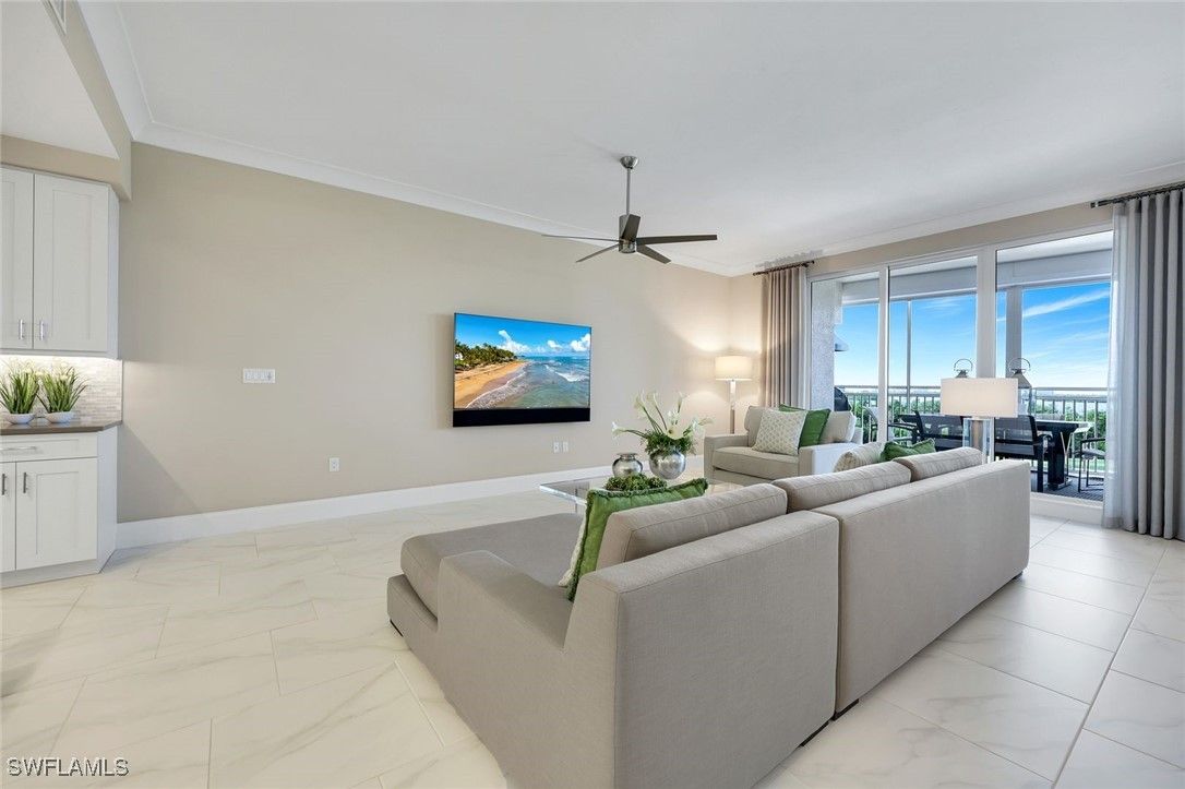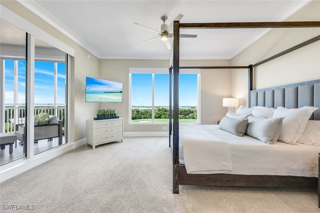 Enjoy easy, elevated high-rise living in this GORGEOUS THREE BEDROOM PLUS den residence in Seaglass at Bonita Bay—a sophisticated home perfectly positioned within the building for an ideal blend of privacy, views, and convenience. From the moment you enter, you’ll be drawn to the volume ceilings, expansive windows, and the effortless indoor-outdoor flow that creates the perfect setting for entertaining or relaxing in style. The home’s state-of-the-art kitchen is designed to impress, featuring refined finishes, abundant storage, and a seamless connection to the main living areas. Open to the living and dining spaces, the great room extends naturally to the lanai, allowing the outdoors to become a true extension of the home. Enjoy the luxury of multiple outdoor living spaces, perfect for taking in morning sunrises and glowing evening skies—and even better, every bedroom offers outdoor access, enhancing the lifestyle and livability of this exceptional residence. The thoughtfully designed split-bedroom floor plan provides privacy for the primary suite and guests alike. A dedicated den/office adds the perfect versatile space for remote work, reading, or a media room. Every detail has been considered, including custom-designed closets throughout, enhancing organization and maximizing storage in every room, along with remote-control hurricane shutters, a new hot water tank (2023), a WaterCop leak detection system throughout the home, a reverse osmosis drinking water system, remote blackout shades in all bedrooms, custom closets completed in 2025, and an air scrubber system. Additional conveniences include private elevator access and an easily accessible rooftop terrace, offering yet another opportunity to enjoy the beautiful Southwest Florida skies and coastal breezes. Residents of Seaglass at Bonita Bay enjoy a recently upgraded, exceptional amenity center featuring a state-of-the-art fitness facility, theater, social rooms, steam rooms, and a stunning resort-style pool—plus full access to the unmatched lifestyle and natural beauty of Bonita Bay. Bonita Bay offers an array of exceptional amenities, including a private beach club, kayaking, canoeing, pickleball, tennis, and multiple community parks. Explore over 12 miles of walking and biking paths, or take advantage of the full-service marina and restaurant. Golf enthusiasts will appreciate the FIVE on-site courses, complemented by several dining options, a state-of-the-art fitness center, tennis, and more—all available with club membership (additional fees apply). Ideally located close to ALL that Southwest Florida has to offer—world-class dining and shopping, pristine beaches, nature preserves, the burgeoning downtown Bonita Springs, and downtown Naples—plus RSW International Airport just a short drive away. Whether you’re searching for a winter retreat or a permanent residence, this home could very well be THE ONE. Don’t miss this exceptional opportunity.