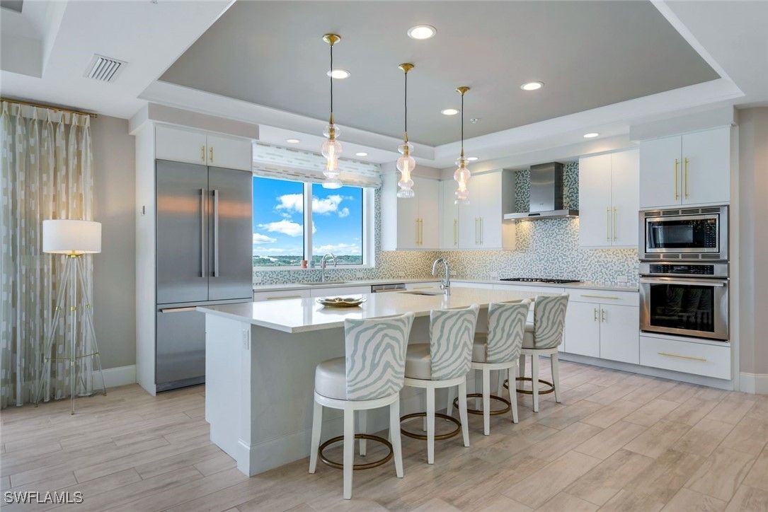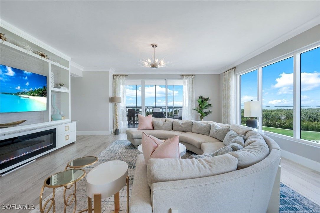 Indulge in the epitome of luxury living at SEAGLASS, in a prestigious corner residence that rarely becomes available. Upon entering through a private elevator foyer and double-door entry, you’re welcomed into an expansive 3-bedroom plus den/ office layout, featuring 3.5 elegant ensuite baths across 3,421 square feet of refined living space. Revel in breathtaking western views of Estero Bay, the golf course, and The Gulf of America. This residence boasts an array of high-end finishes, including exquisite tile flooring, a built-in flat- screen TV, and a linear fireplace. The chef’s kitchen is a culinary dream, equipped with a Thermador gas cooktop, custom European soft-close cabinetry, quartzite countertops, and a spacious island perfect for entertaining. Additional features include a pantry, a dry bar, intricate moldings, and 10ft ceilings, alongside, private storage and two coveted assigned parking spaces in the secure under-building garage. The luxurious owner’s suite offers two walk-in closets, custom finishes, and a breathtaking spa-like bath. The opposite wing hosts two generous guest suites, each with ensuite baths, walk-in closets, and private terraces. The screened lanai, complete with a built-in gas grill, invites you to dine al fresco while taking in the lush surroundings and stunning sunsets. SEAGLASS enhances your lifestyle with exceptional concierge services, a beautifully designed social club room, a theater, and a billiards and card room, all recently transformed by Clive Daniels. Enjoy access to private guest suites and a magnificent resort pool and spa. As a resident of Bonita Bay, you’ ll also benefit from a staff-attended private beach club on Bonita Beach, just a short 10-minute drive away, along with an on-site marina featuring a restaurant, boat storage, and ramp. Explore biking and hiking trails, kayak rentals, and three picturesque parks. By joining The Club at Bonita Bay, you’ll unlock access to five golf courses designed by Arthur Hill and Tom Fazio, 18 tennis courts, pickleball, a croquet lawn, and a zero-entry pool with poolside dining, along with five restaurants and a state-of-the-art Lifestyle Center fitness facility. Embrace the perfect balance - Live, Work and Play in Bonita Bay!