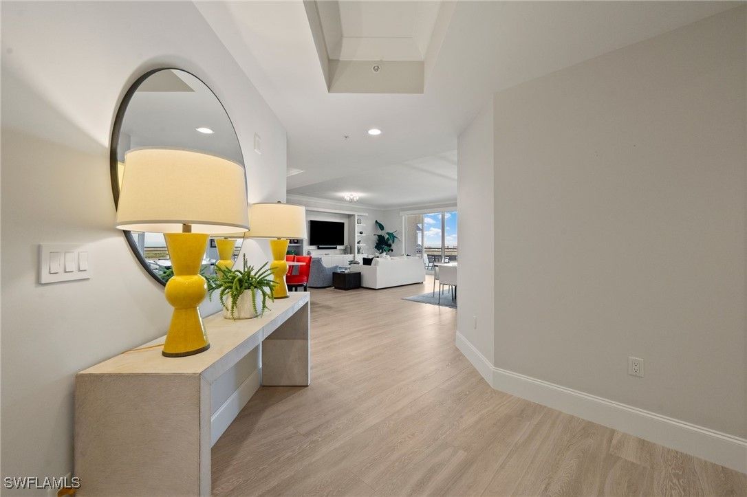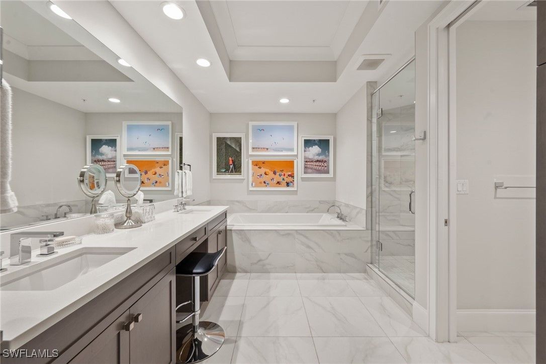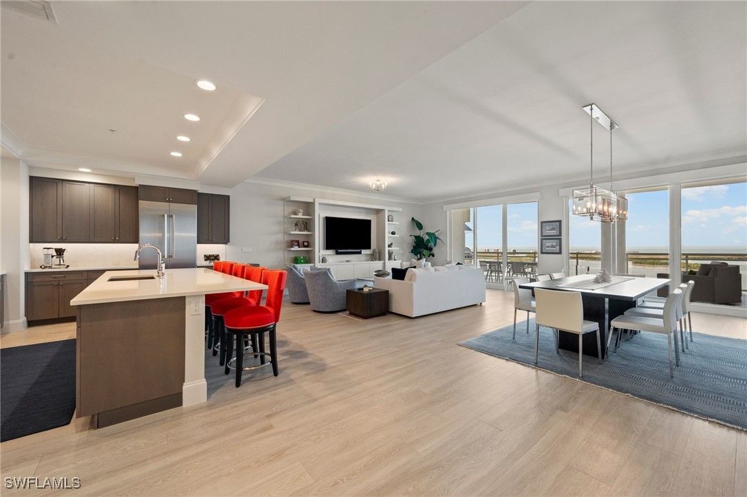 Welcome to the kind of home people dream about when they imagine life on the Gulf Coast. Perched on the 16th floor of Bonita Bay’s iconic Seaglass tower, this residence isn’t just a place to live — it’s a front row seat to Southwest Florida’s most breathtaking sunsets, morning light, and endless horizon views. From the moment you step inside floor to ceiling glass draws your eyes straight to the Gulf, the Bay, and the lush golf course canopy below — a daily reminder that nature is the true luxury here. The open great room and expansive terrace create a seamless indoor outdoor flow, perfect for slow mornings with coffee or evenings spent watching the sky turn shades of gold and coral while grilling out on the impressive Blaze Marina grade grill. Lasting for years to come. The gourmet kitchen with Thermador appliances is designed for the way people actually live and gather — a large island for conversation for effortless cooking, and a layout that keeps you connected to the views and the people you love. The owner’s suite feels like a private retreat in the sky, complete with terrace access, and a spa inspired bath. Two additional guest suites offer comfort and privacy, while the den provides flexible space for work, creativity, or quiet moments. Life at Seaglass is pure resort living. Spend your days floating in the resort style pool, unwinding in the spa, hosting friends in the club room, or catching a movie in the private theater. Start your mornings in the state of the art fitness center, then wander miles of shaded walking paths or head to Bonita Bay’s private beach park for toes in the sand simplicity. With five championship golf courses, a full service marina, pickleball, tennis, and a vibrant social scene, Bonita Bay offers a lifestyle that feels both elevated and effortless — a rare blend of luxury, nature, and community. Unit 1603 is more than a residence. It’s a sanctuary in the sky, a daily escape, and a chance to live the Bonita Bay lifestyle at its most beautiful.