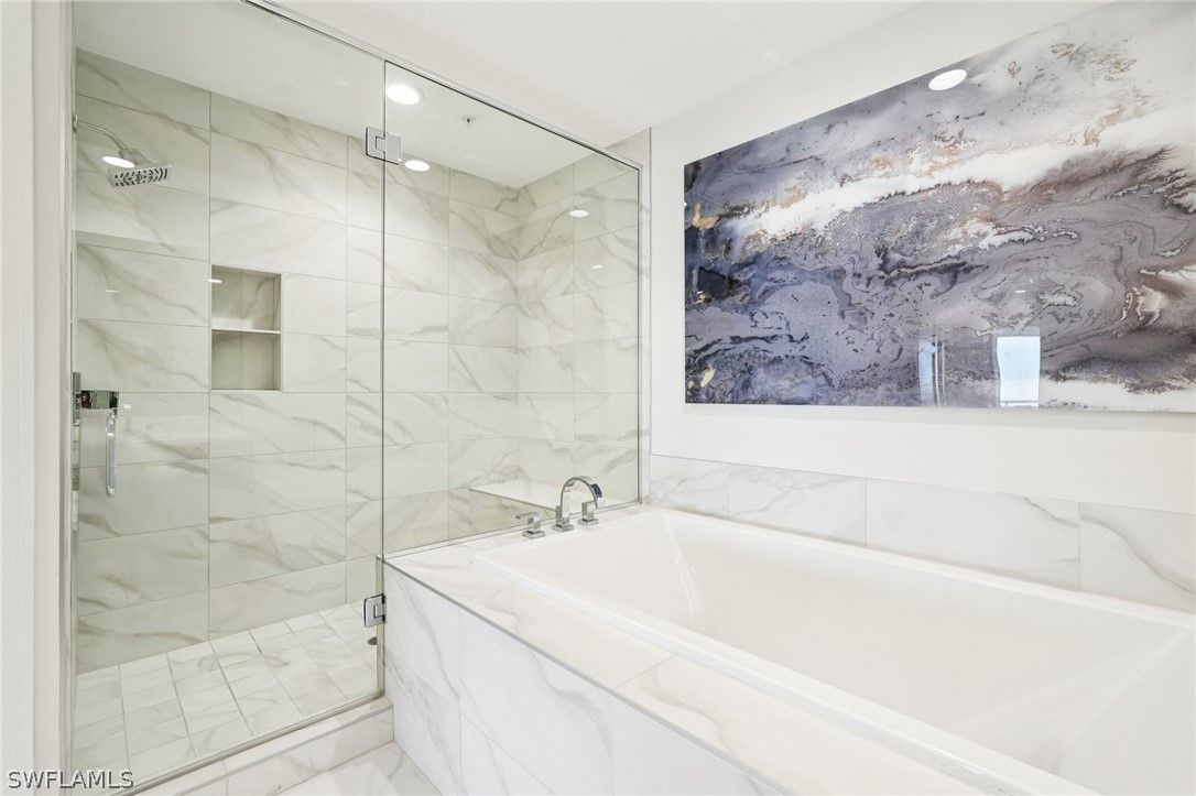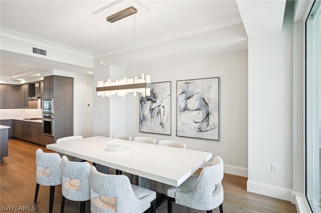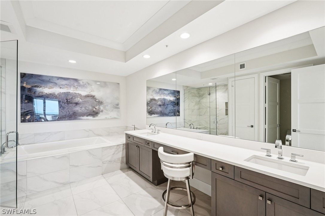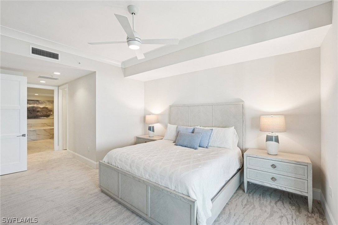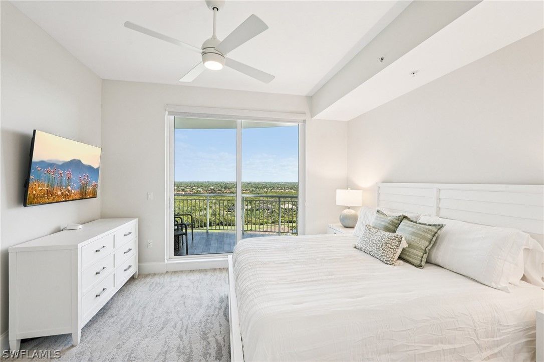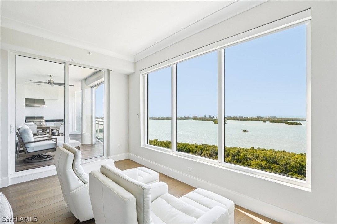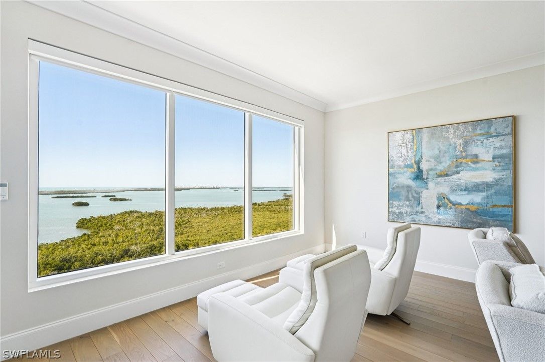 Welcome to your extraordinary sky residence in the heart of Bonita Bay, where refined elegance meets effortless coastal luxury. Perched on the 16th floor, this fully reimagined residence offers breathtaking panoramic views and a sophisticated interior curated and designed by the renowned team at Robb & Stucky. Every detail has been thoughtfully selected, creating a seamless blend of timeless design and modern comfort. This stunning residence has been completely transformed! From the moment you enter, you are greeted by an atmosphere of understated opulence, elevated by designer furnishings, custom finishes, and impeccable craftsmanship throughout. The interiors reflect Robb & Stucky’s signature aesthetic: clean lines, layered textures, refined materials, and a serene coastal palette that perfectly complements the expansive views beyond. The open-concept living and dining areas are both inviting and dramatic, ideal for entertaining or enjoying quiet evenings above it all. Floor-to-ceiling glass frames sweeping vistas while filling the home with natural light. The expansive chef’s kitchen is a true showpiece, featuring premium appliances, designer lighting, and luxurious surfaces that combine beauty with functionality. Each bedroom is a private retreat, thoughtfully appointed with new furnishings, elegant fixtures, and spa-inspired baths. The primary suite offers a tranquil sanctuary with stunning views, custom details, and a beautifully redesigned bath that rivals a five-star resort experience. All furnishings have been replaced in 2025 — creating a truly turnkey opportunity for the most discerning buyer. From new lighting and plumbing fixtures to freshly Sherwin-Williams painted interiors, Masland carpet, Sony TVs and sound bar, and curated designer décor, no detail has been overlooked. Located within the prestigious Bonita Bay community, residents enjoy world-class amenities, lush landscaping, and an unparalleled Southwest Florida lifestyle. This is more than a condominium. It is a fully redesigned luxury residence ready to be enjoyed immediately. A rare opportunity to own a fresh, 2025, designer-furnished masterpiece in the sky.