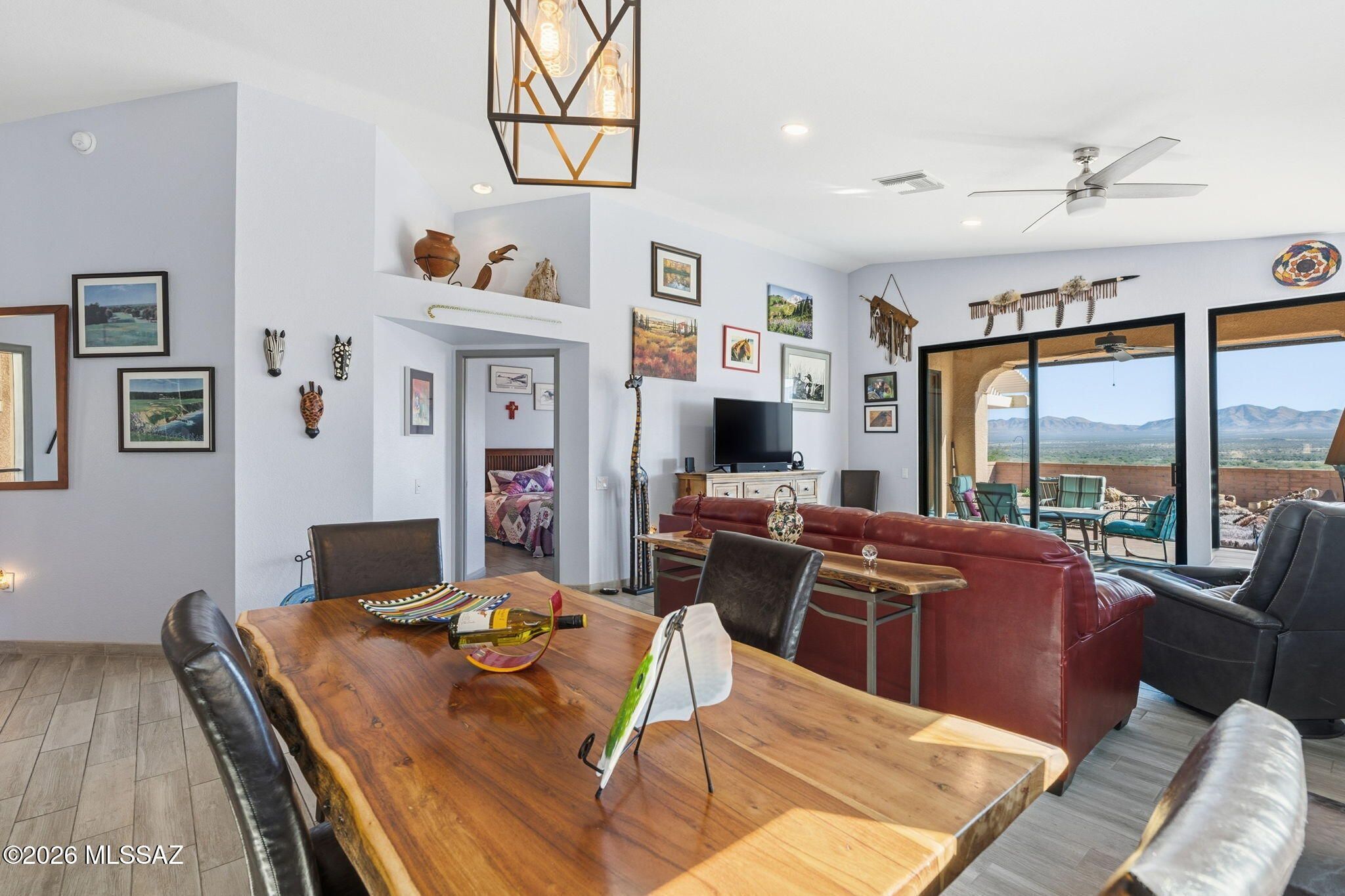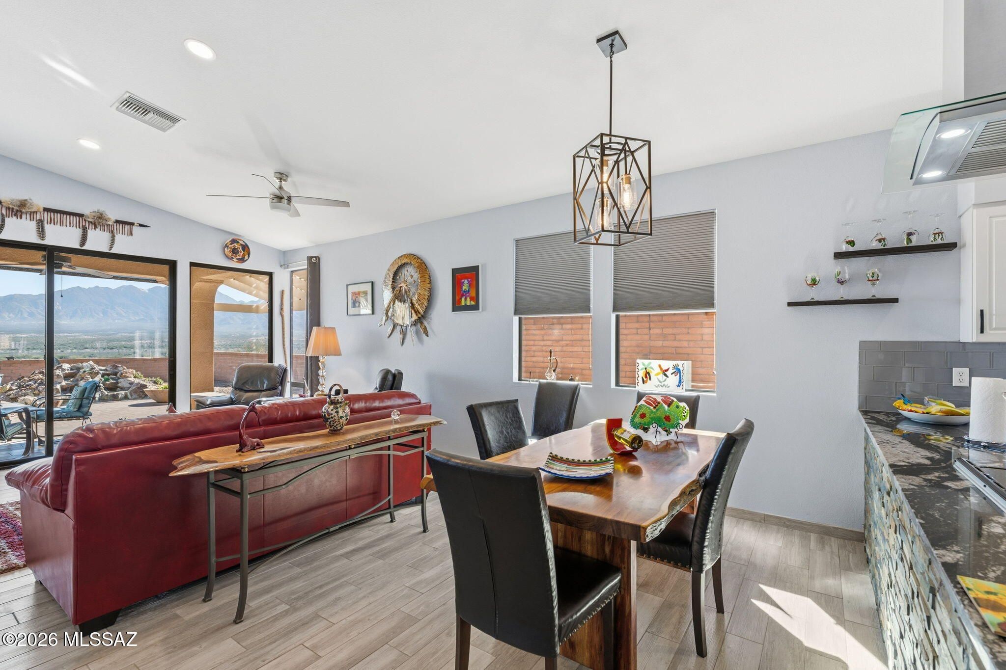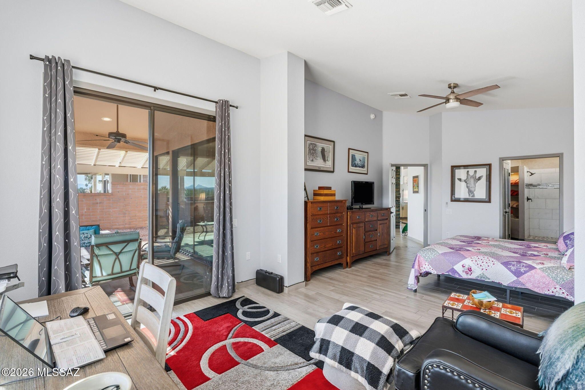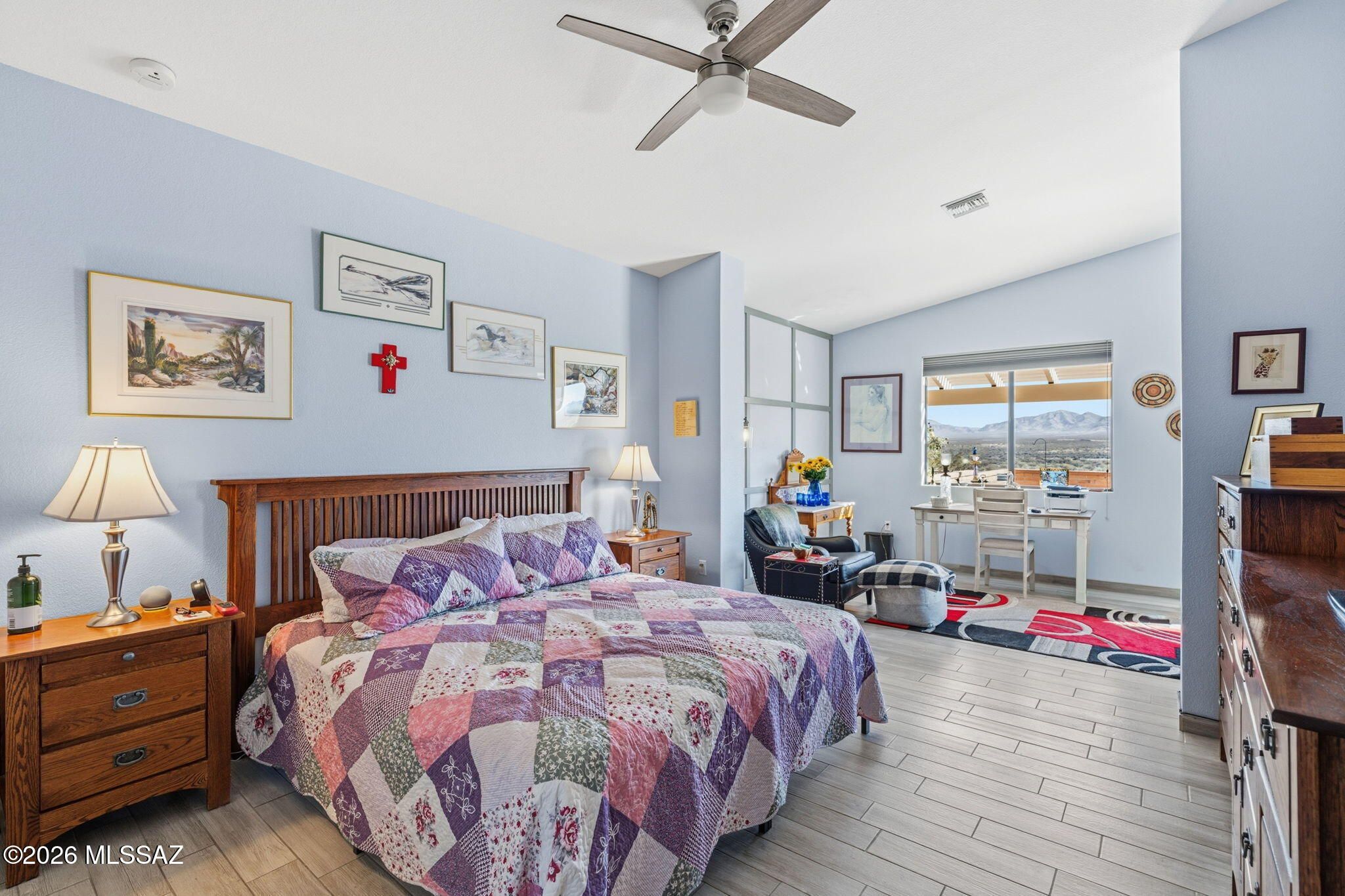 Lovely views and a luxurious en-suite primary bathroom! If living in a prime development sounds appealing, then put this opportunity in San Ignacio Vistas at the top of your Green Valley tour list. This delightful 2-bedroom, 2-bathroom South Western home offers an array of advantages. Enjoy spectacular mountain views. Across the threshold, nice touches embrace you with a stately entryway, an open layout, stylish fixtures blending seamlessly with bounteous window light, neutral decor, and vaulted ceilings. The spacious, thoughtfully designed kitchen brims with natural light, fresh updates, granite counters, and ample pantry space. The kitchen opens seamlessly onto the dining room, living room, and patio. The peaceful primary bedroom includes sitting space and an attached office. Must See.