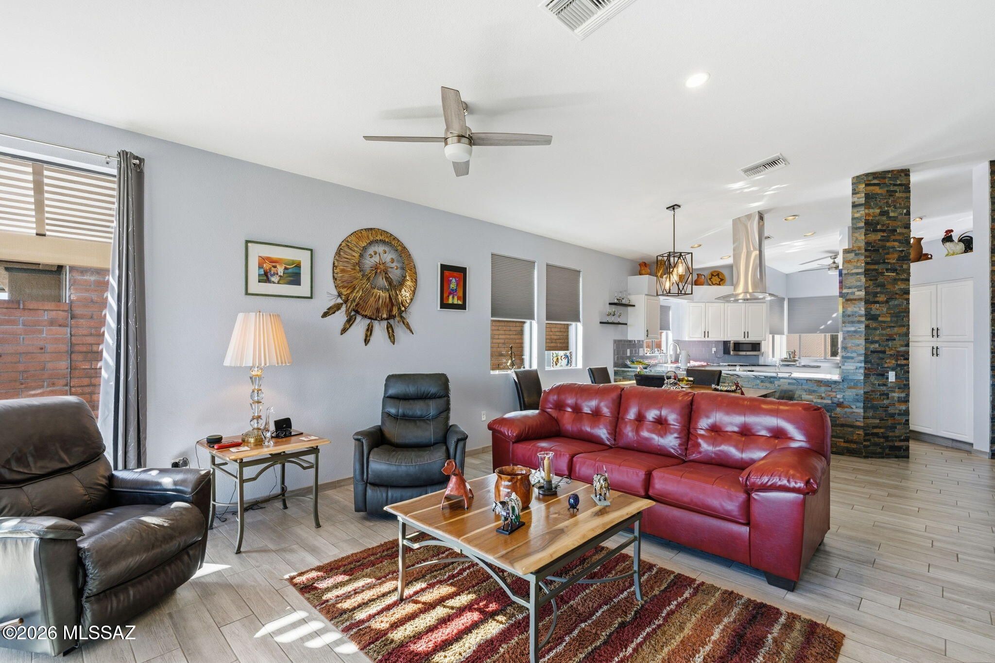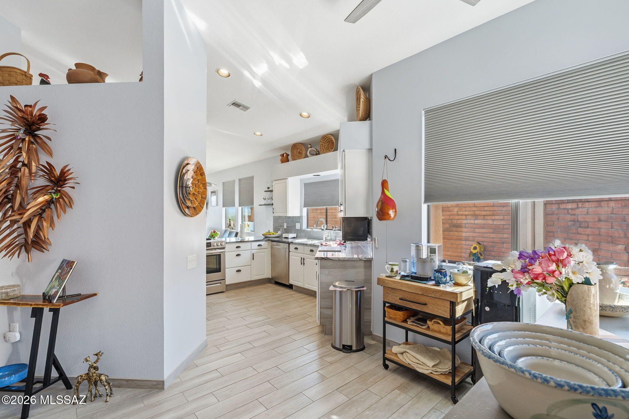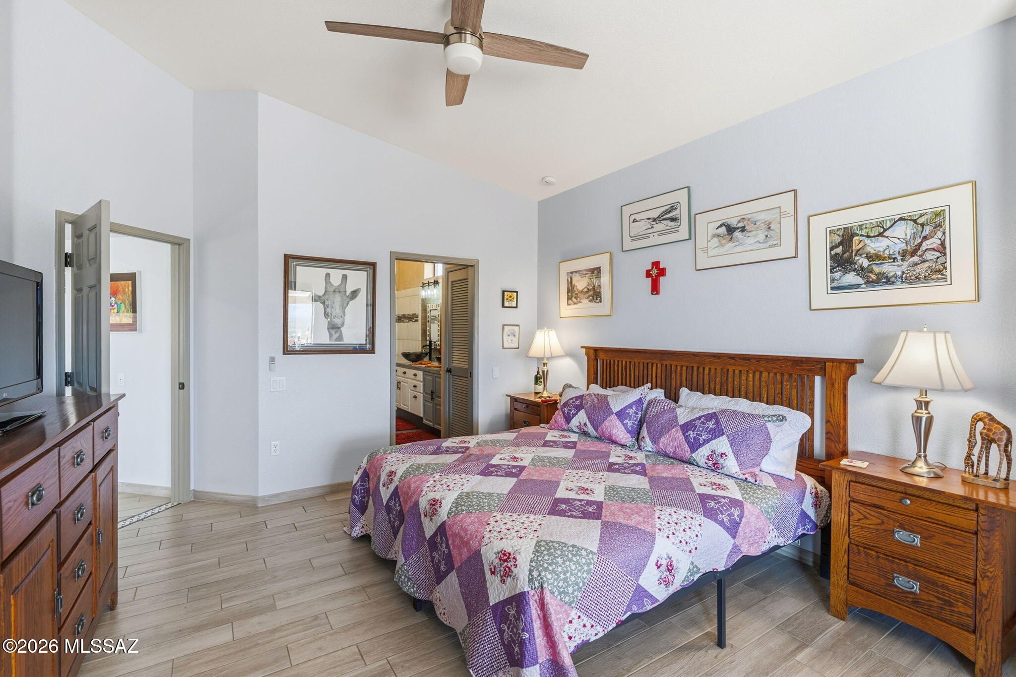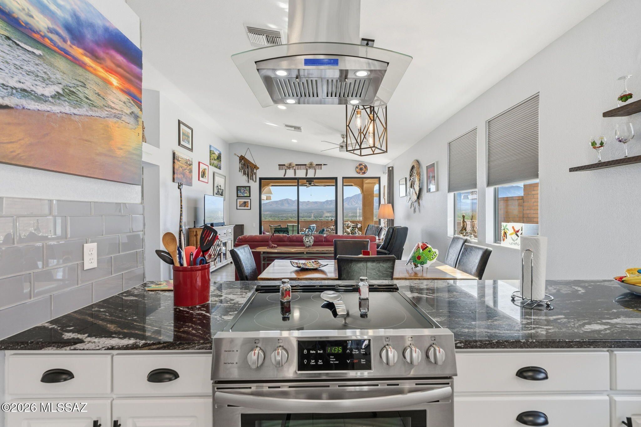 Lovely views and a luxurious en-suite primary bathroom! If living in a prime development sounds appealing, then put this opportunity in San Ignacio Vistas at the top of your Green Valley tour list. This delightful 2-bedroom, 2-bathroom South Western home offers an array of advantages. Enjoy spectacular mountain views. Across the threshold, nice touches embrace you with a stately entryway, an open layout, stylish fixtures blending seamlessly with bounteous window light, neutral decor, and vaulted ceilings. The spacious, thoughtfully designed kitchen brims with natural light, fresh updates, granite counters, and ample pantry space. The kitchen opens seamlessly onto the dining room, living room, and patio. The peaceful primary bedroom includes sitting space and an attached office. Must See.