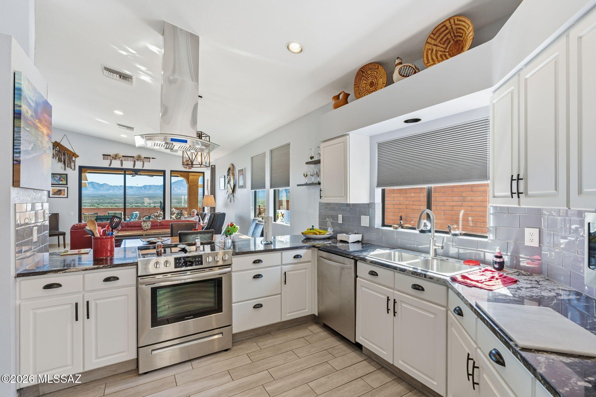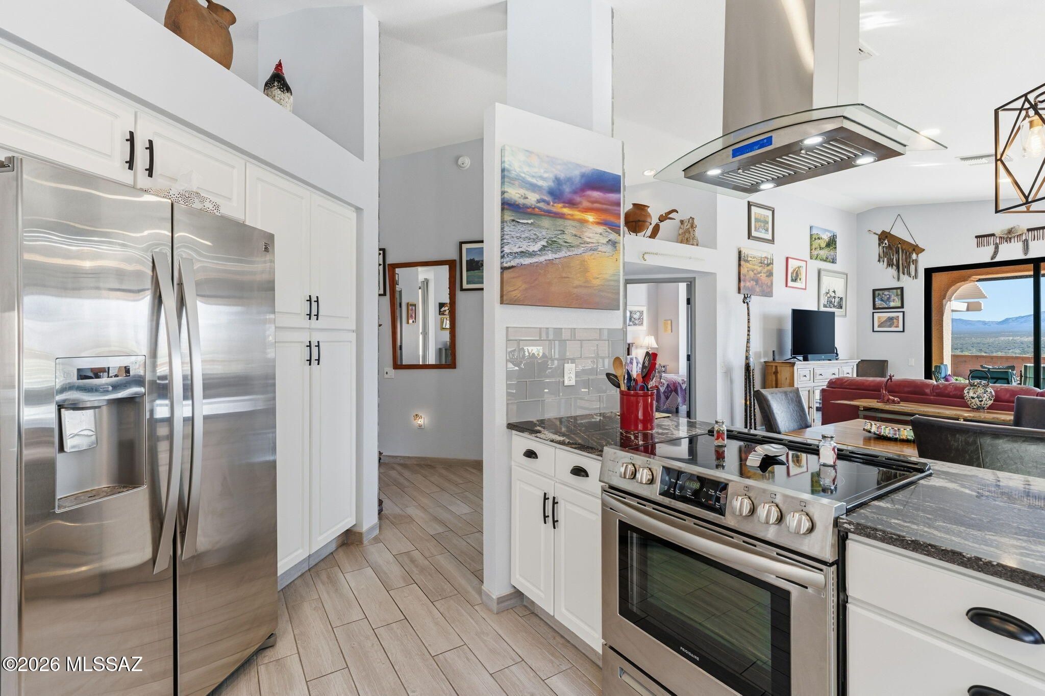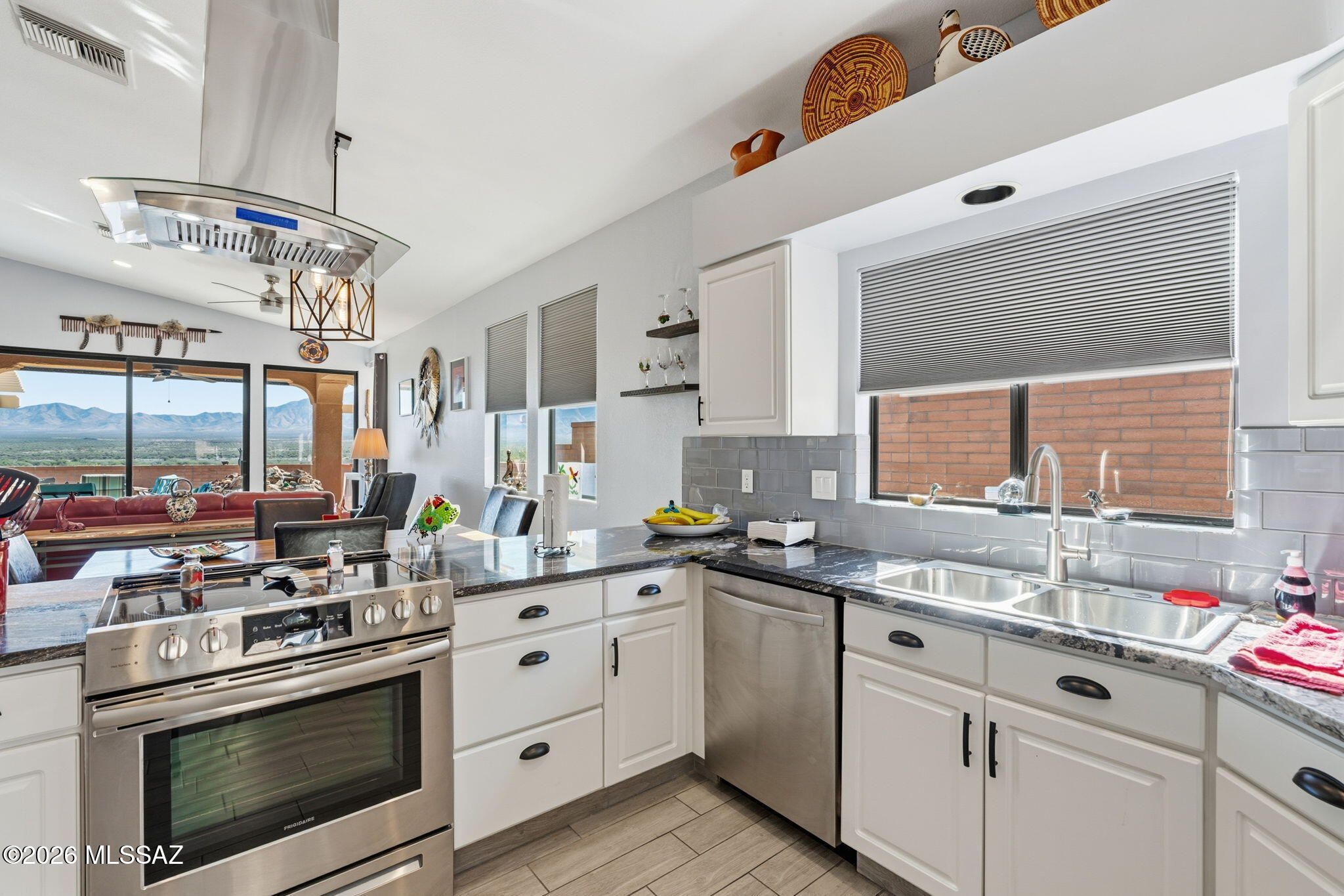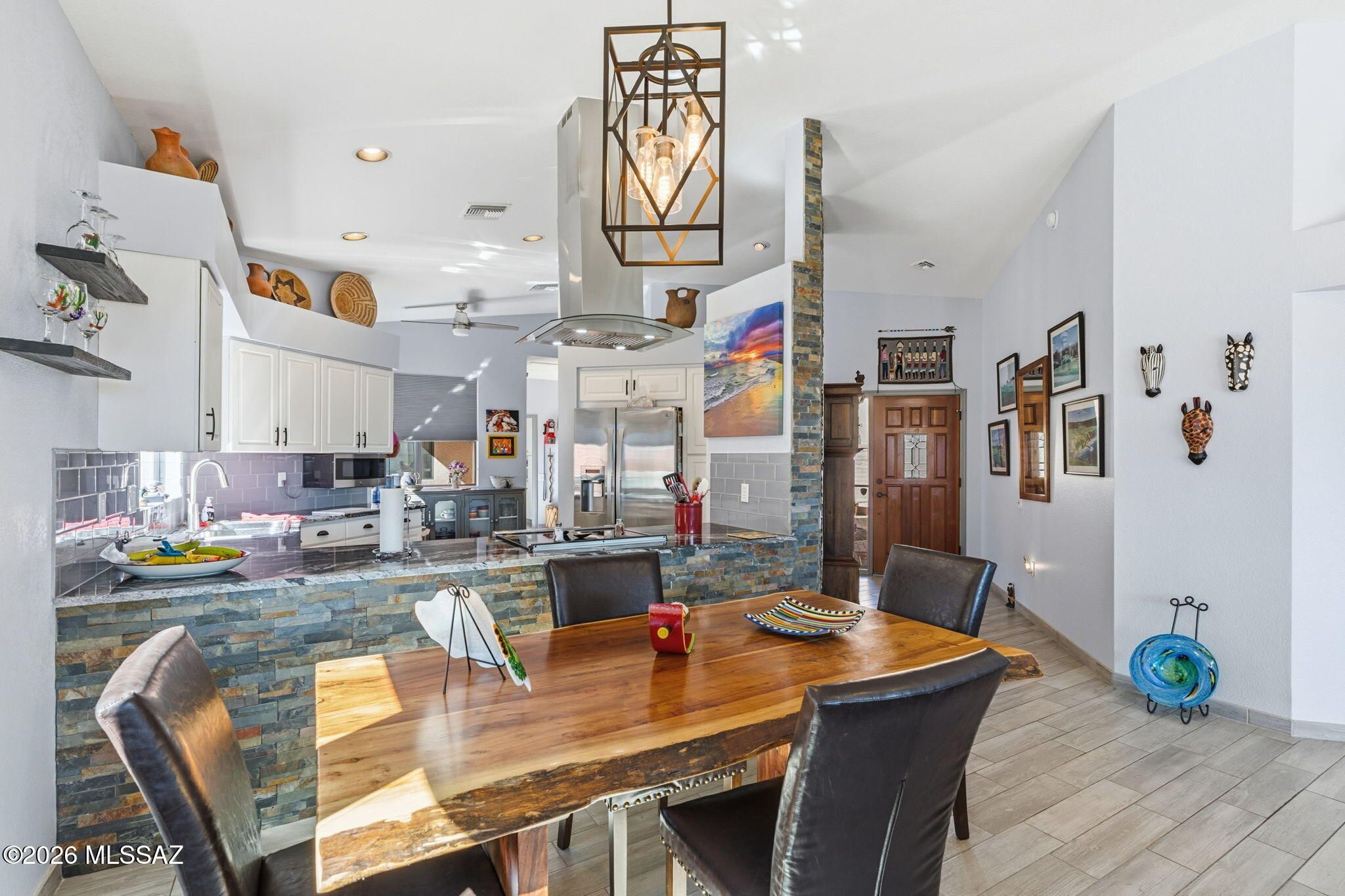 Lovely views and a luxurious en-suite primary bathroom! If living in a prime development sounds appealing, then put this opportunity in San Ignacio Vistas at the top of your Green Valley tour list. This delightful 2-bedroom, 2-bathroom South Western home offers an array of advantages. Enjoy spectacular mountain views. Across the threshold, nice touches embrace you with a stately entryway, an open layout, stylish fixtures blending seamlessly with bounteous window light, neutral decor, and vaulted ceilings. The spacious, thoughtfully designed kitchen brims with natural light, fresh updates, granite counters, and ample pantry space. The kitchen opens seamlessly onto the dining room, living room, and patio. The peaceful primary bedroom includes sitting space and an attached office. Must See.