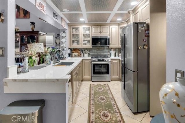 Say Hello to this extravagant beautifully ENLARGED/EXTENDED Marbella model 2347 sq. ft. located in the lovely 55+ senior community of Sun Lakes Country Club. If you've been looking for a home in this community to call your own with all the BELLS and WHISTLES believe me when I say, "YOU JUST FOUND IT!!" This property literally has TOO MANY UPGRADES to list. This impressive extended Marbella model features a multitude of high-end upgrades. The kitchen has undergone a complete remodel with coffered ceilings, stainless appliances, and the bathrooms have been renovated. The property comprises three bedrooms, three bathrooms, herringbone flooring upstairs, all new luxury flooring downstairs, custom paint throughout, and epoxy flooring in the garage. If you are seeking a property with top-of-the-line features, this is an exceptional opportunity. The back yard features a covered patio for entertaining, or just enjoying those beautiful summer evenings. The Marbella is famous for it's abundance of storage potential, spacious rooms, and high vaulted ceilings. This lovely property is complemented by numerous community amenities, including three pools and spas, billiards, tennis, pickle ball, paddle courts, bocce ball, two golf courses, and pro shops with putting greens and a driving range. The community also offers a restaurant/lounge, café, sports bar, ballroom, and a variety of clubs and activities. Furthermore, Sun Lakes Country Club is conveniently located near world-class shopping, casinos, and Palm Springs Airport, providing plenty of entertainment options. Come see if this is the property you've been waiting for, it's truly a showstopper. PLUS NO MELLO ROOS!