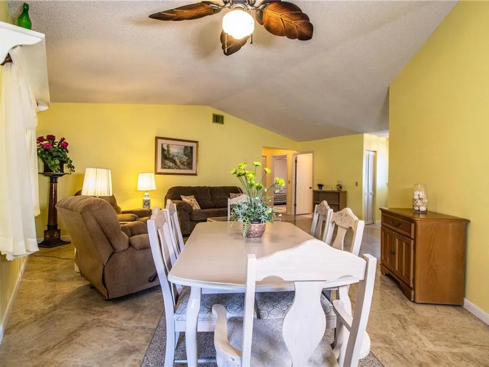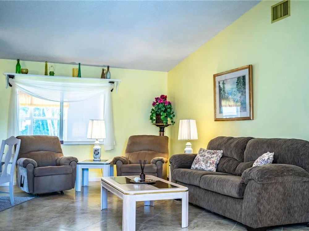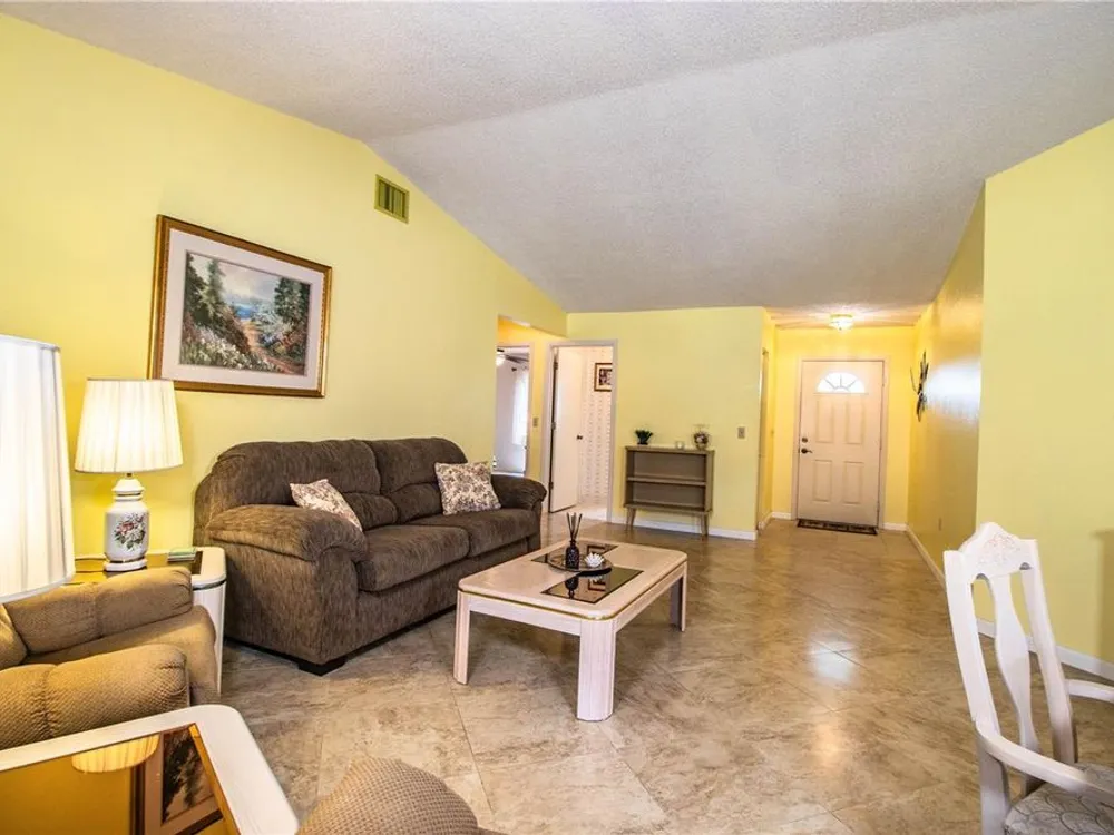 Welcome to this move-in-ready 2-bedroom, 2-bathroom home located in the desirable 55+ gated community of The Colonnades in South Lakeland. Conveniently located near the Polk Parkway, South Florida Avenue, and Lakeland Linder International Airport—with commercial flights now available—this home offers both comfort and accessibility. Inside, you’ll find a spacious open-concept living and dining area featuring tile flooring, a cathedral ceiling, and ample space for large furnishings. The kitchen includes a newer Samsung stainless steel refrigerator, a breakfast bar, a pass-through window to the bonus room, and all appliances in excellent working condition. The primary bedroom features carpet, two walk-in closets, and an en-suite bath with dual vanities and a walk-in shower with grab bars. The second bedroom also has carpet, a large walk-in closet, and private access to the guest bath—perfect for visiting friends or family. A 26' x 8' fully tiled bonus room offers beautiful views of the wooded conservation area and opens to a back patio with a retractable awning. Additional features include an indoor laundry room with a washer and dryer, a pantry/storage closet, and a 2-car garage with workbench, shelving, screen, and an insulated door for improved comfort. The home is optionally available fully furnished, including furniture, cookware, dishes, and utensils—just bring your suitcase! The HOA provides maintenance-free living and covers lawn care, internet, basic cable, and access to community amenities like a large pool, clubhouse, library, fitness center, shuffleboard courts, and a scenic dock overlooking the pond. HOA approval is required for new owners, but the process is quick and straightforward. Virtually staged MLS photos showcase the endless possibilities of this exceptional property. The home is easy to show—schedule your visit today and see everything this wonderful community has to offer!