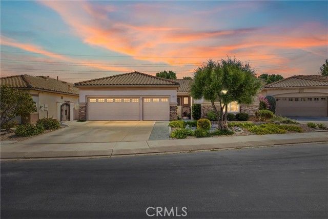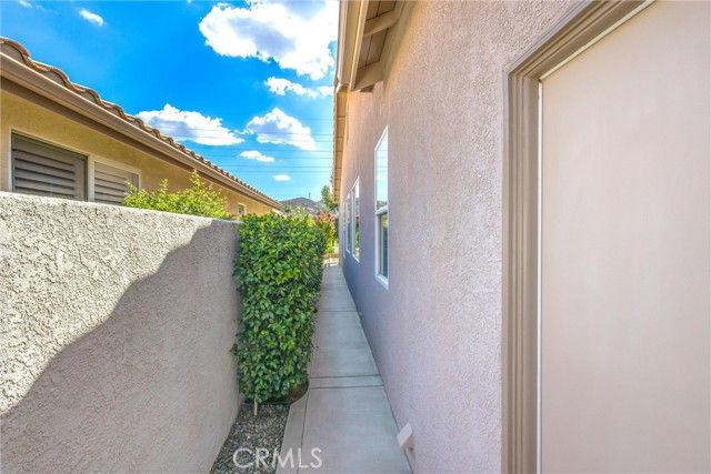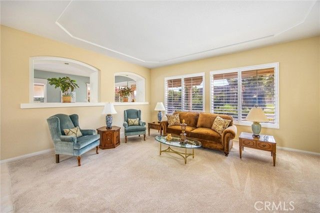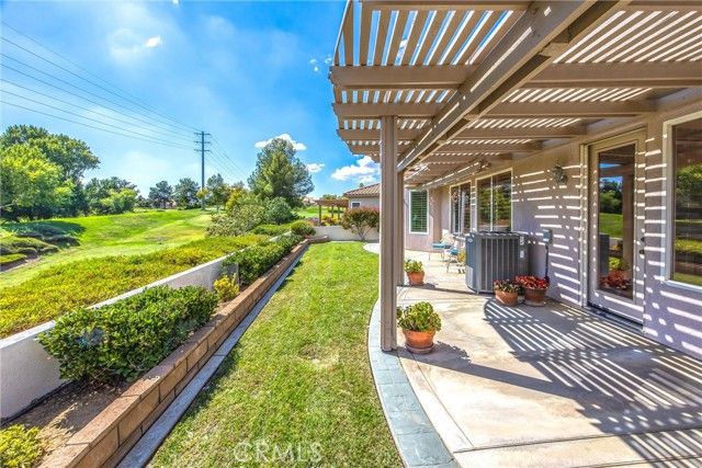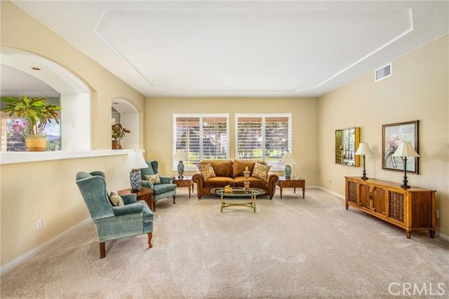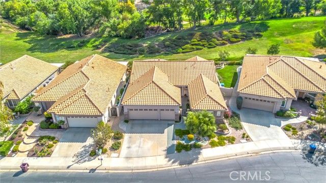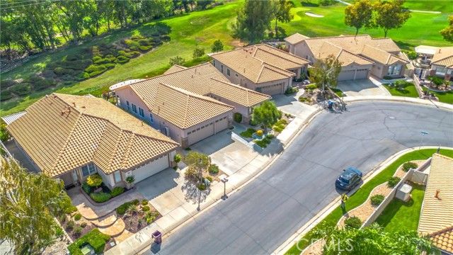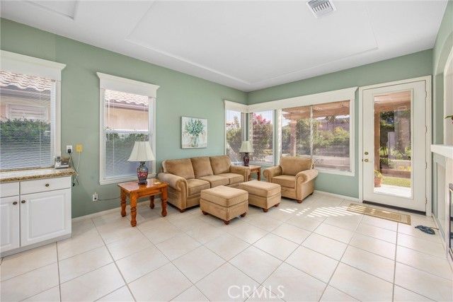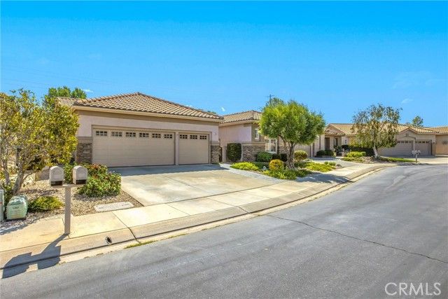Only plan in Sun Lakes with 3 car garage - this one is lovely and on the Greenbelt with a view of the fifth fairway, Mt. San Jacinto. Wisteria plan kept immaculate with 2 bedrooms, 2.5 baths and den. Home also has formal living room and family room with an island in the kitchen and inside laundry room - YOU MUST SEE THIS HOME TO APPRECIATE ALL THE UPGRADES. HVAC has been updated a 2021 and carry warranties thru 2031 and 2041. Stamped concrete edge driveway and front entry - Phantom Screen doors - Leaded Glass Windows at entry and powder room - upgraded white cabinetry throughout home - custom wall with cutouts between entry and dining room - solid wood Avalon Shutters in living room and carpet upgraded recently - Sold slab granite countertops - custom window moldings - decorator hanging lights over island - trash recycling cupboard - extra insulation in wall between kitchen and laundry - Solid wood 4" Avalon Shutters in both bedrooms - Custom vanity with added storage drawers in master bath - Garage cabinets and added storage - lighted attic storage above garage via access ladder - beautifully hardscaped front and back - and a lovely patio to enjoy your evening drink of choice. After all that, all the benefits of Sun Lakes Country Club making your retirement days go fast.