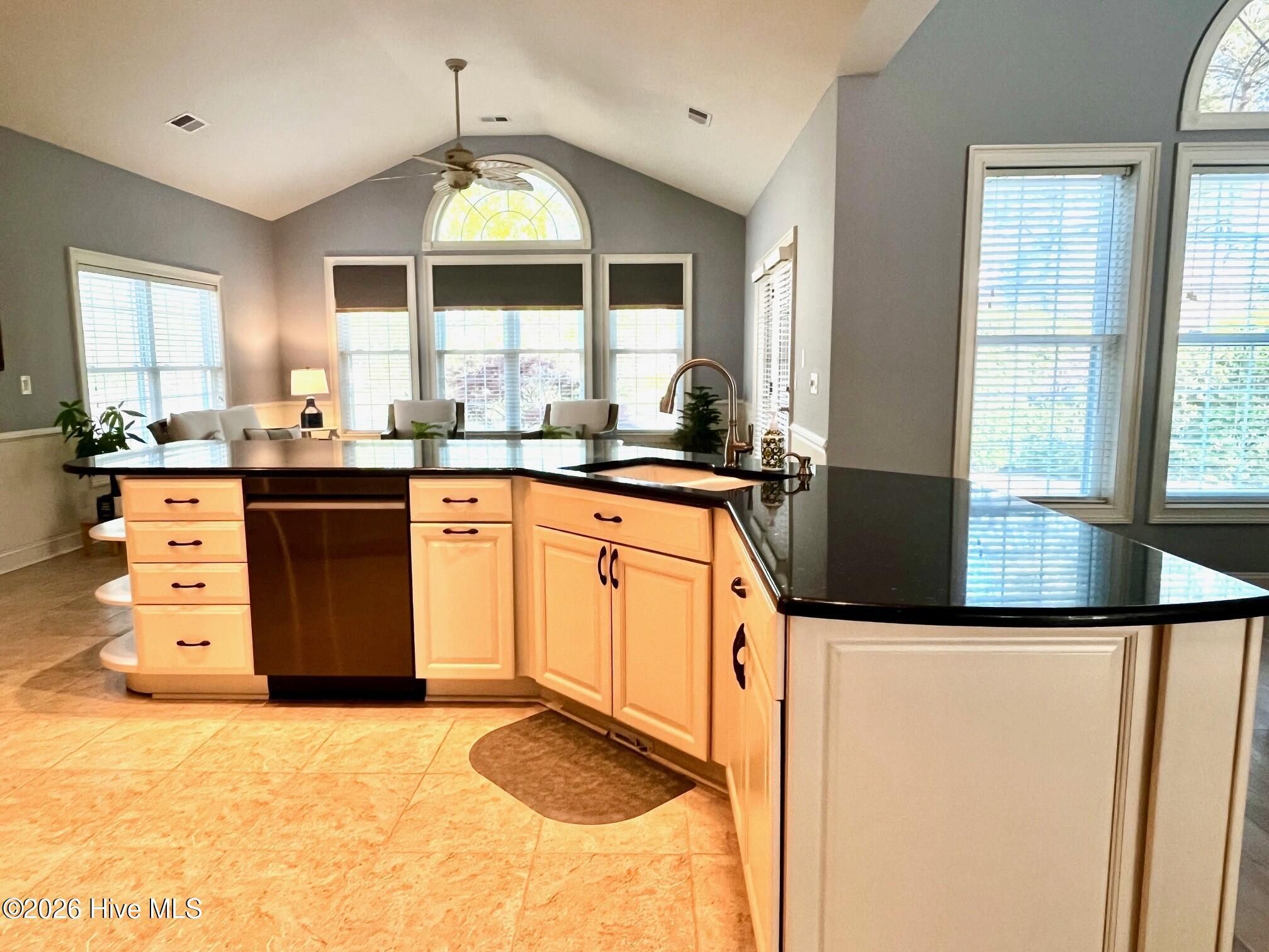 - Master Downstairs, Central Vacuum, Walk-in Closet(s), Vaulted Ceiling(s), Tray Ceiling(s), High Ceilings, Entrance Foyer, Kitchen Island, Ceiling Fan(s), Walk-in Shower