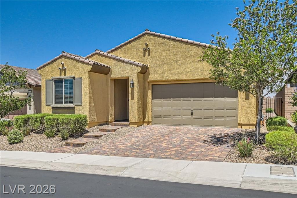 This Meticulously Maintained Residence 11 is Nestled in the 55+ Community of Heritage at Cadence. Features Include: Tile Plank Flooring and Custom Carpeting Throughout. Gourmet Island Kitchen with Quartz Countertops, Stainless Steel Appliances, Reverse Osmosis and Water Softening Systems. Primary Bedroom is an En-Suite Design Complete with Walk-In Shower and Dual Vanity Sinks PLUS: Spacious Walk-In Closet. Guest Bedrooms and Bath are on Opposite Side of the Home for Maximum Privacy. Step into the Impeccable Backyard Offering an Elevated Paver Patio that Provides you with Incredible Las Vegas Strip Views, Some of the Best in Heritage. Backyard Patio Furniture is Included along with the Four (4) Bar Stools in Kitchen.