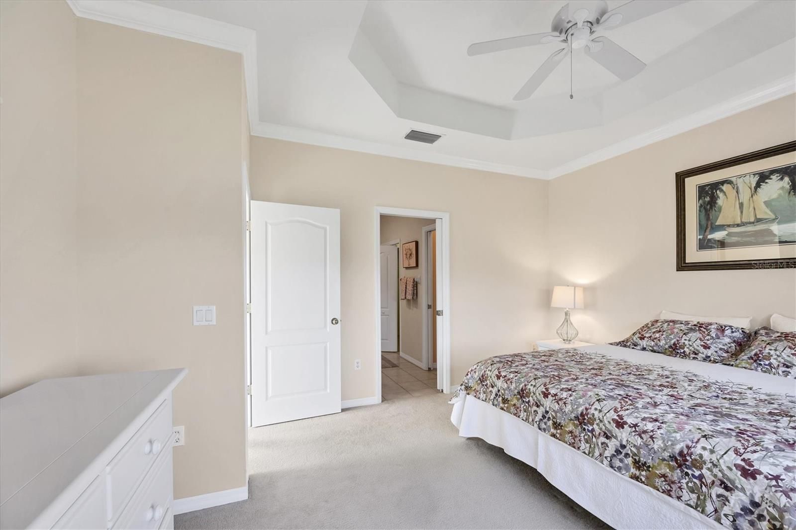 - Ceiling Fan(s), Crown Molding, Eat-in Kitchen, Open Floorplan, Split Bedrooms, Tray Ceiling(s), Walk-In Closet(s), Window Treatments