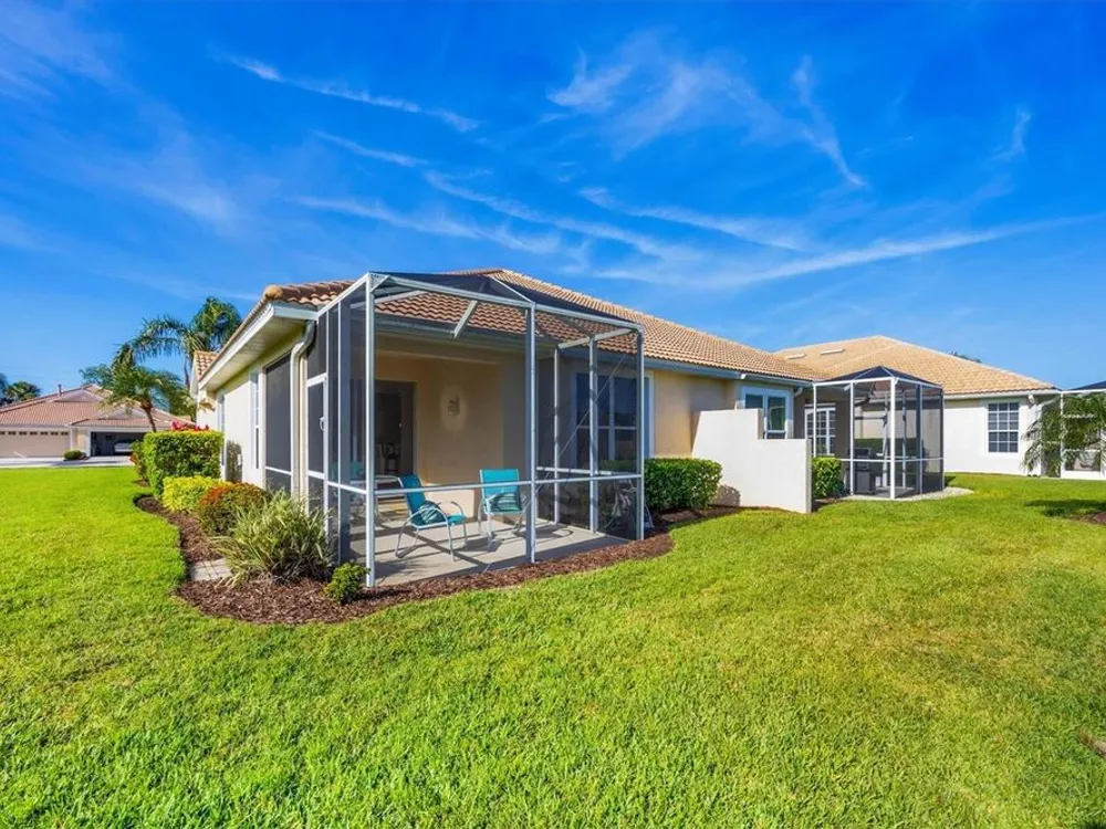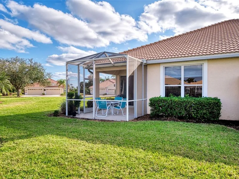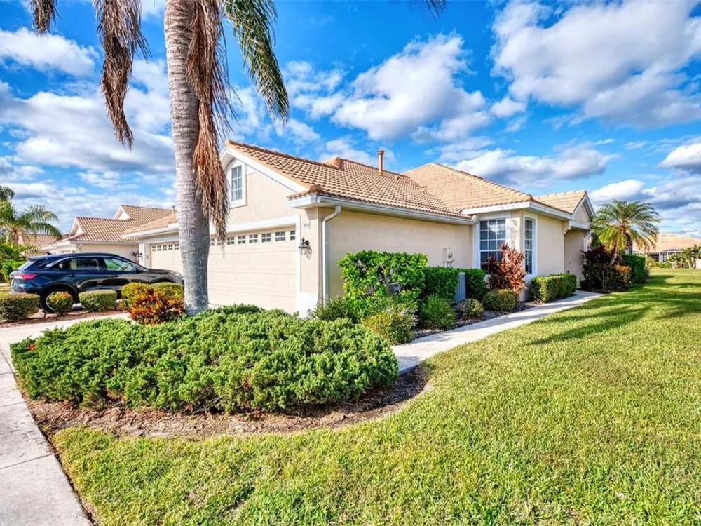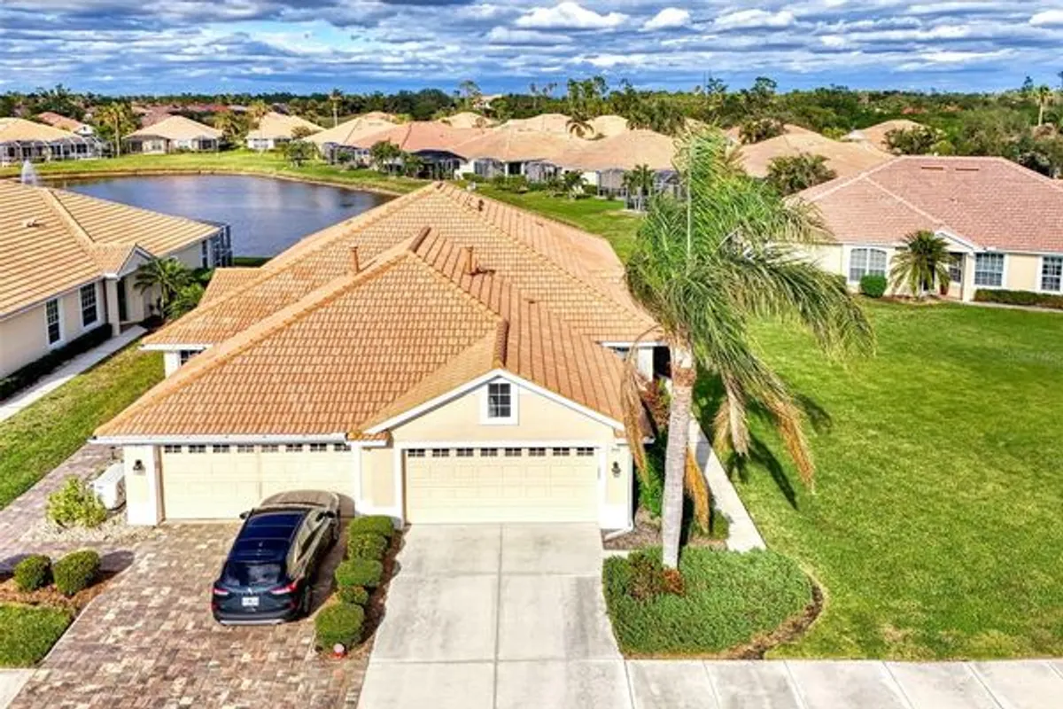 HERON CREEK GOLF AND COUNTRY CLUB! 2BED 2BATH PAIRED VILLA now offered TURN-KEY FURNISHED!!! **BEAUTIFUL LAKE VIEW** FLOOD ZONE X (no flood insurance required) **NEW ROOF(23) **IMMACULATE AND MOVE-IN READY **This Bedroom/2 Bath PAIRED VILLA with 2 car garage is located in the desirable GATED community of Heron Creek Golf & Country Club and situated on a premium oversized lot just a short cart right to the club house and community amenities. This quality built Westfield villa features a Key Largo floor plan with 2 bedrooms, 2 baths and a full 2 car attached garage and is well suited for easy living & entertaining alike. Interior features include a desirable split bedroom layout. OPEN CONEPT kitchen with lots of light wood cabinetry, updated glass back splash and more than ample workspace, there is a NATURAL GAS range, two pantry closets, and a charming dinette and breakfast bar. The spacious Master Bedroom features a tray ceiling, double window, and ensuite bath with walk in closet & double vanities. The guest bedroom suite is very private with adjacent full bath, great deep closet and is sunny and bright. The Great Room provides more than ample room for dining and relaxing and features a neutral color pallet, Classic Crown Molding, high sliders that open to the EXTENDED LANAI and shows light and bright with large windows throughout. At the end of a long day after enjoying all paradise has to offer you'll love to retreat to your spacious lanai, perhaps enjoy a nice glass of wine and watch the sun set over the sparkling lake. This lovely villa is situated on an oversized homesite with an expansive lush side yard as an added bonus! Nice attached 2 car garage has lots of rooms for your cars and or toys. This snappy villa has been lovingly maintained and recent peace of mind upgrades include a new Dishwasher, new cabinet hardware, new backsplash and NEW ROOF (2023)Act quickly as this sweet home would make a perfect winter getaway, full time residence or a very desirable income producing rental! HOA quarterly fees are very reasonable and include cable, high speed internet, ground maintenance, exterior painting, irrigation, and mulching. ++NO CDD FEES++ Heron Creek offers exceptional amenities including a 21,000 sq. ft. clubhouse, 27 holes of Championship golf Arthur Hills design, state of the art practice facility, resort style pool and spa, a robust social activity calendar, fitness center, Tennis courts and formal and casual dining options! Club Membership is required with three membership levels currently offered beginning at $268/mo. Conveniently located with easy access to I-75 and US 41, the Cocoa Plum Shopping District, Myakkahatchee Creek trails, Blue Ridge Park & COSTCO, The Braves Stadium & and just 3 miles from the new 450 Million Dollar state of the art SMH medical center coming at Sumter and i-75!! There is no time to hesitate as she'll be scooped up quickly! NEW PHOTOS COMING