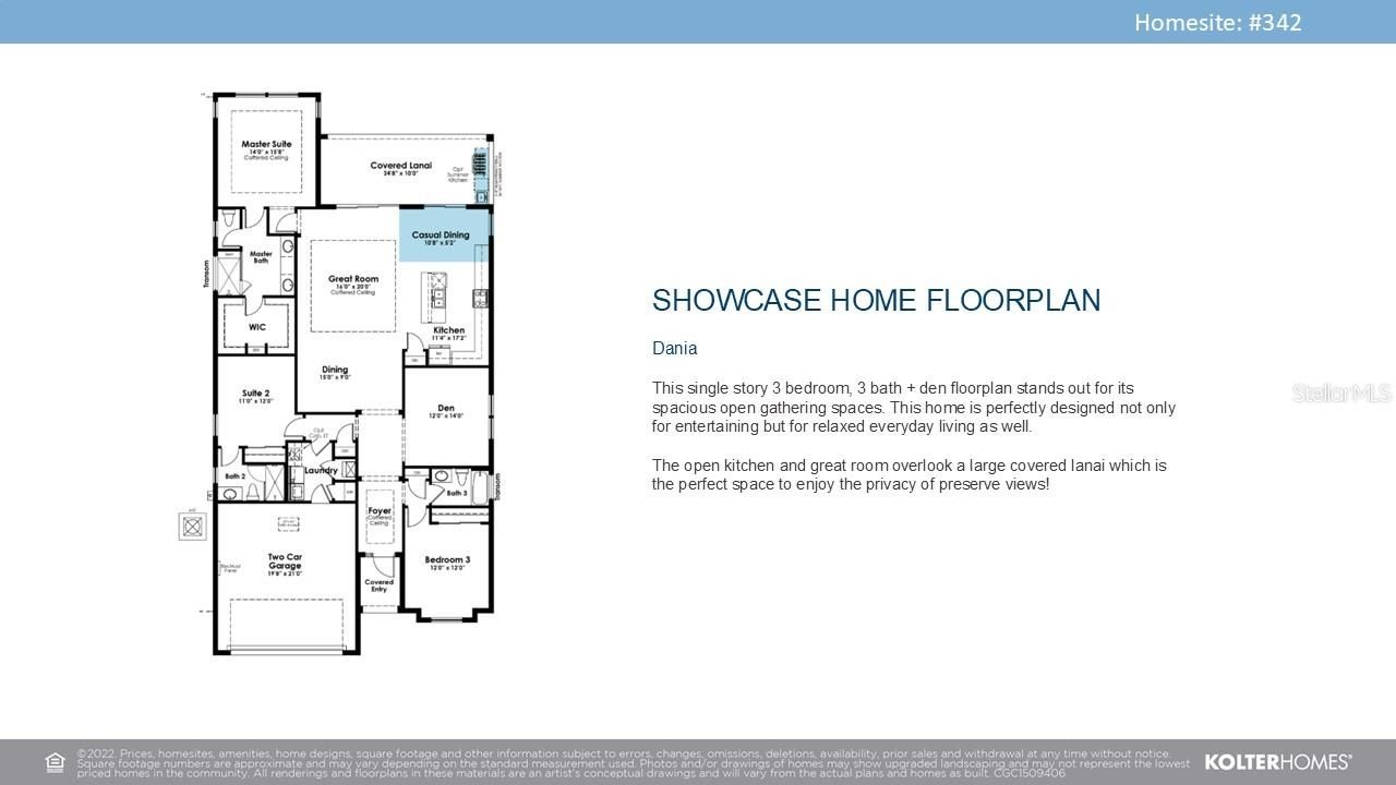 ***NEW CONSTRUCTION***The Dania floorplan is a single-story home featuring three bedrooms, three baths, and a versatile den, thoughtfully designed to blend open gathering spaces with a relaxed sense of everyday comfort. The gourmet kitchen serves as the centerpiece of the home, showcasing frameless European-style cabinets with soft-close, full-extension drawer glides, a convenient pot-and-pan cabinet, and a 30” stainless steel gas cooktop paired with a chimney-style exhaust hood. Elegant 3cm luxury quartz countertops, artisan backsplash tile, and upgraded large cabinet crown moulding create a refined, modern aesthetic, while the casual dining bump-out adds both warmth and functionality. Perfect for entertaining and future enhancements, the Dania is prepped for a future pool and summer kitchen. A privacy wall enhances the tranquility of the preserve views from the expansive covered lanai, an inviting extension of the great room and kitchen area. Additional thoughtful touches, such as a 24” deep cabinet above the refrigerator with a matching side panel, offer extra storage and a seamless, built-in look. With its balance of luxury finishes and practical design, the Dania floorplan delivers the ideal setting for both entertaining and relaxed everyday living.