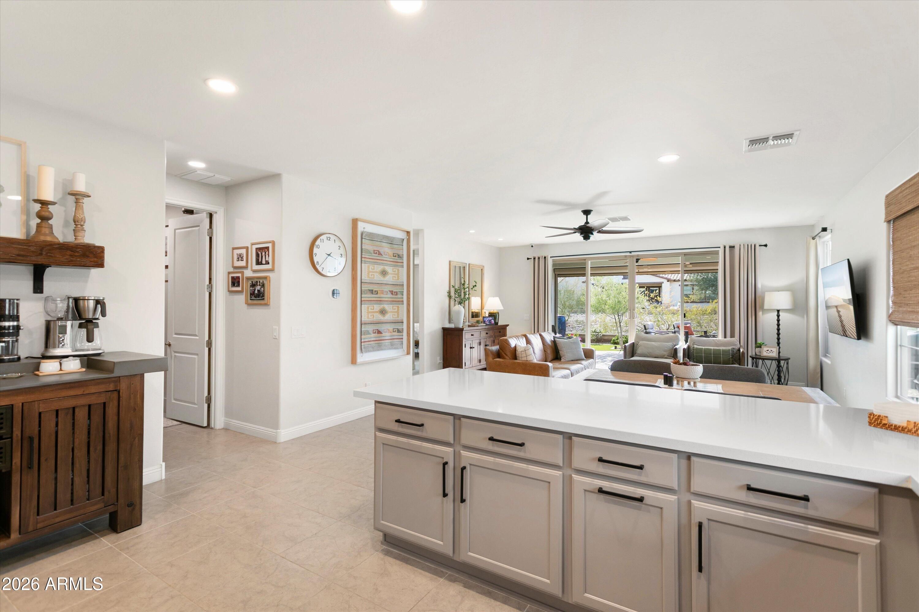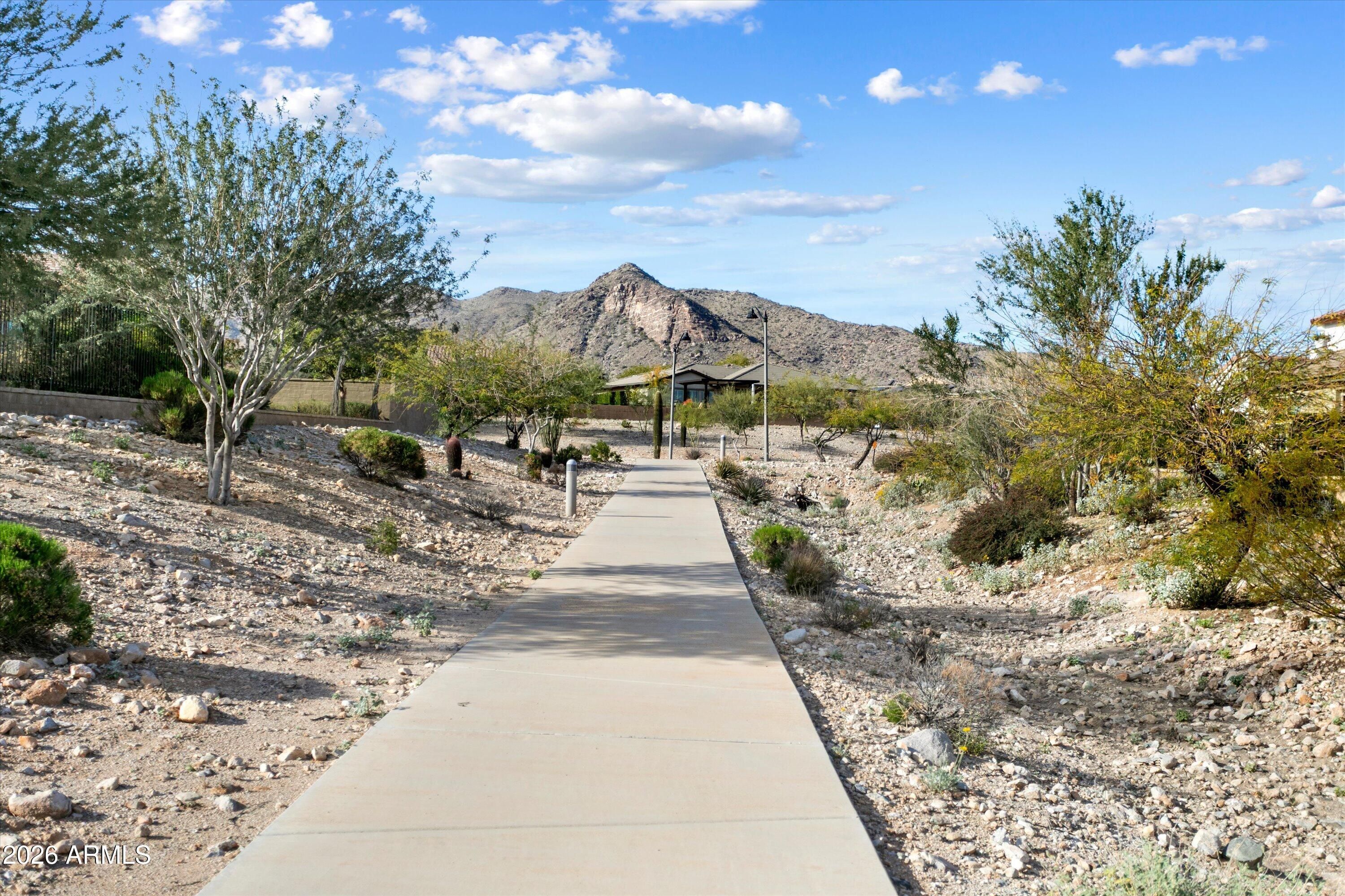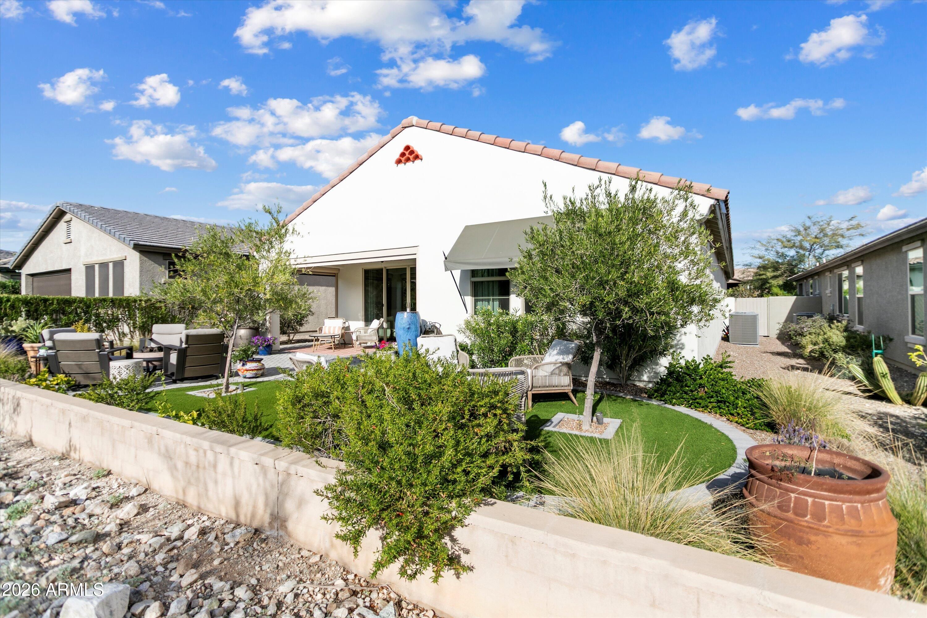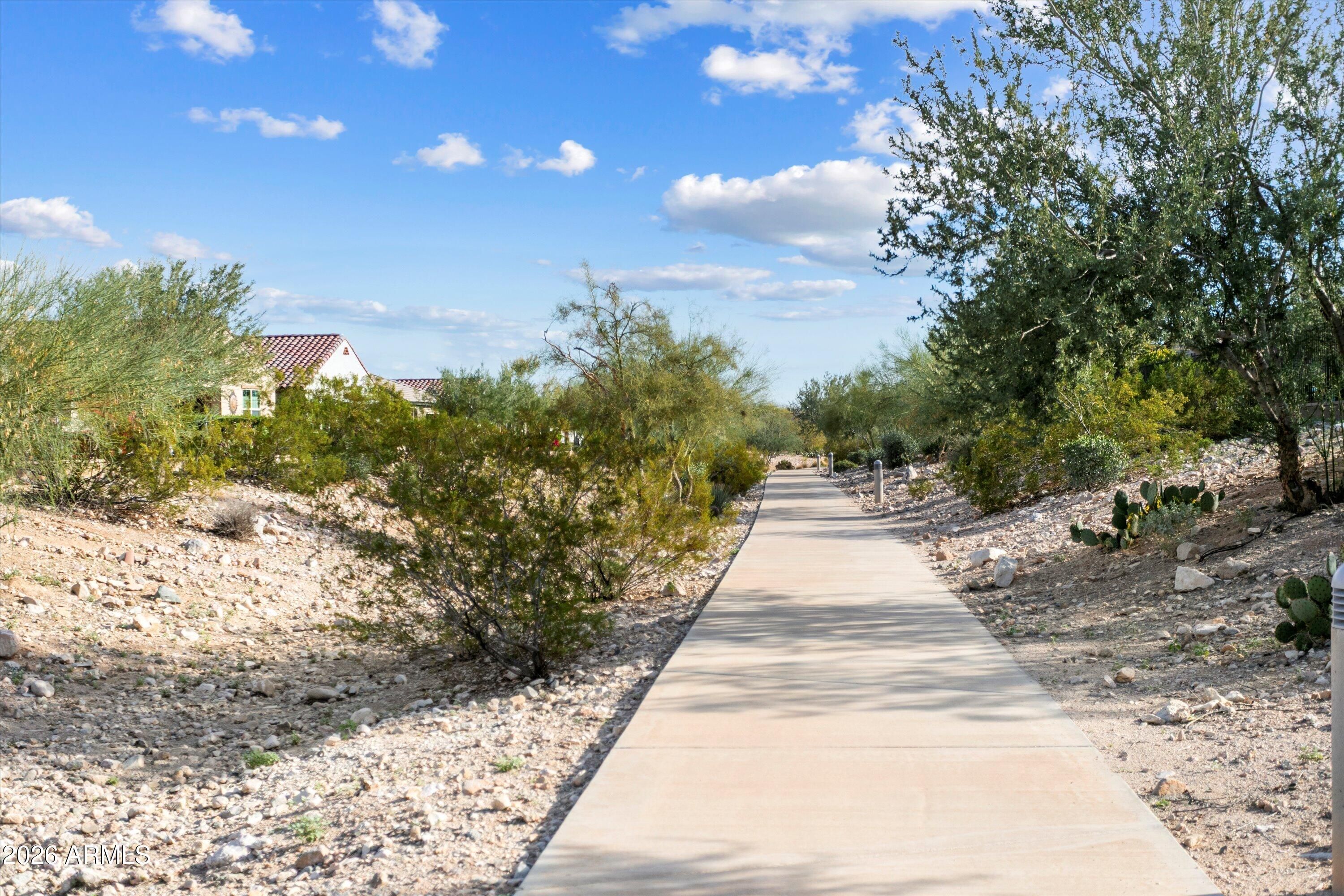 MOUNTAIN VIEWS. ELEVATED 55+ LUXURY LIVING. This exceptional Inspire floorplan offers the perfect blend of comfort, sophistication, and effortless desert elegance, ideally located within the prestigious active adult community of Victory at Verrado. Thoughtfully enhanced with numerous upgrades and designer finishes, this home showcases custom accent walls in the hall, mudroom, and laundry, along with a stylish dry bar complete with a wine fridge--creating a refined, modern atmosphere throughout. The beautifully designed wraparound kitchen is the heart of the home, featuring striking granite countertops, upgraded cabinetry, and premium appliances, making it ideal for both everyday living and seamless entertaining. Step outside to the covered back patio, where roll-down screens provide comfort and privacy while extending your living space year-round. The expanded patio backs to a scenic trail illuminated by elegant Bullard lighting, offering breathtaking views of the majestic White Tank Mountains. This serene outdoor setting delivers unforgettable Arizona sunsets and creates the perfect environment for quiet evenings or memorable gatherings under the stars. This is more than a home--it's a lifestyle defined by beauty, comfort, and inspiration.