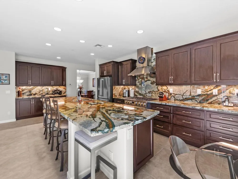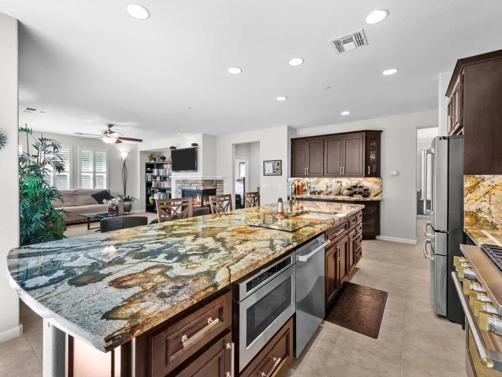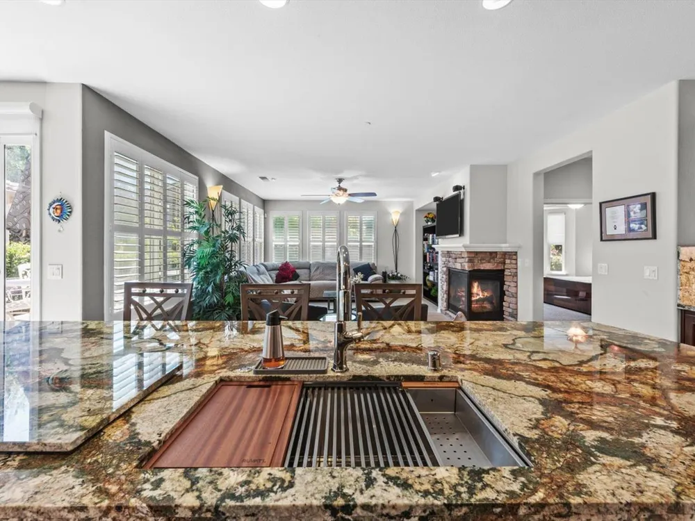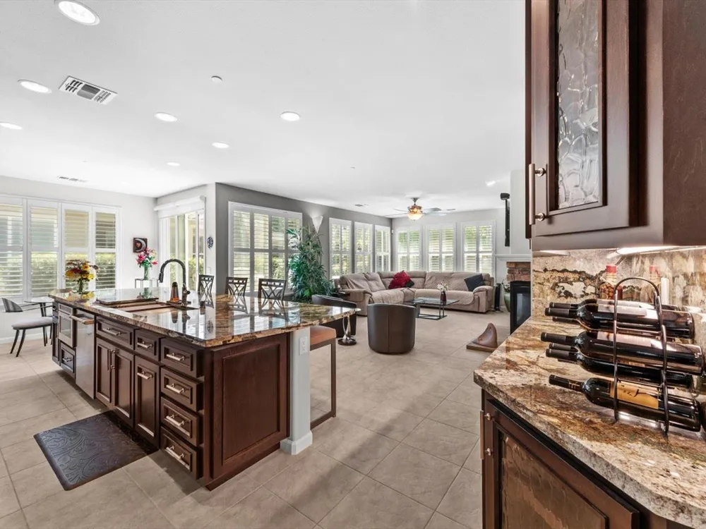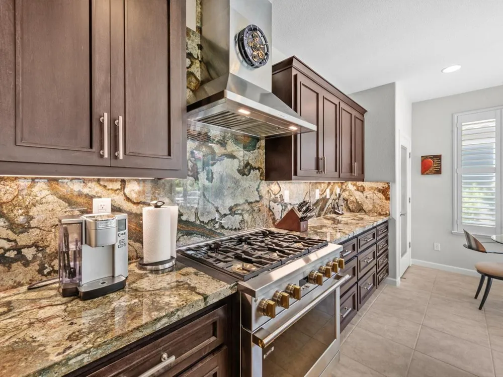 Welcome to luxury living in the premier 55+ golf resort community of Trilogy at Rio Vista! This single-owner home has been meticulously maintained and thoughtfully enhanced with over $150,000 in upgrades, blending comfort and elegance at every turn. Step inside to soaring ceilings, a wide hallway, and an open layout leading to the great room and chef's kitchen. Designed to impress, the kitchen features GE Monogram and Caf series stainless steel appliances, including a 6-burner stove with convection oven, Ventus range hood, microwave drawer, commercial-grade disposal, and a Ruvati workstation sink, pairing perfectly with Brazilian granite counters and backsplash. The home also offers a dedicated dining room, ideal for gatherings or easily reimagined as an office or library. Gorgeous details abound with crown molding, plantation shutters, Hans Grohe polished nickel faucet, ceramic porcelain tile in main areas, plush Karastan carpet in bedrooms, and a generous walk-in primary bedroom closet. Freshly painted interiors and meticulous care make this home truly move-in ready. Blending high-end finishes with a flexible layout, this home delivers resort-style living, timeless comfort, and exceptional value in the heart of Trilogy
