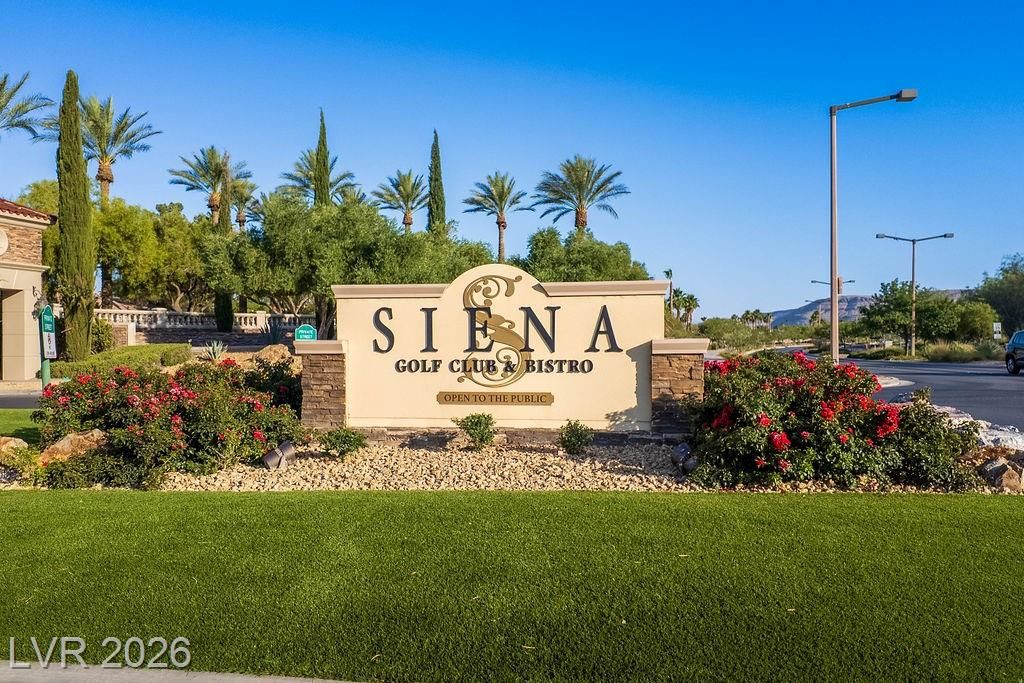 Siena HOA, 55+ community, single story home opportunity! This home is located in the ultra-desirable southwest corner of the city and situated behind guard gates, outfitted with massive palm tree lined streets, lush landscaping, a sensational golf course and a plethora of activities and HOA managed amenities. This luxurious single story home features: a grand double door for entry to the home, stainless steel appliances, lavish granite countertops in the kitchen, a designer tile backsplash, stainless steel appliances, 3 bedrooms, a spacious floor plan, an abundance of windows, designated laundry room with a substantial number of cabinets for storage, walk-in shower, upgraded built-in closet, covered exterior patio, mature landscaping and is situated on a picturesque street.