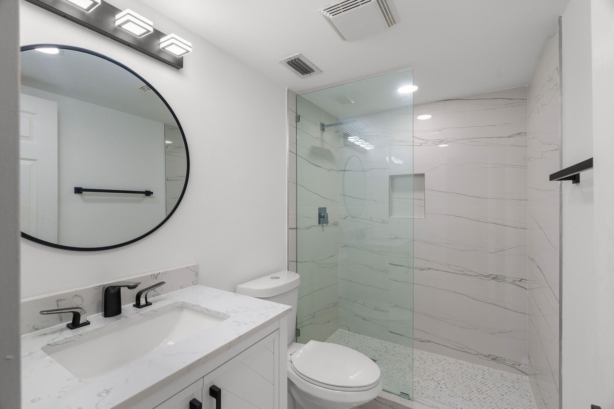 Make this beautifully renovated 2 bedroom 2 bath condo your home! In the desirable 55+ community Abbey Village in Delray Beach. Second floor unit that has a split floor plan full of sunlight. Kitchen boasts an open concept design with new stainless steel appliances and quartz countertops! Impact sliding glass door leading you out to your private balcony! New fixtures. 2024 ac unit and water heater. Common laundry room just a few doors down. New vinyl flooring. A must see! WIFI, Cable TV and water included. Enjoy the two pools, a clubhouse, fitness center, library, shuffleboard, game room, sauna, organized activities and much more! A great place to call home! Close to the Turnpike, Delray Marketplace, Downtown Atlantic Ave, restaurants and beaches.