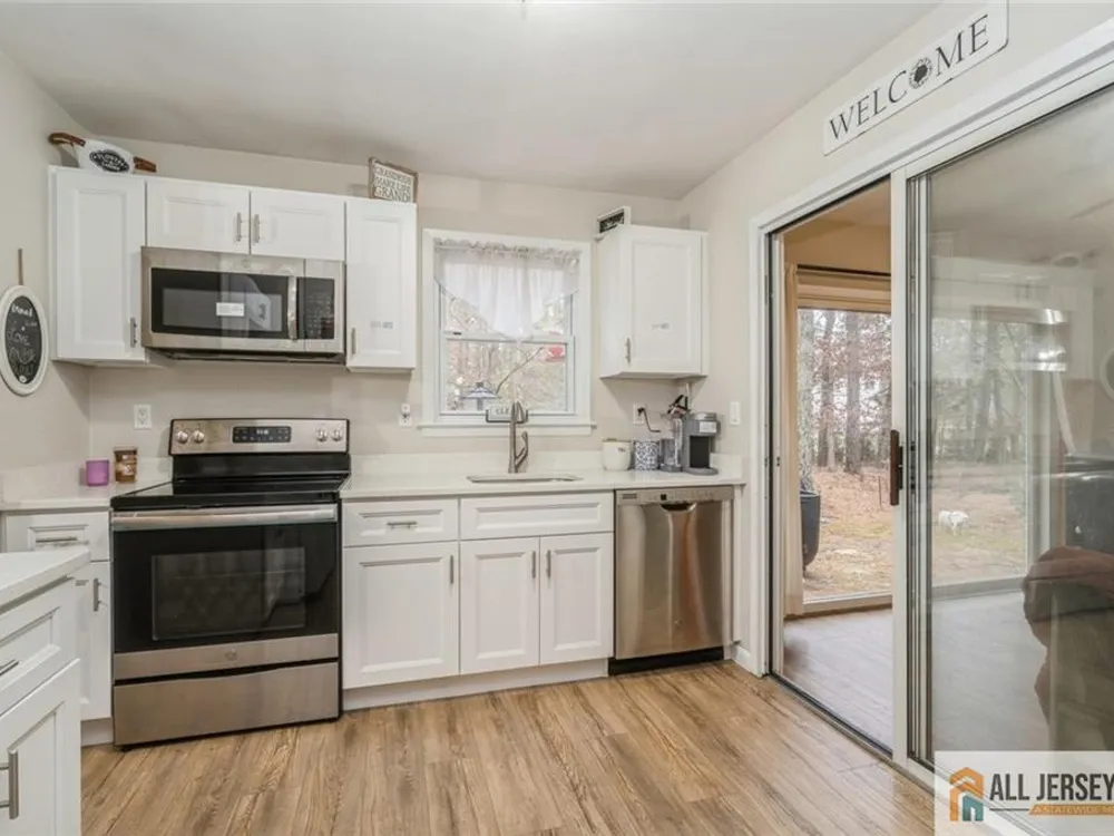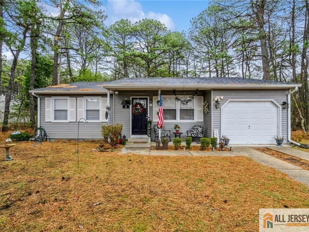 Nestled in the serene woods of a 55 and older community, this charming ranch-style home offers the perfect blend of luxury and comfort. Inside, you'll be greeted by beautiful luxury vinyl flooring that spans throughout the home, creating a warm and inviting atmosphere. The kitchen features crisp white cabinetry, sleek stone countertops, and mostly stainless steel appliances, making it both stylish and functional for all your culinary needs. The bathroom boasts decorative tile flooring and a tub-shower combo, adding a touch of elegance. Step outside through the sliding doors from the heated patio into your private, serene setting, where you can unwind and enjoy the tranquility of being surrounded by tall pine trees. The one-car garage provides ample storage and convenience, making this home the ideal retreat. Experience peaceful living in a community that offers both comfort and a connection to nature.