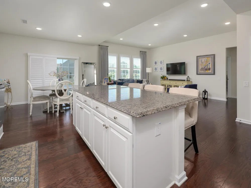 Beautiful 2018, 2 bedroom/2 bath Abbeyville with Office, located on a premium lot features a stunning white kitchen with an abundance of 42'' cabinets, beautiful granite counters, breakfast center island, countertop range, wall oven/microwave, kitchen pantry and additional walk-in pantry. The primary suite has a large walk-in closet in bath with beautiful granite vanity with double sinks. Some upgrades include Generac Generator, rich hardwood floors, recessed lighting, decorative molding/wainscoting and custom draperies and window treatments. There is a rear paver patio for outdoor entertaining, Guardian Security system is in place for buyer to continue contract. River Pointe is one of the most desirable 55+ communities in Ocean County with indoor/outdoor pools and so much more!