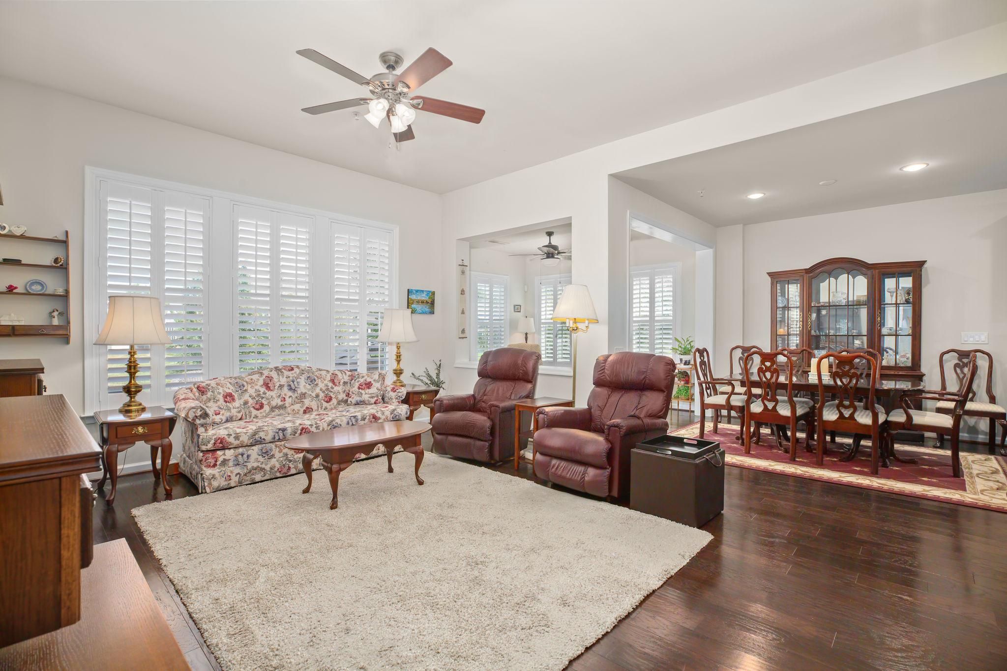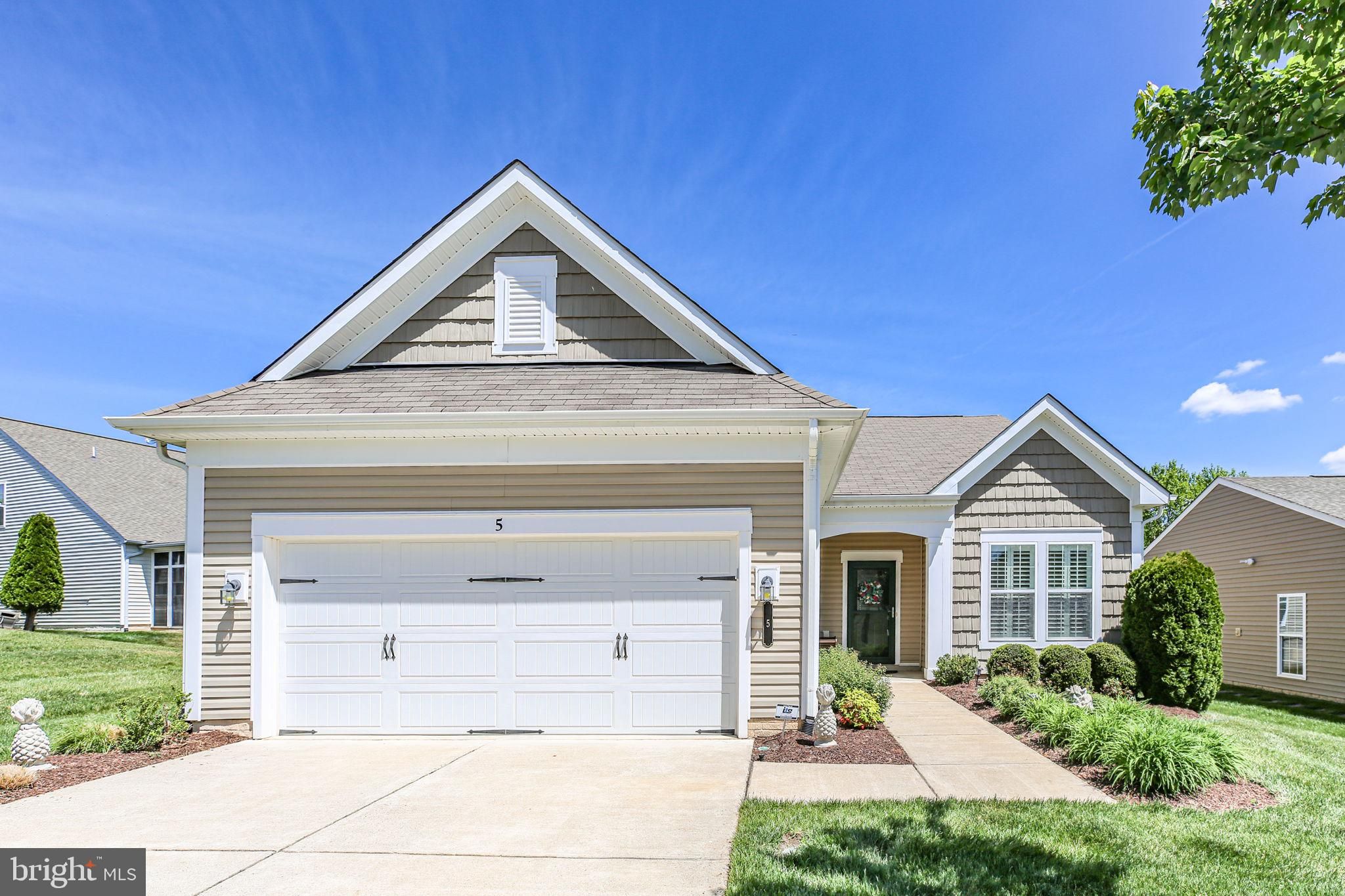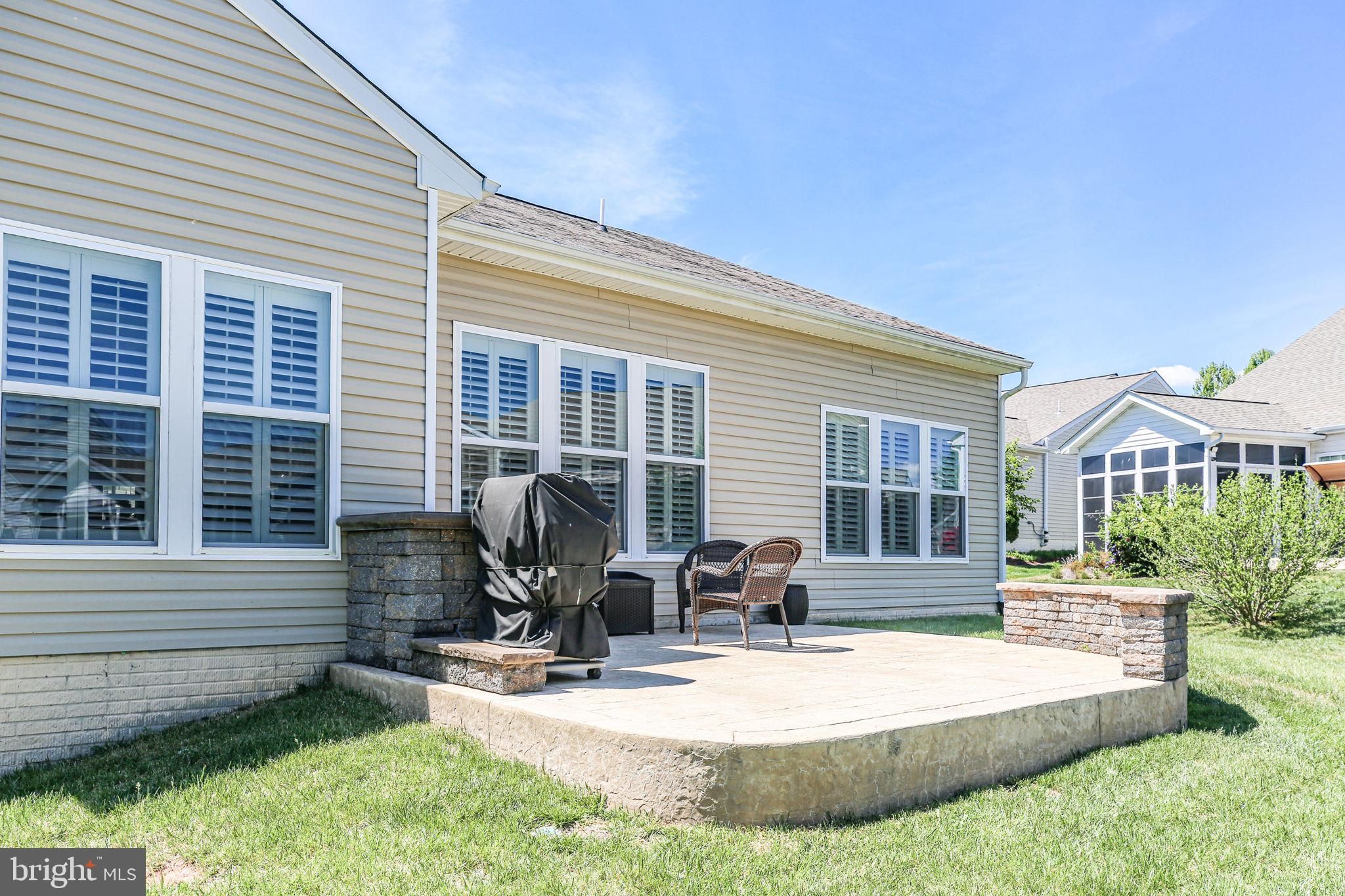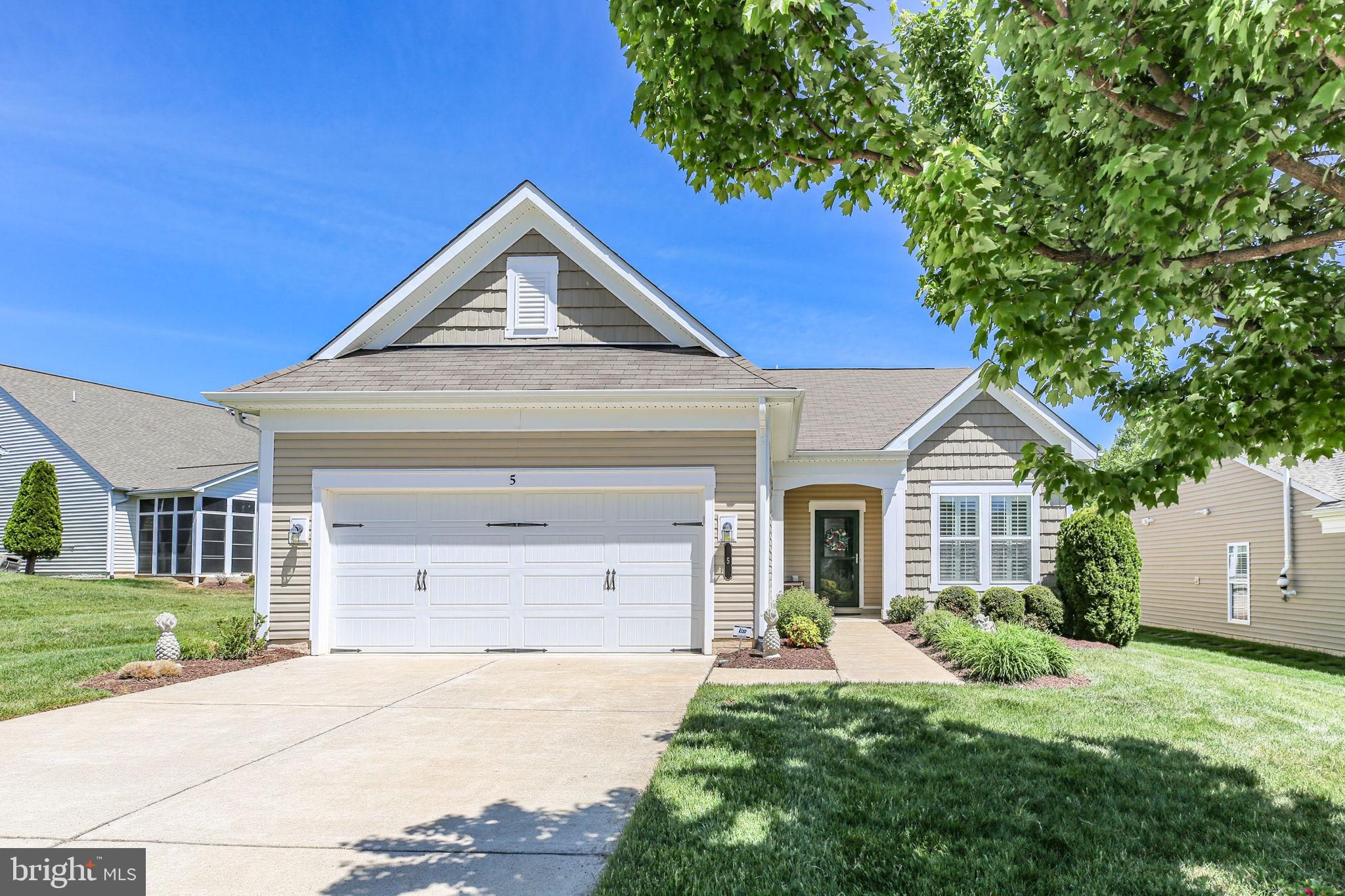 Welcome to 5 Battery Point Drive, a beautifully appointed Celebrate Virginia North residence in one of the area's premier active adult communities. Built by PulteGroup, this highly sought-after Castle Rock model offers exceptional design, abundant upgrades, and the easy, elegant lifestyle you've been waiting for. A welcoming covered front porch sets the tone, offering a sheltered and inviting entry for guests. Inside, a gracious center hallway leads to a private home office or den—ideal for working, reading, or pursuing your favorite hobbies. The heart of the home is the stunning gourmet kitchen, thoughtfully designed with extensive cabinetry on both sides, providing remarkable storage and workspace. Features include stainless steel appliances, quartz countertops, a gas range, built-in microwave, refrigerator, wine fridge, mini bar, a spacious pantry, and a large center island perfect for meal preparation, casual dining, and entertaining. The open-concept layout flows seamlessly from the kitchen to the dining area, sun-filled sunroom, and expansive family room, creating bright and inviting living spaces ideal for everyday comfort and gatherings alike. Natural light pours in through abundant windows, enhancing the home’s warm and airy feel, while plantation shutters on every window offer privacy whenever desired. Privately situated at the rear of the home, the luxurious primary suite serves as a peaceful retreat. It features a spacious walk-in closet and an elegant en-suite bath with dual vanities, a private water closet, and a large walk-in shower adorned with custom ceramic tile and seat. Conveniently located nearby, the laundry room offers added ease with ample folding and storage space. At the front of the home, a second bedroom and full bath provide comfortable accommodations for guests. A separate hallway leads to a well-designed mudroom with built-in organization and access to the spacious two-car garage, which also includes an extra refrigerator for added convenience. Outside, the exceptional outdoor living space is sure to impress. Enjoy relaxing or entertaining on the stamped concrete patio, complete with built-in seating and a natural gas-plumbed barbecue—so you'll never run out of fuel during cookouts with family and friends. Imagine gathering for a meal on a fun summer's evening. Meticulously maintained and featuring neutral paint and flooring throughout, this home is truly move-in ready while offering the perfect canvas for your personal style. Located just a short stroll from the community clubhouse, pools, and gathering spaces, residents also enjoy the services of a full-time Lifestyle Director who coordinates an array of activities, events, and excursions. With easy access to Northern Virginia, the Virginia Railway Express, and historic Fredericksburg—known for its charming boutiques, restaurants, and riverfront parks—this location offers both convenience and connection. Excellent medical facilities, grocery stores, and everyday essentials are all just minutes away.