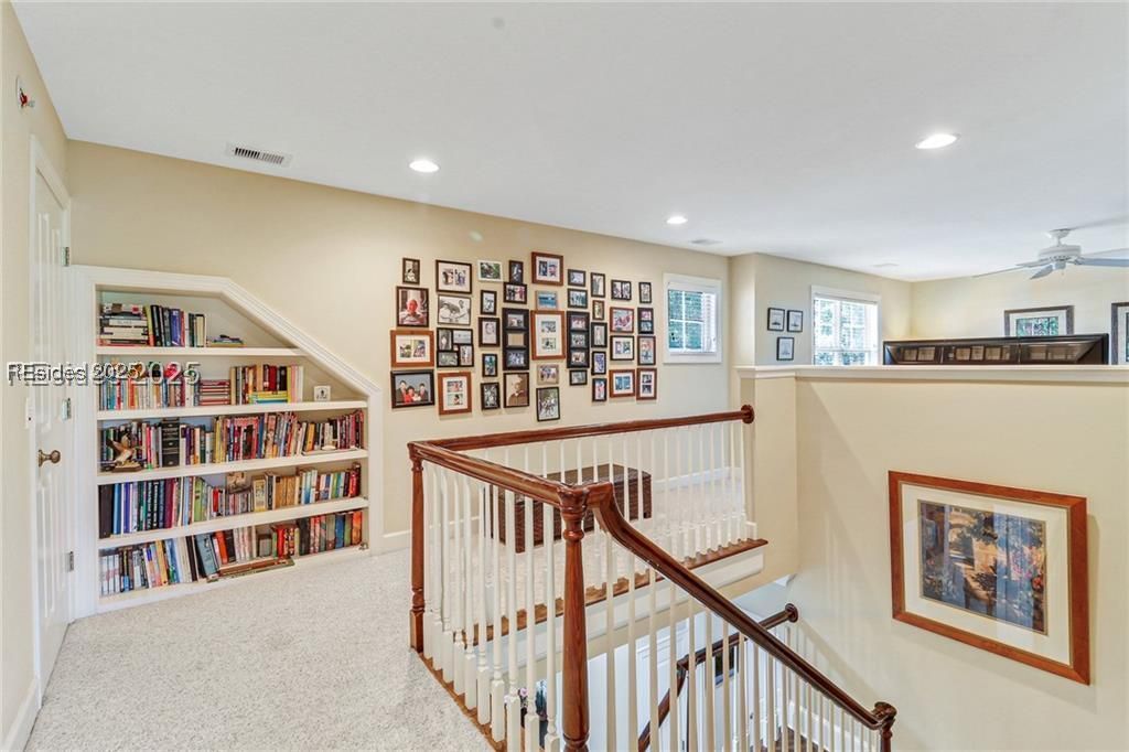- Attic Access, Bookcases, Built-in Features, Ceiling Fan(s), Main Level Primary, Multiple Primary Bathrooms, Smooth Ceilings, Window Treatments, Entrance Foyer, Eat-in Kitchen, Pantry, Workshop