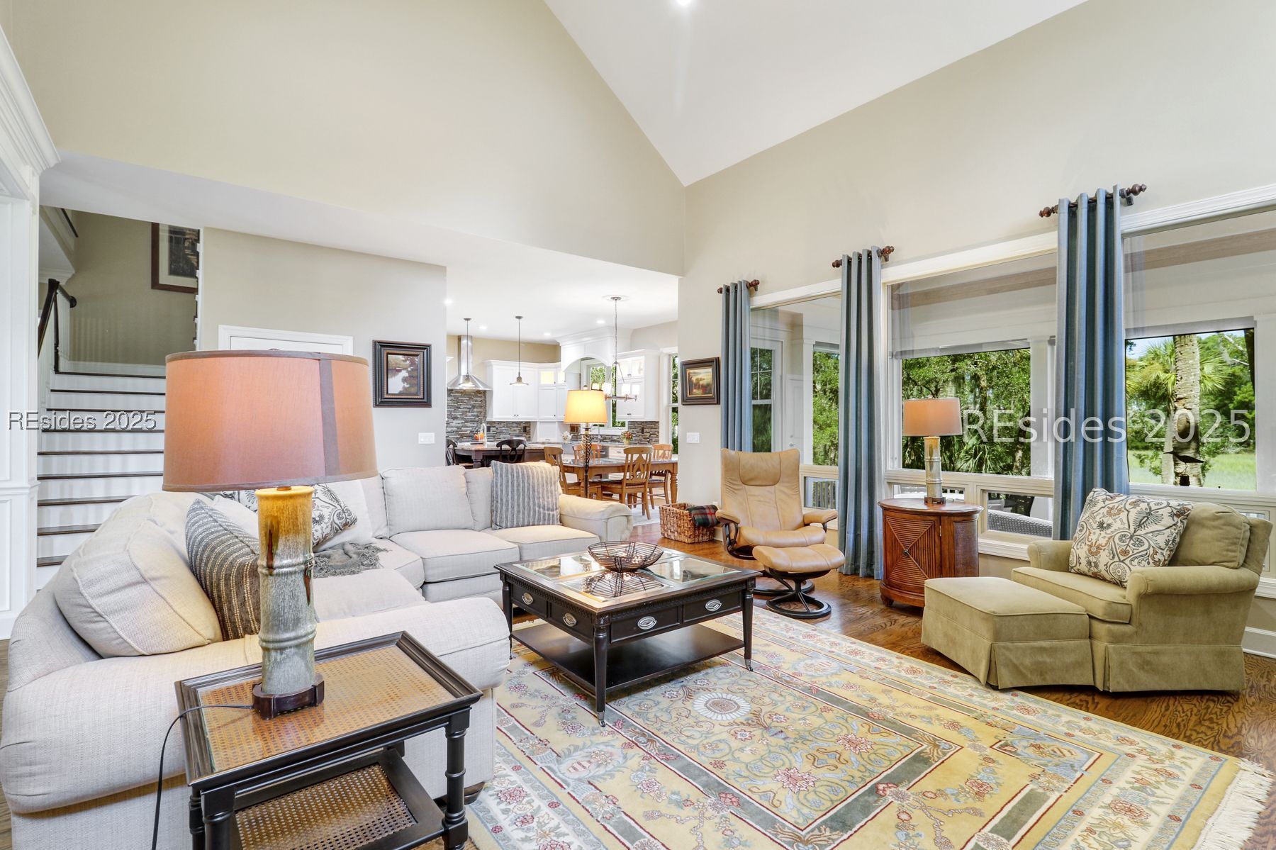 The ultimate in Low Country living in a Park like setting overlooking a beautiful Salt Marsh with Majestic Live Oaks. Designer decorated and updated home with a very open floorplan and a spacious Screened Porch. Large Great Room with tall ceilings opening to an updated kitchen with a large island and breakfast area. Formal Dining room and Living room/Flex room. Primary suite with updated bath on the main floor. Two guest suites and full bath upstairs plus a gathering space. Professionally landscaped with a circular paver driveway, patio and a gravel path to launch your kayak. Large garage with loads of storage.