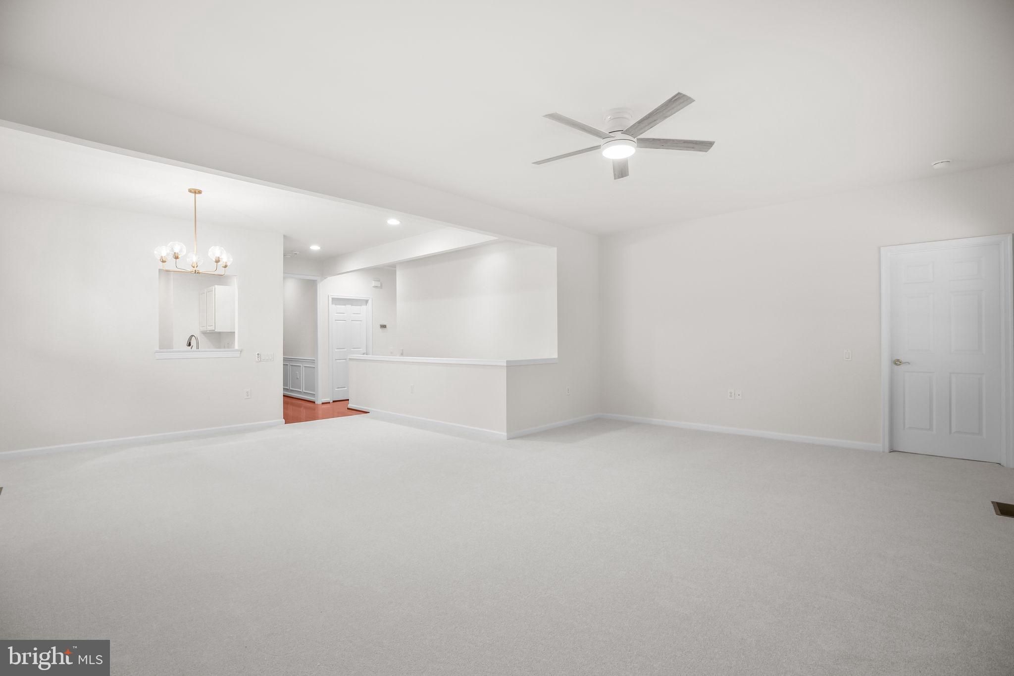 Welcome home to this beautiful 3 bedroom, 3 bath home in the sought-after 55+ gated community of Falls Run in Stafford County! Thoughtfully updated and move-in ready, this home makes it easy to relax and enjoy the good life. As you walk into this gorgeous home, you’ll love the gleaming hard wood floors, the brand-new carpet and fresh paint throughout, giving every room a bright, welcoming feel. 9 foot ceilings and the paneling in the hall add elegance to this attractive retreat. You can leave your coat in the coat closet and check out the spacious open floor dining/living room area. With 5 large windows, this bright space is ideal for both relaxing and entertaining. Open a door and enjoy a beautiful day on a large vinyl deck or in an enclosed sun porch with a new ceiling fan. Lovely lush trees surrounding the deck and the sunporch create privacy and provide shade on sunny days. This delightful space is perfect for dining, barbeques or simply soaking up the peace and quietness. You will love preparing meals in the beautifully updated kitchen! It boasts new Whirlpool appliances and gorgeous new quartz countertops. No doubt, you will enjoy the cozy breakfast area with a large window. There's also a butler's pantry for additional storage. Relax and refresh in the spacious serene owner’s suite complete with a new fan, large windows, a generous walk-in closet with shelving and an ensuite bath featuring double vanities, ceramic tile, and a walk-in shower with a seat. A second bedroom on the main level with a closet and a large window offers flexibility for guests or a home office. Next to this bedroom there is a second bath with a tub, a comfort height toilet, a roomy under sink cabinet and a skylight for extra light. Conveniently located on the main level, the laundry room boasts high-efficiency washer and dryer, a utility sink and cabinets for storage. The two-car garage also has cabinets and is great for storage, tools or hobbies. The staircase with a gate and two handrails will take you downstairs where you'll find even more living space also with a new carpet and fresh paint! There's lots of room for your imagination here: the spacious common area can be used for gatherings, games, hobbies, exercise or anything you like. It has two full-size windows and a door to the shaded back yard. The cozy third bedroom with a large window and a spacious closet is also located on this level as well as the third bath with a tub with a shower and a comfort height toilet. There's even a bonus room on this level perfect for a potential gym, office, play or hobby space (not to code as a bedroom). Additional upgrades include skylights and front and basement storm doors with retractable screens. All this, plus the unbeatable resort lifestyle that Falls Run offers—indoor and outdoor pools, fitness center, tennis courts, billiards, walking paths, and a full calendar of activities and social events. Plus, you’ll be close to shopping, dining, healthcare, and major commuter routes for convenience when you need it. Don’t miss this opportunity to own this beautiful, spacious, and move-in-ready home in one of Fredericksburg’s premier active adult communities. Schedule your tour today and discover what makes Falls Run so special!