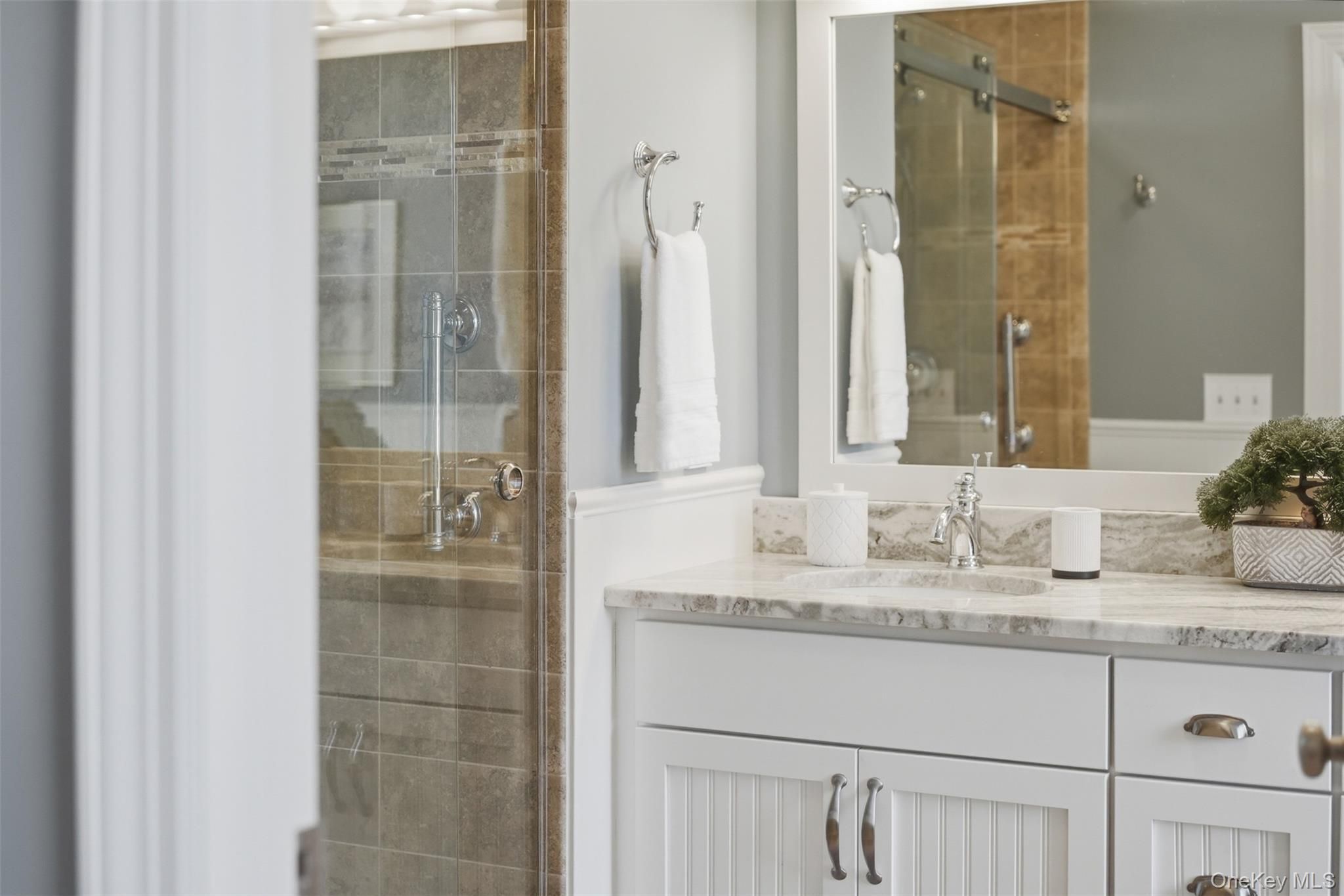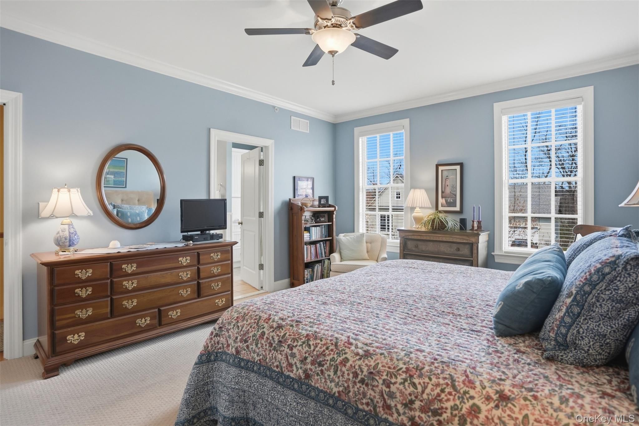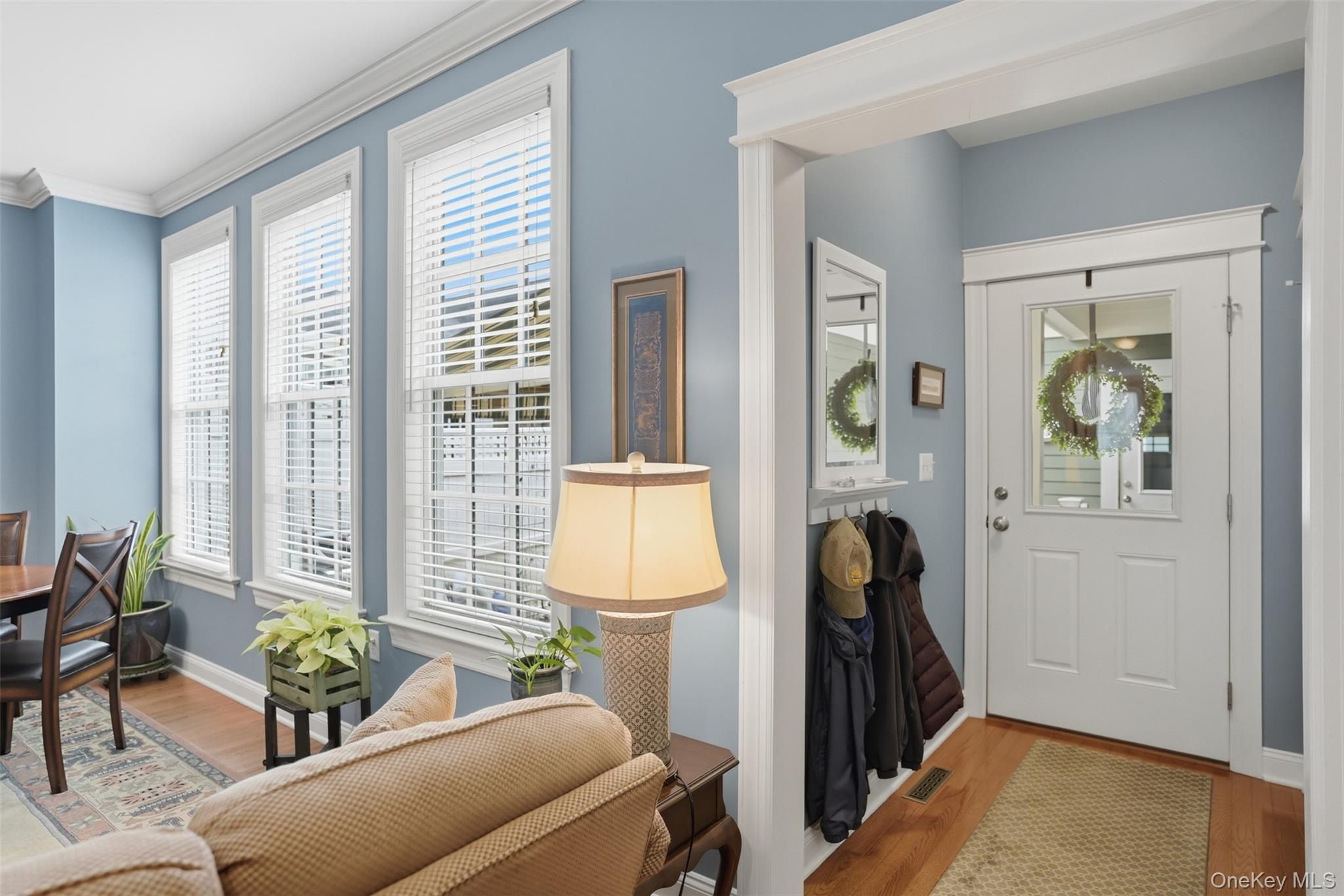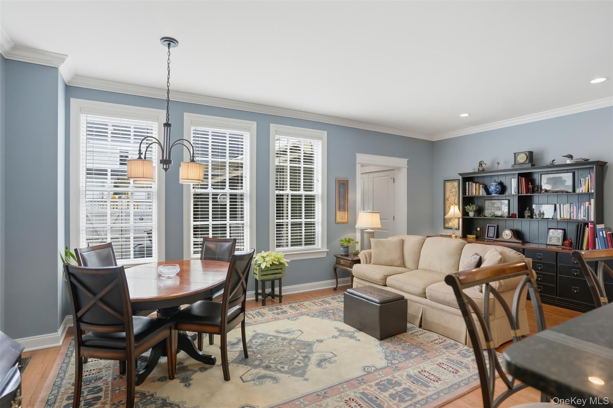 Located in the highly sought-after Warwick Grove community, this exceptional townhouse offers the perfect blend of style, comfort, and easy living. Step inside to an inviting open floor plan enhanced by crown moldings throughout and stunning, thoughtfully curated decor. The sun-filled living space features oversized windows and a cozy natural gas fireplace beautifully set into a custom built-in bookcase—creating a warm and elegant focal point. The kitchen flows seamlessly into the great room and casual dining area, ideal for everyday living and entertaining. A custom pantry with built-in shelving adds both convenience and organization. The generously sized primary suite is a true retreat, complete with two large custom walk-in closets and a totally renovated spa-like bathroom. A well-appointed guest bedroom offers its own private en-suite bath, providing comfort and privacy for visitors. Throughout the home you notice elegant crown molding and the rich hardwood oak flooring that adds warmth and continuity to the first floor. Outdoor living is just as impressive, featuring a private courtyard with a covered porch, plus a beautifully landscaped patio with a grill—perfect for relaxing or entertaining. This is refined, low-maintenance living at its best, all within close proximity to the charming Village of Warwick and all it includes.