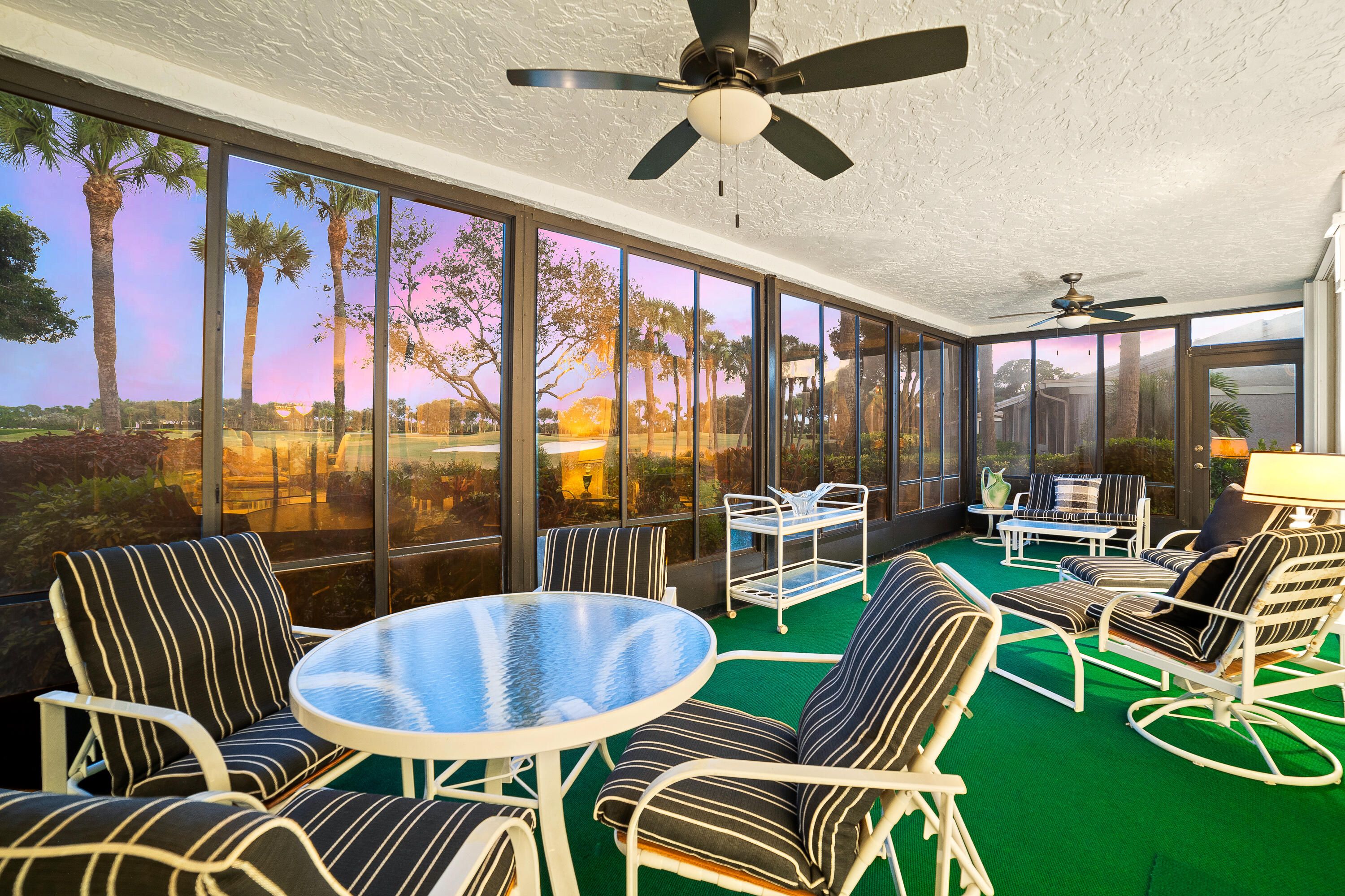 This spacious 1,809-square-foot condo offers sweeping golf course and lake views, three bedrooms—one that can serve as a convertible den, granite counter tops in the kitchen, and two beautifully updated bathrooms. Located on the ground floor, it provides comfortable, convenient access to the outdoors. Inside, abundant natural light fills the living spaces, while the private screened patio overlooking the golf course and wildlife, is perfect for al fresco dining and enjoying Florida's beautiful weather. Off the kitchen and dining room is a large private patio ideal for grilling and outdoor entertaining. There is also a community pool and clubhouse minutes away. The luxury lifestyle awaits at Hunters Run Country Club, offering three, 18 hole championship golf courses including the brand-new East Course designed by Kip Schulties, 18 Har-Tru tennis courts, 12 pickleball courts, a resort-style clubhouse and pool, full-service salon and spa, state-of-the-art fitness center, six dining venues, and more! There is a mandatory one-time equity and initiation fee of $125,000, plus monthly dues.
