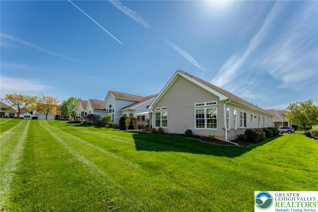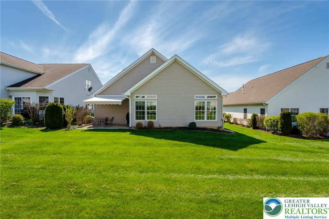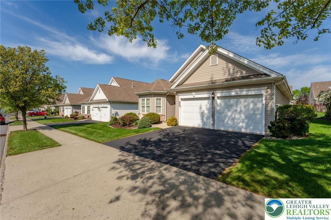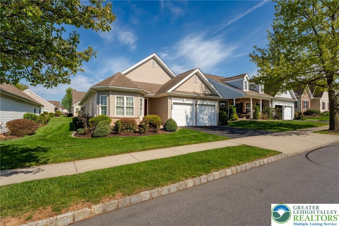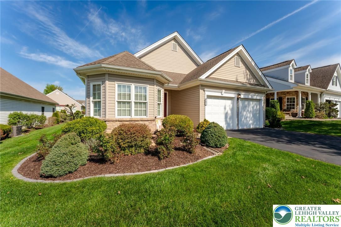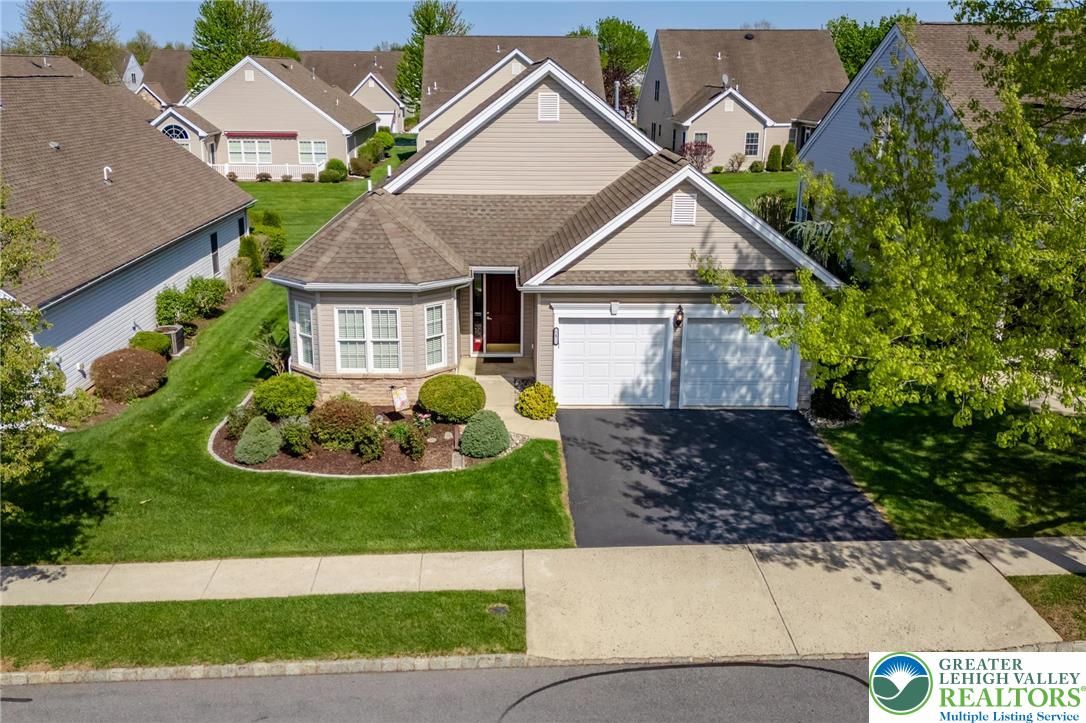 Single-floor living at its finest in the highly sought-after 55+ community of Highlands at Glenmoor. The open floor plan and soaring cathedral ceiling in the family room create a bright, airy feel throughout, with a generous kitchen island, 42" cabinets, and a tray ceiling primary suite with walk-in closet and glass shower. Attic storage and a 2-car garage mean there's a place for everything. New HVAC in 2024, a new electric awning on the patio, and a roof replacement already scheduled by the HOA for 2026 — the big stuff is handled. Lawn care, snow removal, and exterior maintenance are all covered too, along with a pool, tennis, fitness center, and a clubhouse that earns its keep. Quiet and tucked away, yet minutes from major medical, shopping, and PA-33. The best of both worlds — and nothing left to do but move in.