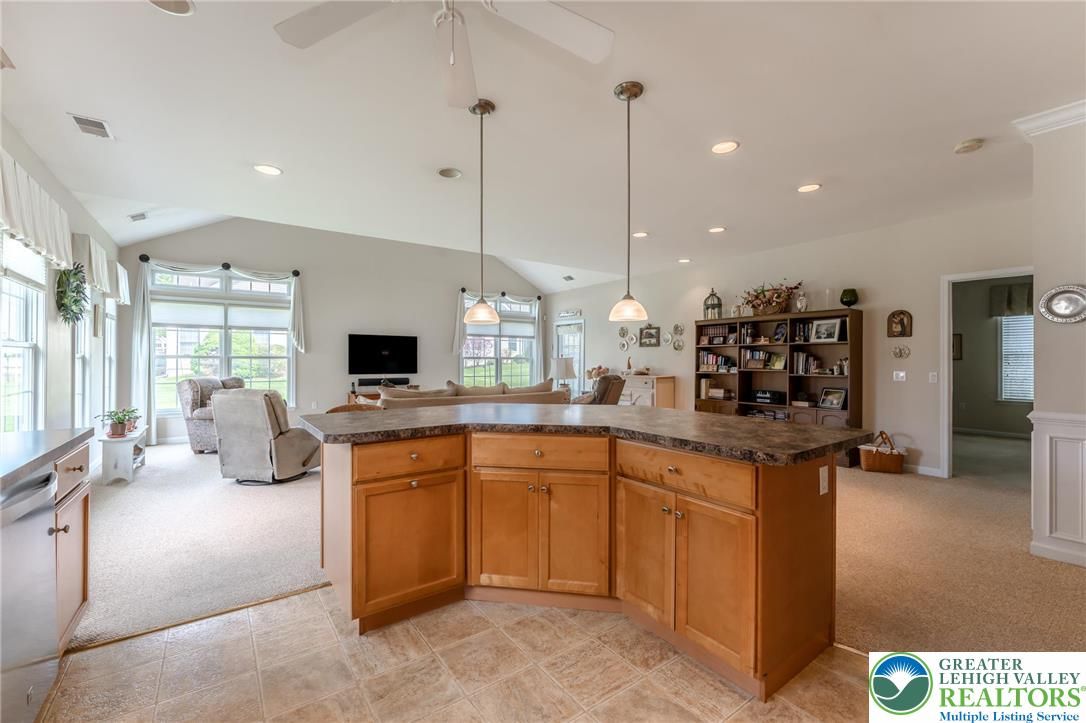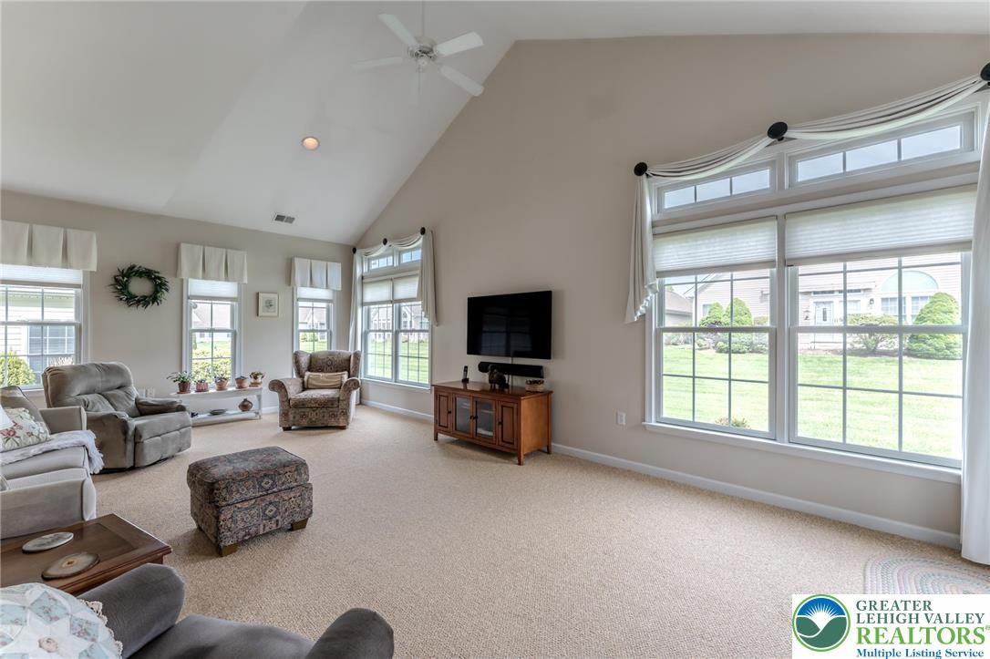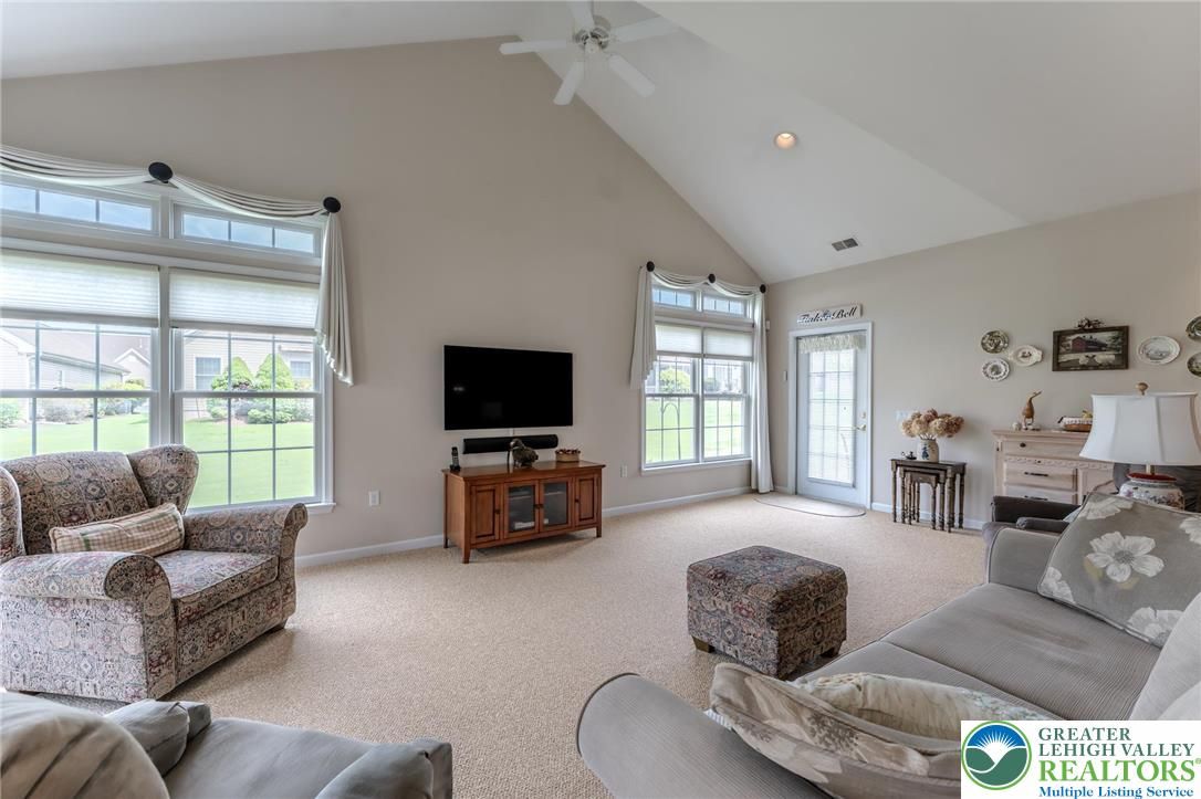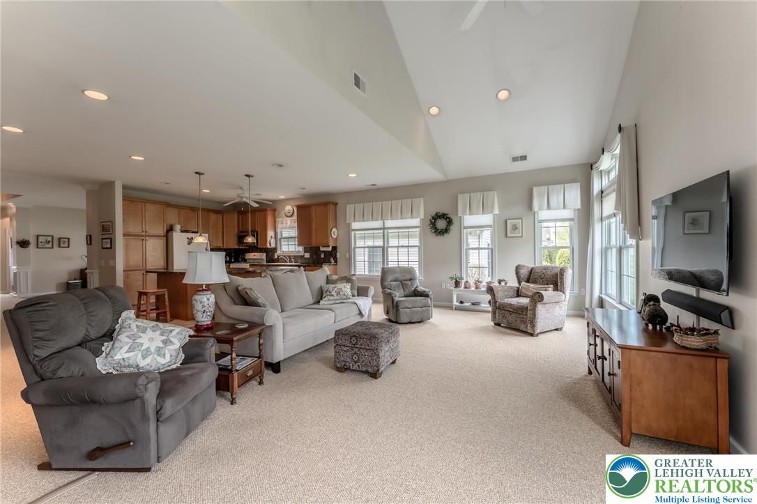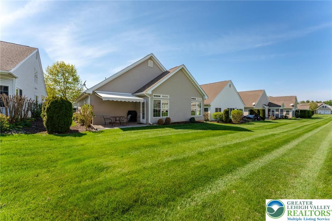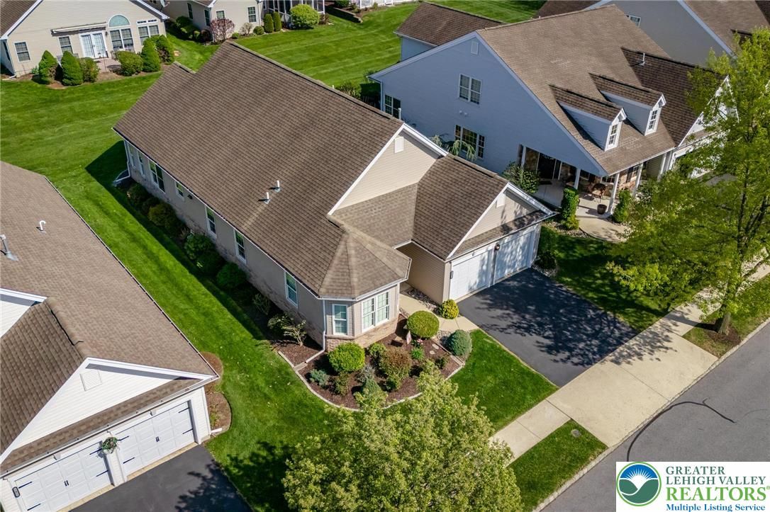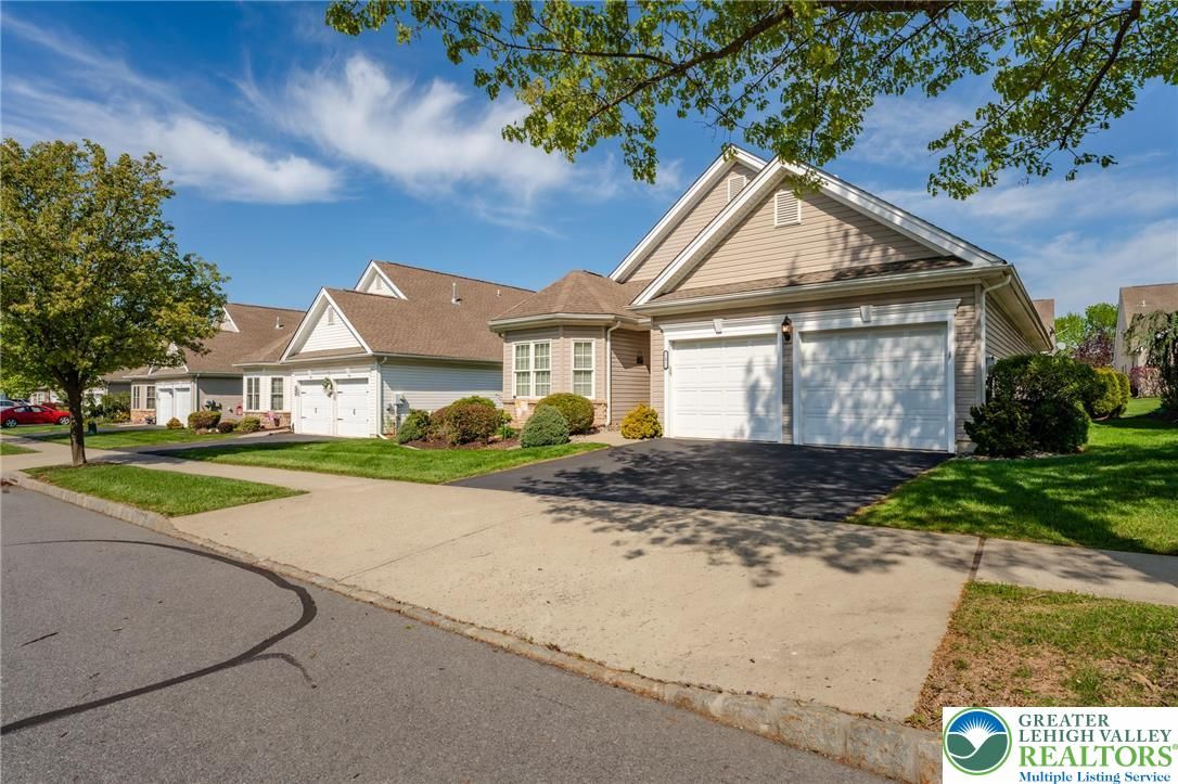 Single-floor living at its finest in the highly sought-after 55+ community of Highlands at Glenmoor. The open floor plan and soaring cathedral ceiling in the family room create a bright, airy feel throughout, with a generous kitchen island, 42" cabinets, and a tray ceiling primary suite with walk-in closet and glass shower. Attic storage and a 2-car garage mean there's a place for everything. New HVAC in 2024, a new electric awning on the patio, and a roof replacement already scheduled by the HOA for 2026 — the big stuff is handled. Lawn care, snow removal, and exterior maintenance are all covered too, along with a pool, tennis, fitness center, and a clubhouse that earns its keep. Quiet and tucked away, yet minutes from major medical, shopping, and PA-33. The best of both worlds — and nothing left to do but move in.