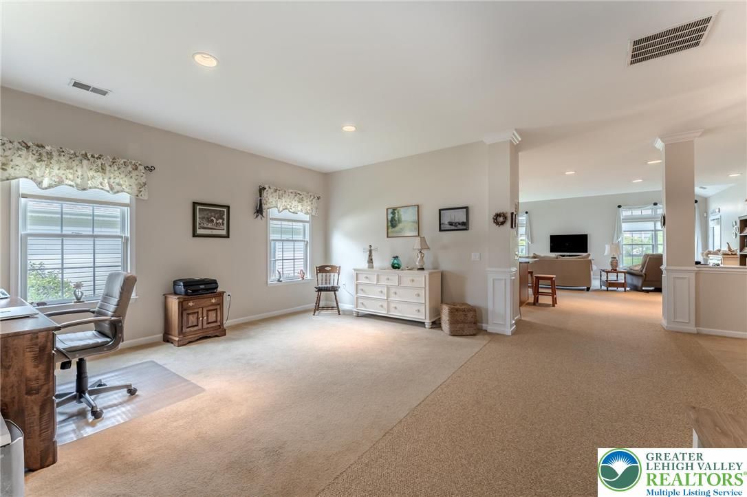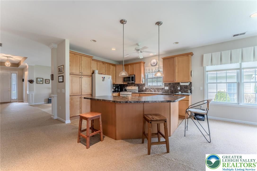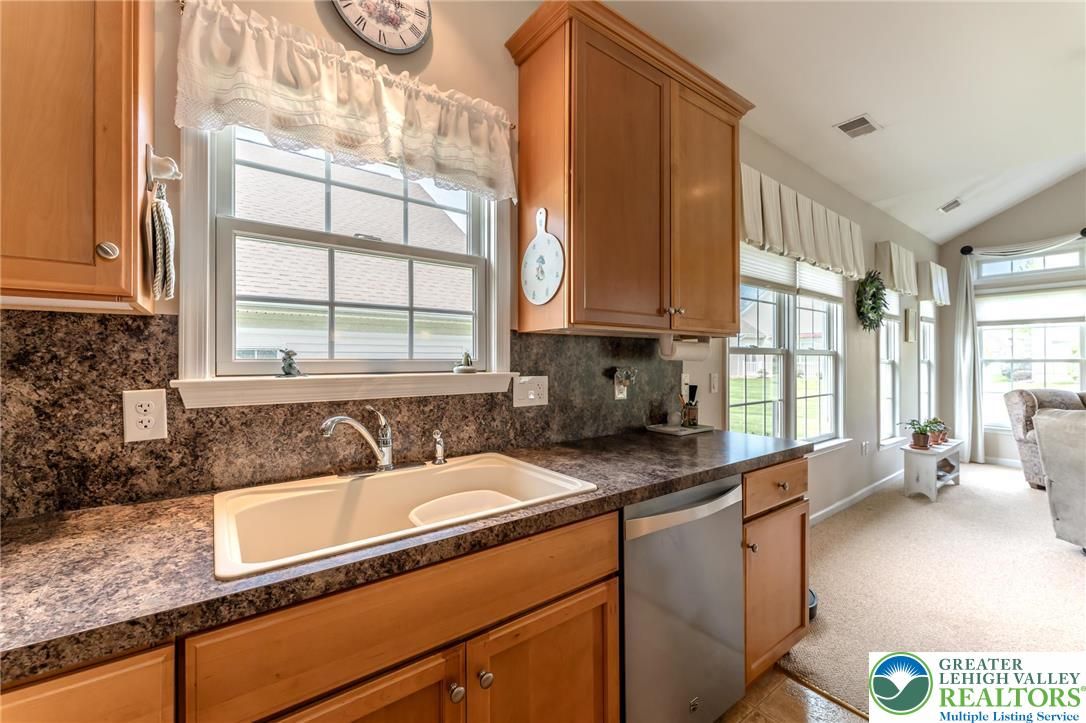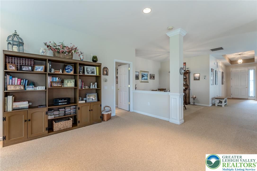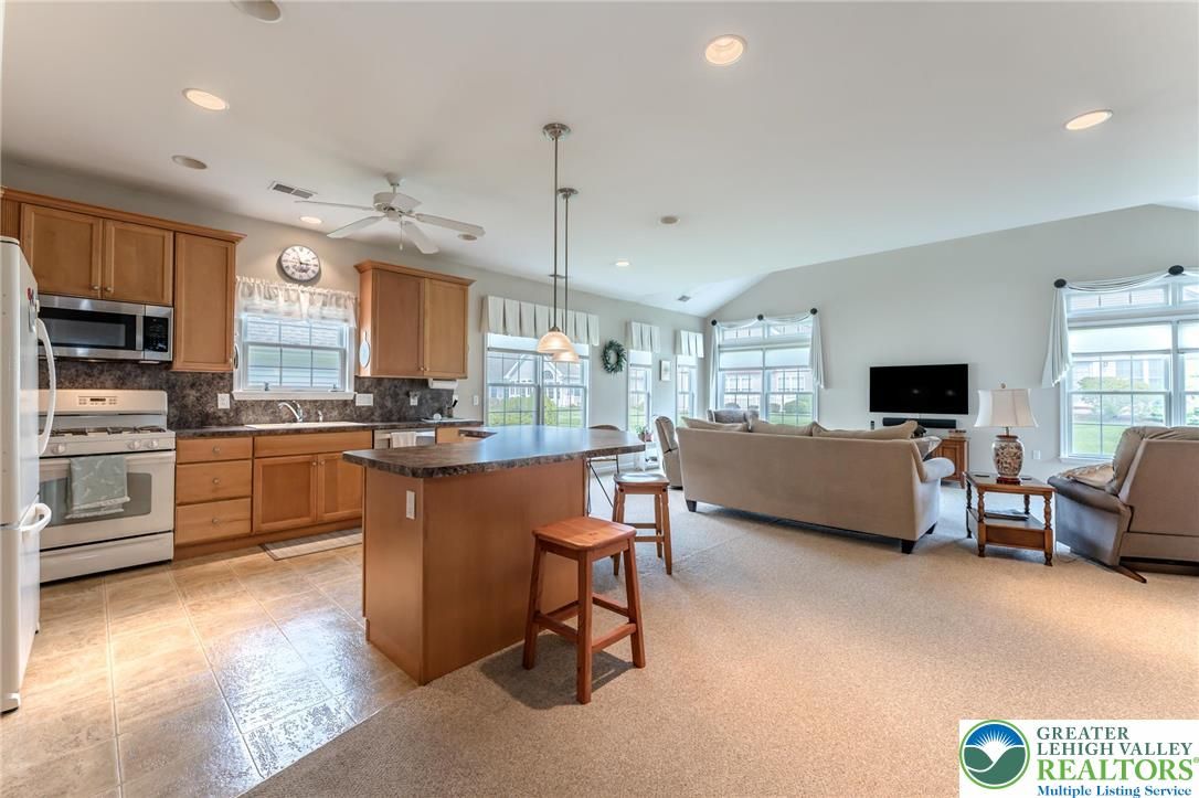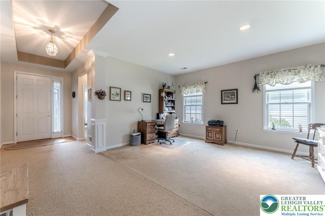 Single-floor living at its finest in the highly sought-after 55+ community of Highlands at Glenmoor. The open floor plan and soaring cathedral ceiling in the family room create a bright, airy feel throughout, with a generous kitchen island, 42" cabinets, and a tray ceiling primary suite with walk-in closet and glass shower. Attic storage and a 2-car garage mean there's a place for everything. New HVAC in 2024, a new electric awning on the patio, and a roof replacement already scheduled by the HOA for 2026 — the big stuff is handled. Lawn care, snow removal, and exterior maintenance are all covered too, along with a pool, tennis, fitness center, and a clubhouse that earns its keep. Quiet and tucked away, yet minutes from major medical, shopping, and PA-33. The best of both worlds — and nothing left to do but move in.