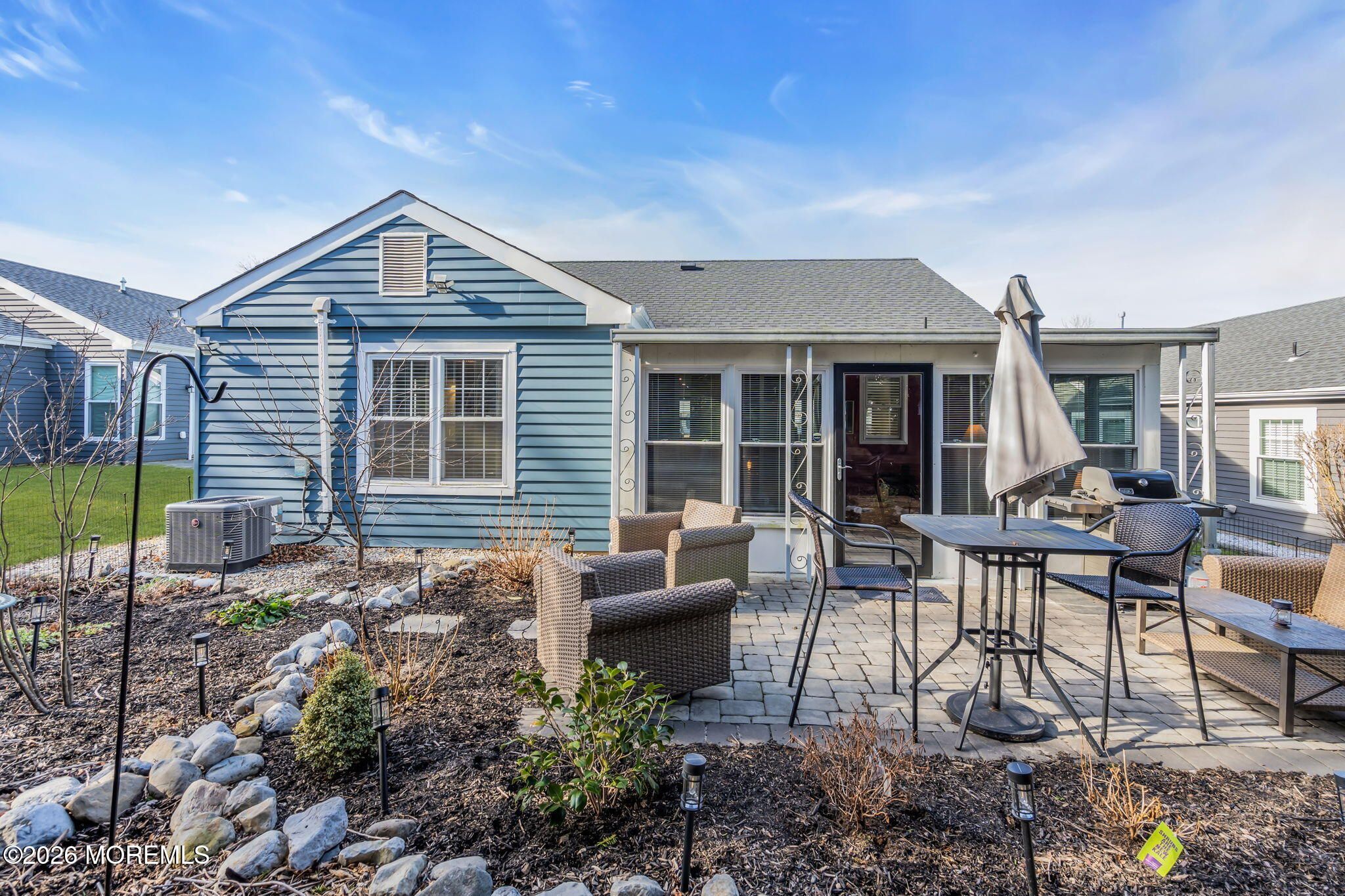 Welcome to this beautifully remodeled Expanded Danbury 1465 SqFt in the desirable Leisure Knoll 55+ gated community. This move-in-ready home features Private Backyard backs up to woods, Double Wide Driveway, Luxury vinyl plank flooring throughout, recessed lighting, and crown molding that adds a upscale feel. Eat-in kitchen with quartz countertops and all appliances replaced in 2023,The former porch off the kitchen has been thoughtfully converted into a heated all-season room with central A/C, offering additional year-round living space. Major updates provide peace of mind, including a new roof (2023) and new water heater (2025). Baseboard Heat with a Bonus of a pellet-burning fireplace. A newer washer and dryer are also included. Ready for you to move in and Enjoy the Community.