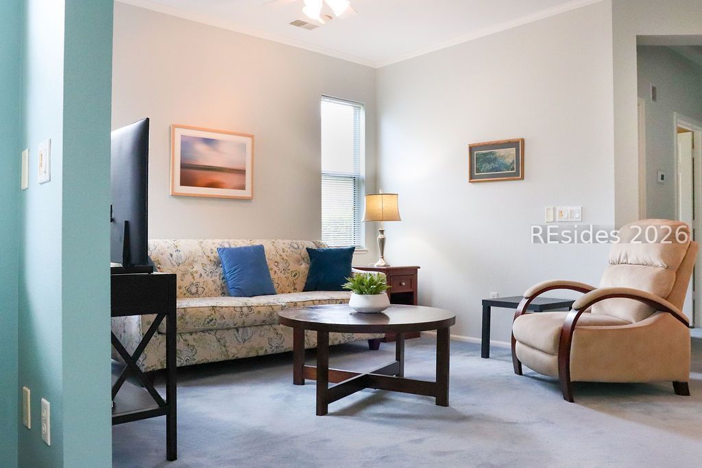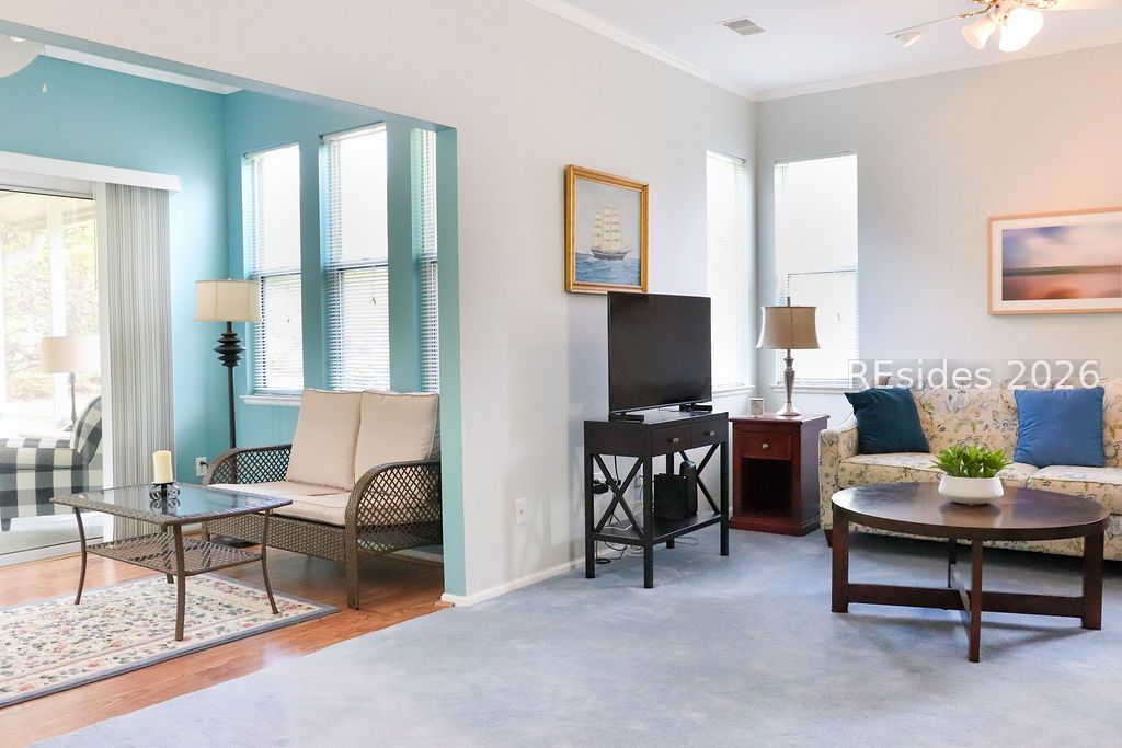 Welcome to 5 Ferebee Way in Sun City, Bluffton, SC-Lowcountry living made easy in one of the area's most sought-after 55+ communities, Sun City by Del Webb. This beautifully maintained single-level home features 2 bedrooms, 2 bathrooms, and a 2-car garage with a bright, open layout filled with natural light. Enjoy a spacious Carolina room with sliding glass doors leading to a large screened-in porch-perfect for relaxing, entertaining, or enjoying the Bluffton lifestyle year-round. The kitchen offers granite countertops, bar seating, gas range, new refrigerator, and ample storage. Additional features include multiple ceiling fans and great storage throughout. The primary suite includes a walk-in closet and walk-in shower, providing a comfortable and functional retreat. Located in Sun City Hilton Head, one of Bluffton's premier active adult communities, residents enjoy world-class amenities including golf, pools, fitness centers, walking trails, clubs, and endless social opportunities-there's truly something for everyone.