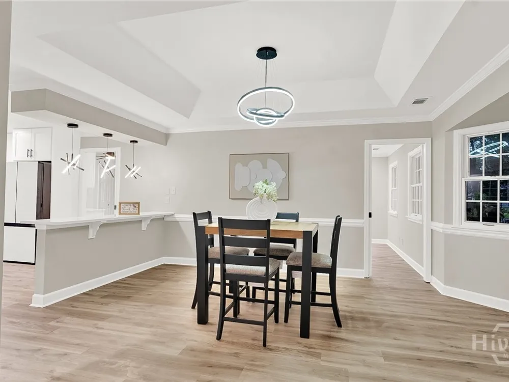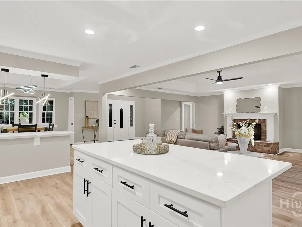 - Breakfast Bar, Tray Ceiling(s), Ceiling Fan(s), Kitchen Island, Main Level Primary, Pantry, Pull Down Attic Stairs, Recessed Lighting, Skylights, Instant Hot Water