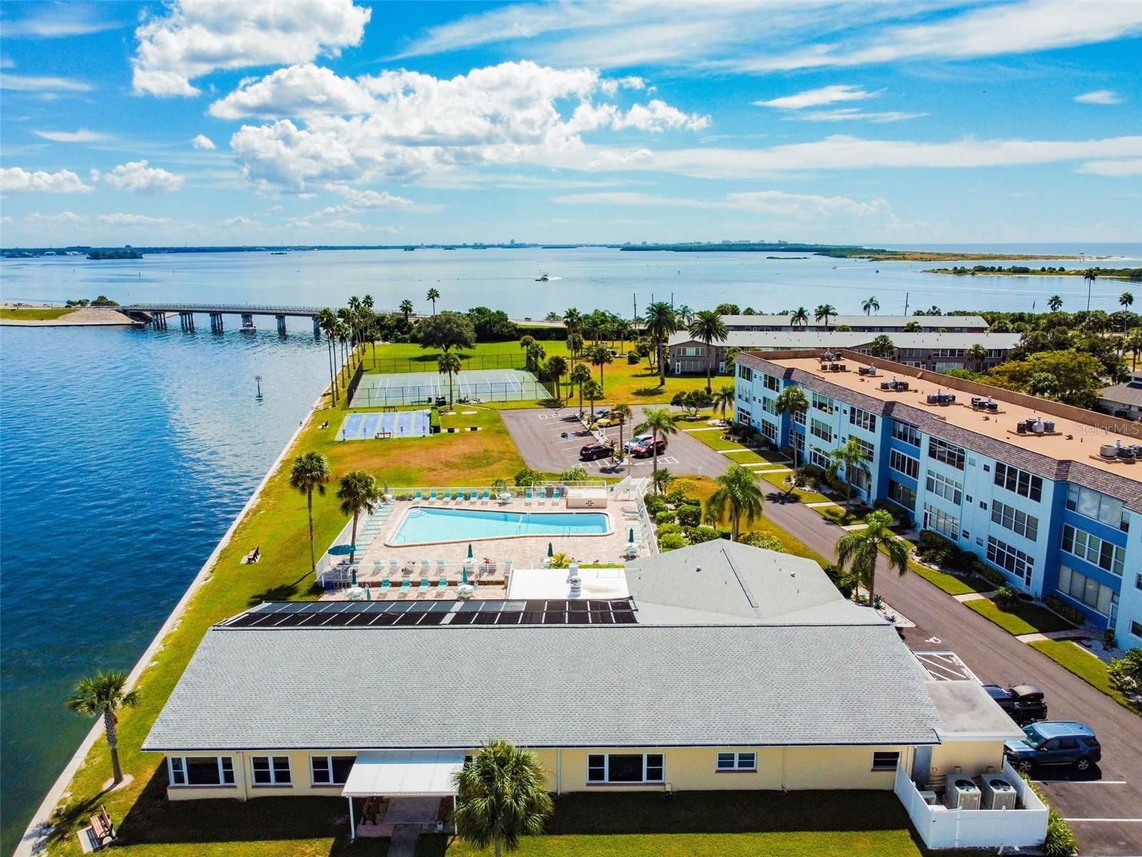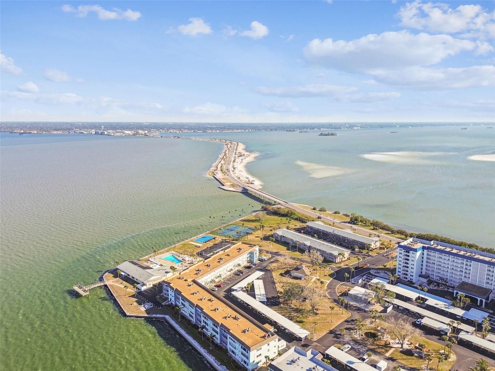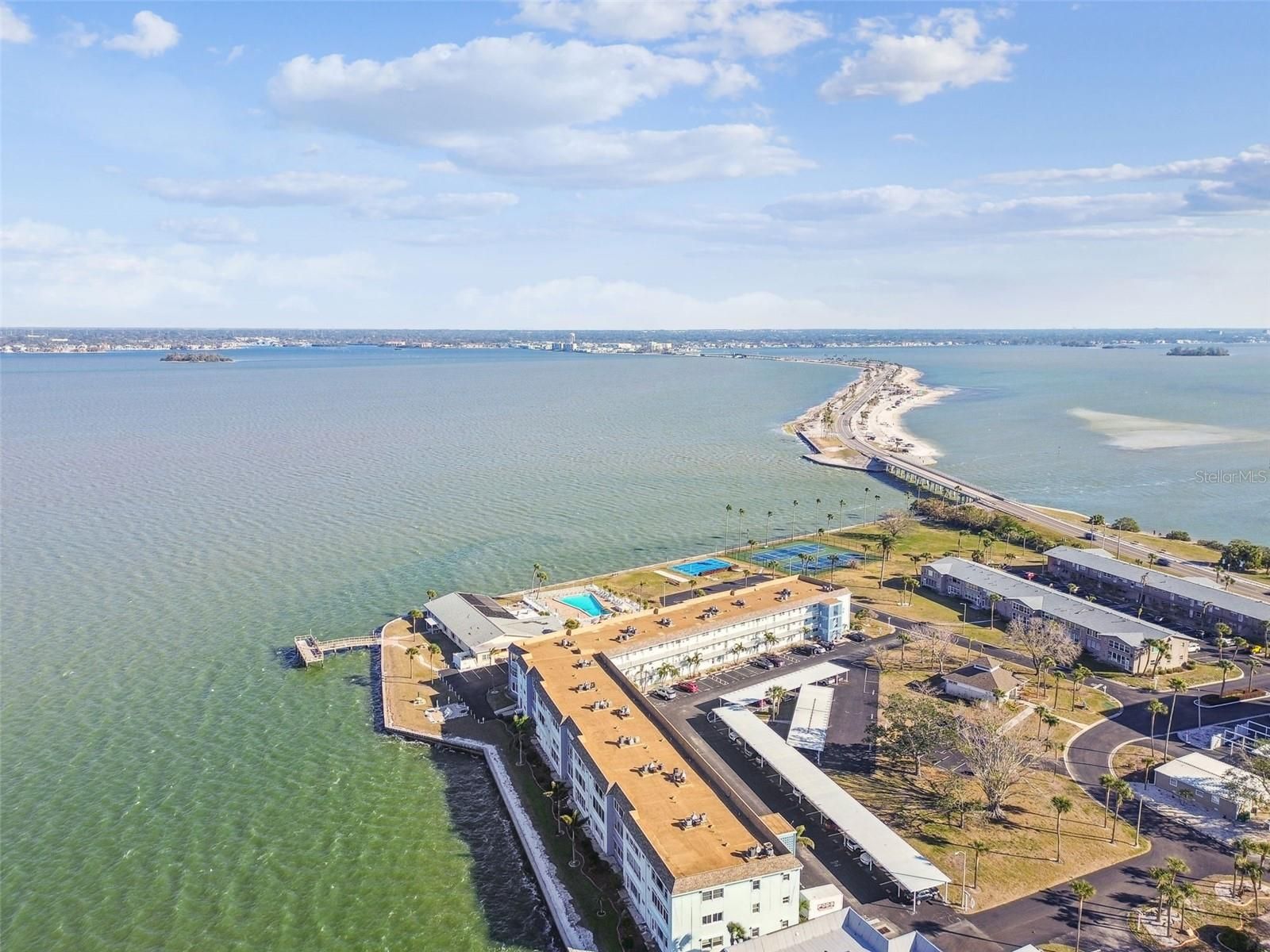 HUGE PRICE REDUCTION! Unbeatable Waterfront Living on Honeymoon Island. Discover your slice of paradise at Royal Stewart Arms, a 55+ community on the serene shores of Honeymoon Island. This second-story condo, accessible via elevator, is bathed in natural light through expansive windows that frame breathtaking panoramic water views of St. Joseph Sound and the Gulf of Mexico. No hurricane damage in this condo. Whether you're enjoying the tranquil beauty of the water or soaking in the stunning sunsets, the views here are genuinely unmatched. Located just steps from the community's waterfront amenities, you'll have easy access to a heated solar pool, clubhouse (currently under renovation), tennis, pickleball, shuffleboard courts, and a private fishing pier with sweeping views of the sparkling St. Joseph Sound. This idyllic setting offers a daily dose of nature's peace and charm, making it the perfect place to unwind. The location is second to none at Royal Steward Arms on Honeymoon Island. It is located on the north side of the Dunedin Causeway, just minutes from Honeymoon Island Beach and the scenic Pinellas Trail. Explore downtown Dunedin's quaint shops, top-notch restaurants, and cozy breweries, all just a short distance away. Essential services like a Publix grocery store, pharmacy, marina, and dining options are also conveniently nearby. This move-in-ready one-bedroom, one-bath condo boasts an open-concept layout that seamlessly connects to a Florida room (included in the total square footage). Freshly painted with new light fixtures and bathroom hardware, this home is stylish and comfortable. Plus, it comes with convenient amenities like laundry facilities on each floor and an assigned parking space right by the stairway. The Royal Stewart Arms community offers many leisure activities, including a solar-heated pool, pickleball, tennis, shuffleboard courts, and a private fishing pier. The nearly renovated clubhouse features a fitness center, sauna, billiards, and a spacious gathering area with a widescreen TV. Landscaped grounds, picnic areas, gas grills, and even a car wash station provide everything you need for an active, relaxed lifestyle. The comprehensive HOA fee covers maintenance, water, cable, gas, building insurance and on-site management, ensuring a stress-free living experience. Don't miss the opportunity to own this exceptional waterfront condo on Honeymoon Island. Your tropical paradise is waiting! Note: No pets allowed. New owners must hold the property for one year before leasing, thereafter one tenant annually.