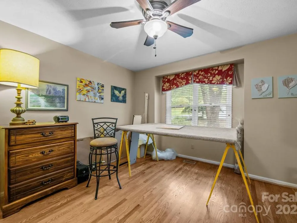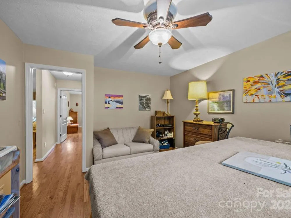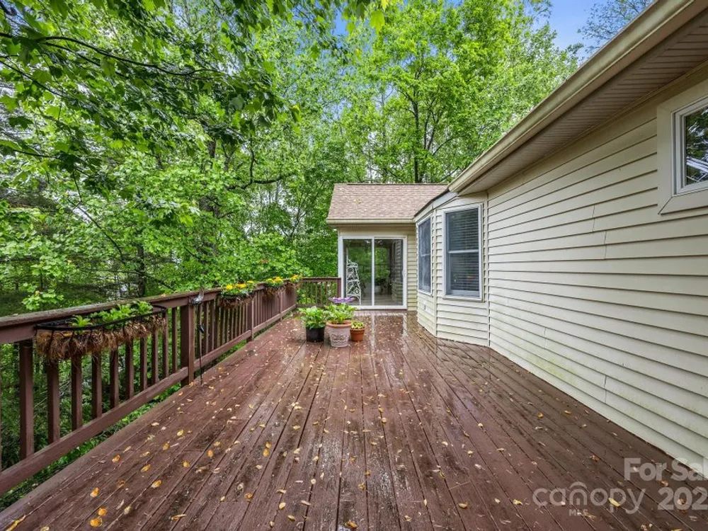 Welcome to this beautifully maintained 3-bedroom, 2-bathroom home situated on a corner lot in the highly sought-after gated community of Carriage Park. Featuring hardwood floors throughout, this single-story home offers easy living with a spacious layout and elegant finishes. Enjoy relaxing in the bright and airy sunroom, which opens to a private deck with a peek of mountain views—perfect for morning coffee or evening unwinding. The primary suite includes a large ensuite bath, and the additional bedrooms provide ample space for guests or home office use. The lower level, accessed through the garage, offers a versatile recreation room, convenient half bath, and a dedicated workshop area. The massive crawlspace provides abundant storage opportunities. The beautifully manicured lawn adds to the home’s curb appeal, and you’re just around the corner from the community’s indoor pool and amenities. Located less than 10 minutes from downtown Hendersonville.