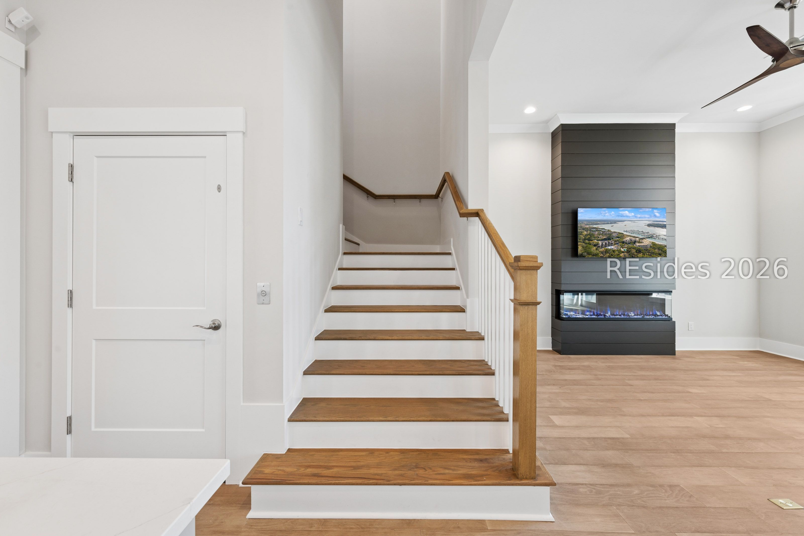 Stunning 3 bedroom Townhome located in Hilton Head Plantation. Built in 2024, this beautifully designed residence features 3 ensuite bedrooms, 3.5 bathrooms, and a private elevator. The open-concept living and kitchen area is complemented by a screened porch ideal for relaxing or entertaining. The inviting living room showcases a custom floor to ceiling built in, electric fireplace with 3 sided glass and a Samsung Smart TV. The primary suite is conveniently located on the first floor and the laundry area is equipped with newer GE Smart washer & dryer. The 2nd floor offers an open sitting area and 2 additional bedrooms, providing excellent separation and privacy. Additional highlights include a 2 car garage and an adjacent additional 650 square foot flex space with ceramic tile flooring. This climate controlled room features a mini split HVAC system, making it ideal for a home office or studio, along with ample storage. The home is equipped with premium upgrades including a Culligan whole-house water filtration system, built in dehumidifier, smart thermostats, custom window treatments and a monitored security system. Ideally located just a 2 minute walk to the Skull Creek Marina and Country Club of Hilton Head, residents enjoy exceptional amenities including a private sandy beach on Port Royal Sound, a lazy river community pool, 12 tennis courts, bocce courts, pickleball, playgrounds, scenic trails, 2 nature conservancies with boardwalks, beautiful Bluff walking path on the Port Royal Sound and more.