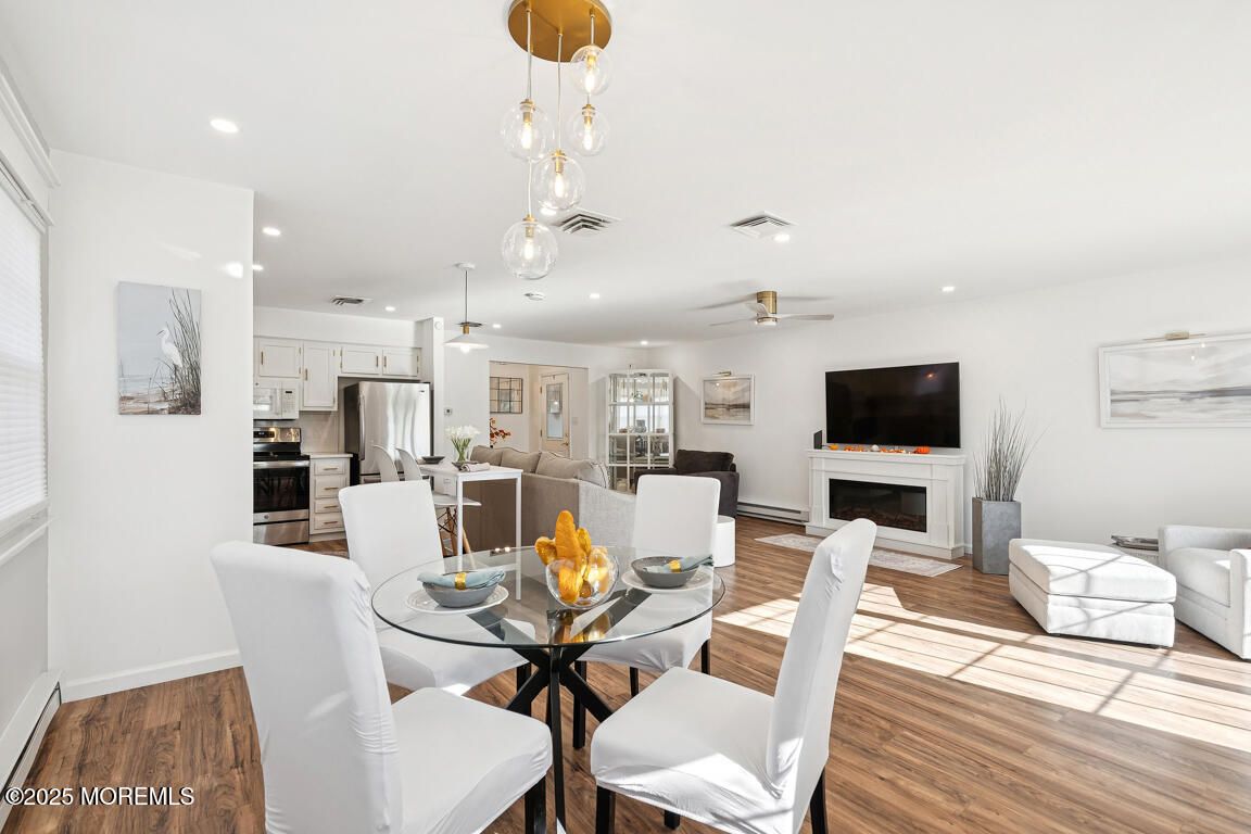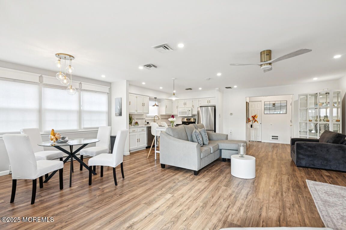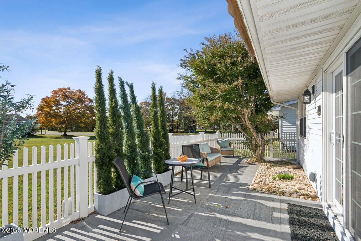 This updated home offers the perfect luxury retirement option with 2 spacious bedrooms and an open floor plan. The kitchen features quartz countertops, a new stove, and dishwasher, as well as a white and grey porcelain tile backsplash for added elegance. Additional amenities include ample closet space, a beautiful fireplace, and an updated electric panel. The private fenced in backyard boasts a large paver patio, a blooming crepe Myrtle tree, and a Sunsetter awning. Nearby, there is a stocked lake for fishing and a walking/jogging path. Community amenities include bus service, pools, bocce, shuffleboard, billiards, ceramics, woodshop, and a pickleball court. The updated landscaping with a red maple tree adds charm to this beautiful home. Located a short distance from Jersey shore beache and the family-friendly Point Pleasant boardwalk, this retirement option is not to be missed.