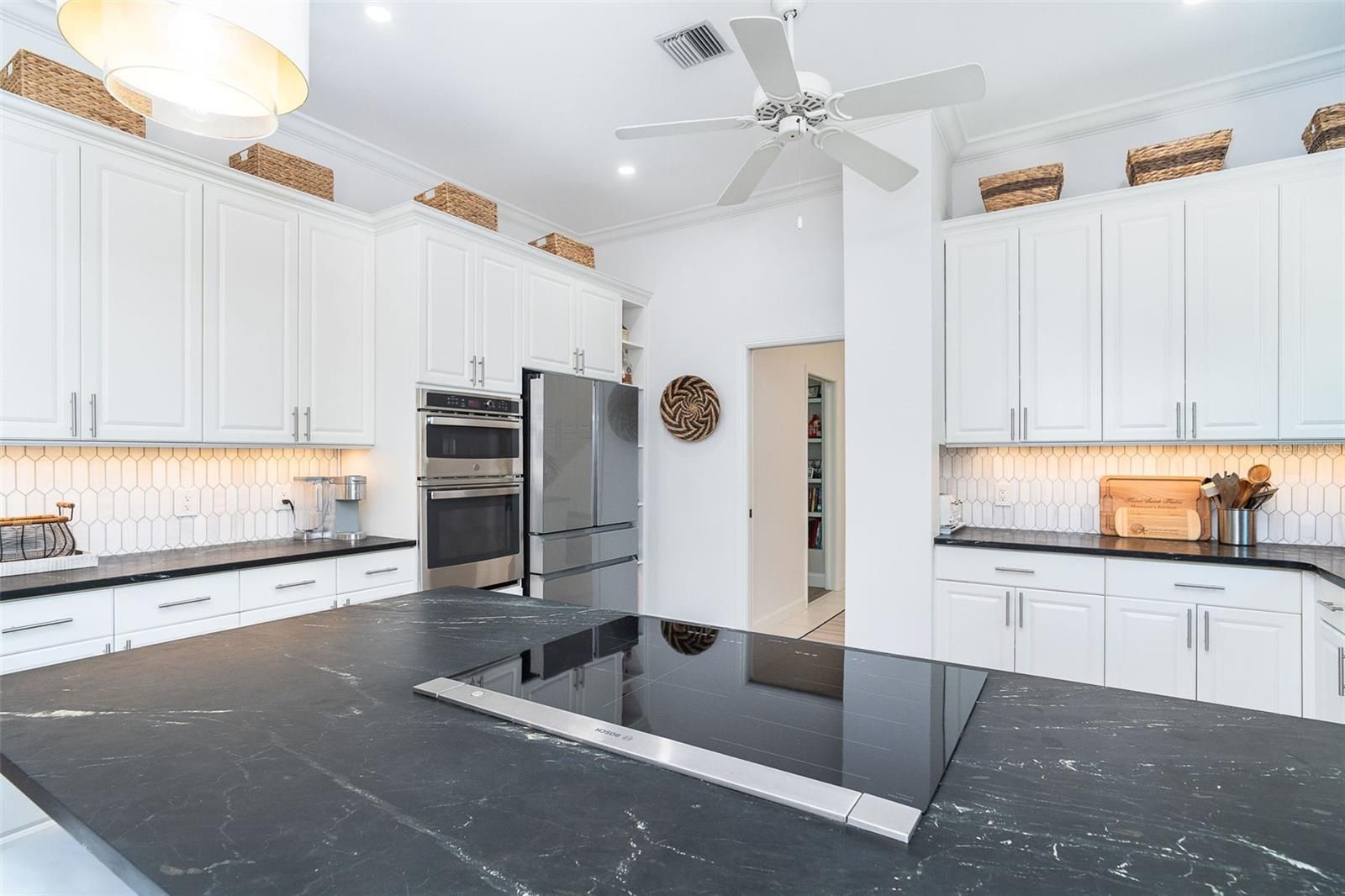 - Ceiling Fan(s), Coffered Ceiling(s), Crown Molding, High Ceilings, Open Floorplan, Split Bedrooms, Stone Counters, Thermostat, Walk-In Closet(s), Window Treatments