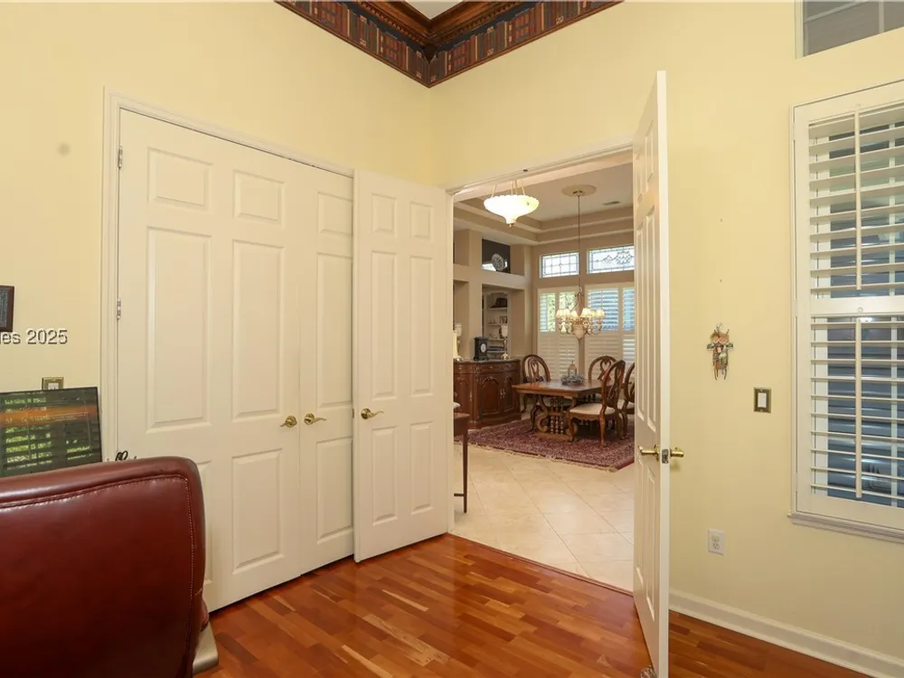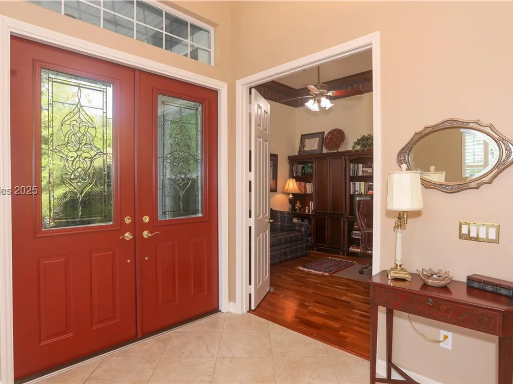 P R I V A T E V I E W--beautiful, Sun City wooded 0.321 acre lot with lush landscaping & a wrap-around lagoon view on a quiet cul-de-sac. 10' & 12' ceilings, 8' doors give this Estate home a majestic look & feel with double tray ceilings in Office, LR & Dining Area. Paver driveway & walk; stamped concrete rear patio with gas stub for grill. Huge lanai=great for entertaining. Zero entry throughout--no steps! UPDATES: 2021 Brazilian Cherry floors in Bedroom, 2020 Kitchen Aid Refrigerator, Zero-entry shower Main Bath, Replaced all up/down opening Windows with Cat. 3 Hurricane Protection Windows; 2019 Replaced double Front doors with Steel & Impact Glass Cat 4 Certified with a Lifetime Warranty; 2019 Bosch Dishwasher; 2017 Primary Bath Total Renovation; 2016 Paver Driveway, Kitchen Cabinets, Silestone Counters, Double Ovens; 2014 Porch Mini split; 2012 Aluminum Pergola, 50-yr GAF Roof Transferable Warranty; Shutters throughout; Whole house Generator; All flexible Ducts were replaced with Metal Ducts.