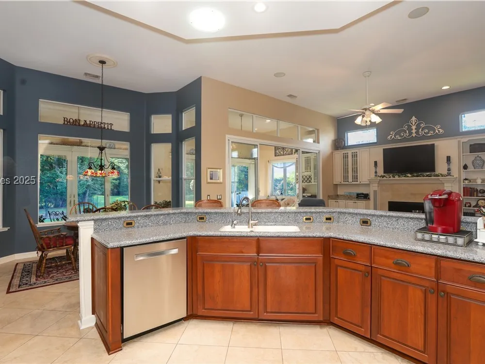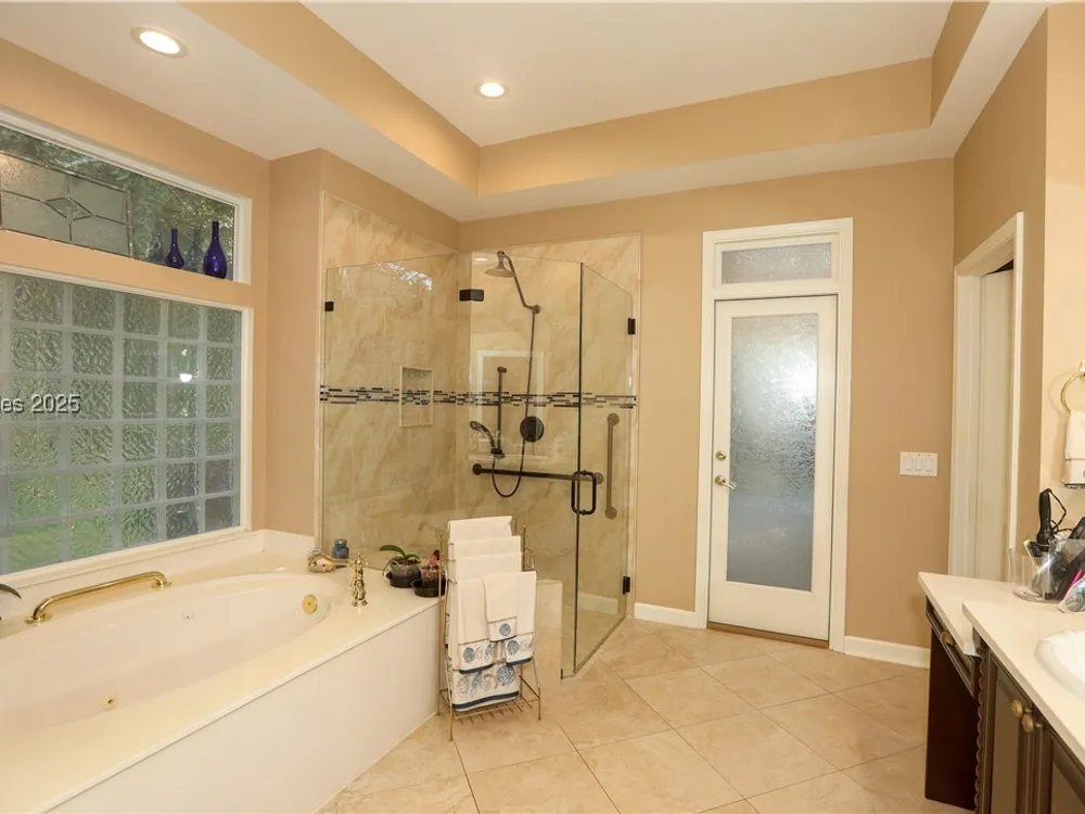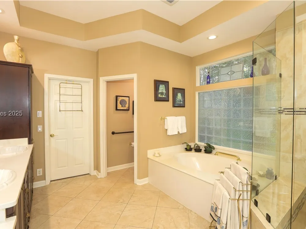 - Attic Access, Bookcases, Built-in Features, Tray Ceiling(s), Ceiling Fan(s), Fireplace, Accessibility Features, Jetted Tub, Main Level Primary, Multiple Primary Bathrooms, Pull Down Attic Stairs, Smooth Ceilings, Separate Shower, Wired for Sound, Window Treatments, Eat-in Kitchen, Pantry, Solar Tube(s), Workshop