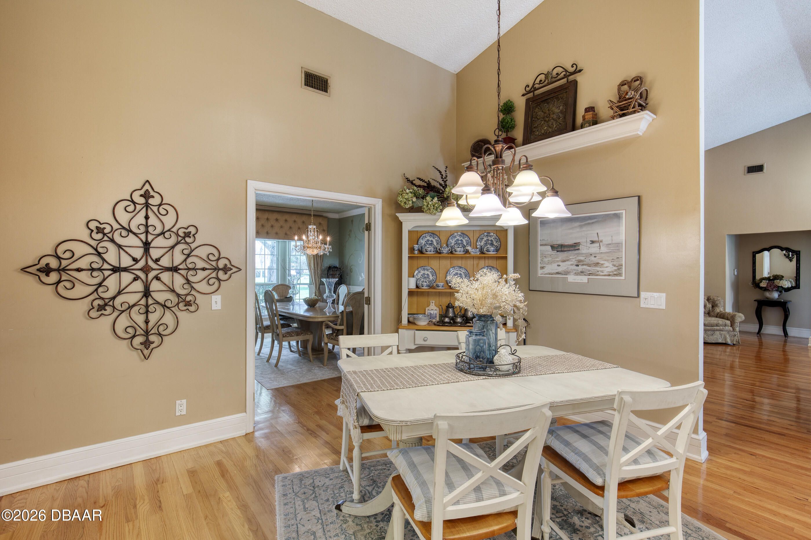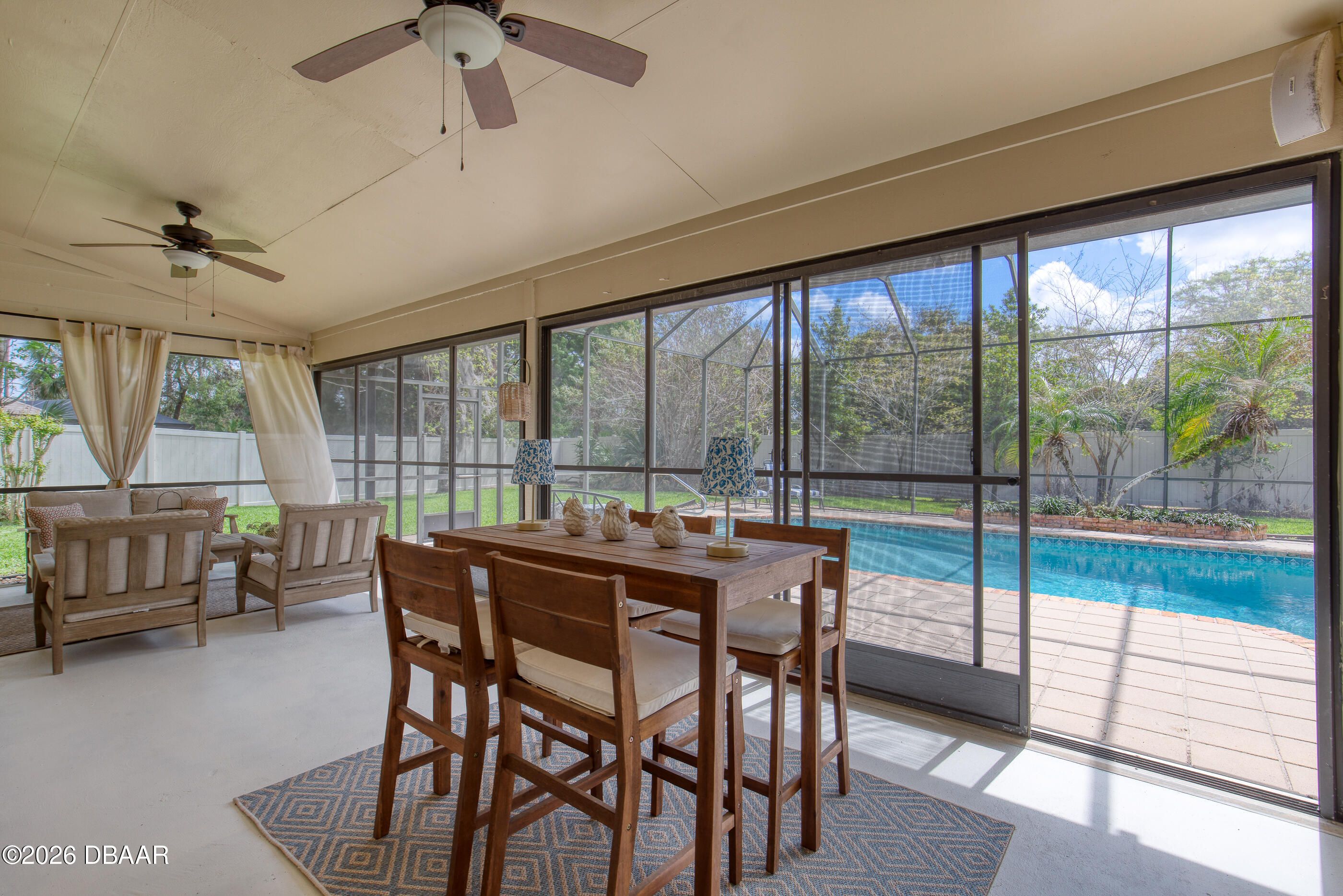 Elegant pool home in Breakaway Trails offering 3 bedrooms, 2.5 baths, and a 3-car garage on a large lot with plenty of space for pets or kids to enjoy. Gorgeous wood floors flow throughout, complemented by vaulted ceilings that enhance the bright, airy feel. French doors open to a private office--an ideal work-from-home space--and additional French doors lead to the Florida room, filling the home with abundant natural light. The smart layout features a separate living room and family room with the kitchen perfectly centered for easy living and entertaining. A formal dining room sits just off the eat-in kitchen, creating a seamless flow for gatherings.Bedrooms are thoughtfully arranged with a Jack & Jill bath for added convenience. Relax in the Florida room overlooking the sparkling pool and newly fenced backyard. Upgrades include a new oven and microwave and brand-new roof, gutters with screens for peace of mind and a new vinyl privacy fence. Enjoy community amenities including pickleball, clubhouse, tennis, dog park and walking trails. Information deemed reliable but not guaranteed. All measurements are approximate and subject to buyer verification.