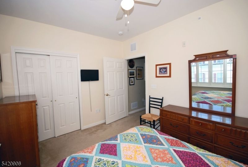 Top floor BEGONIA in a superb location with fantastic views! An ideal floor plan with an open feel offering privacy between the bedrooms. A bright kitchen with white cabinetry, ample counter space, breakfast nook & pantry. Primary bedroom suite has a tray ceiling, large walk-in closet & luxurious bathroom. Featuring new HVAC, furnace & hot water heater (2023-2024), plantation shutters and private garage w/storage room. Take in the beauty of nature, colorful trees, a slice of the NYC skyline & sunrise from your balcony and windows. An outstanding 25,000 sq.ft. clubhouse with the BEST amenities: indoor & outdoor pool, tennis/pickleball, card rooms, Mahjong, putting/driving, fitness center, grand ballroom, clubs, activities & more. Bordering Montclair with terrific restaurants, shops & boutiques. Experience the joy of resort style living in this premier gated community!