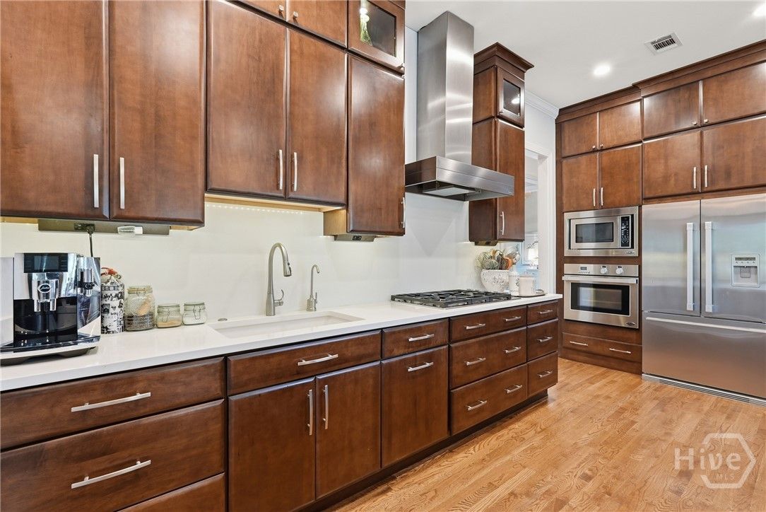 - Some Gas Appliances, Cooktop, Dishwasher, Disposal, Gas Water Heater, Microwave, Oven, Plumbed For Ice Maker, Range Hood, Self Cleaning Oven, Refrigerator