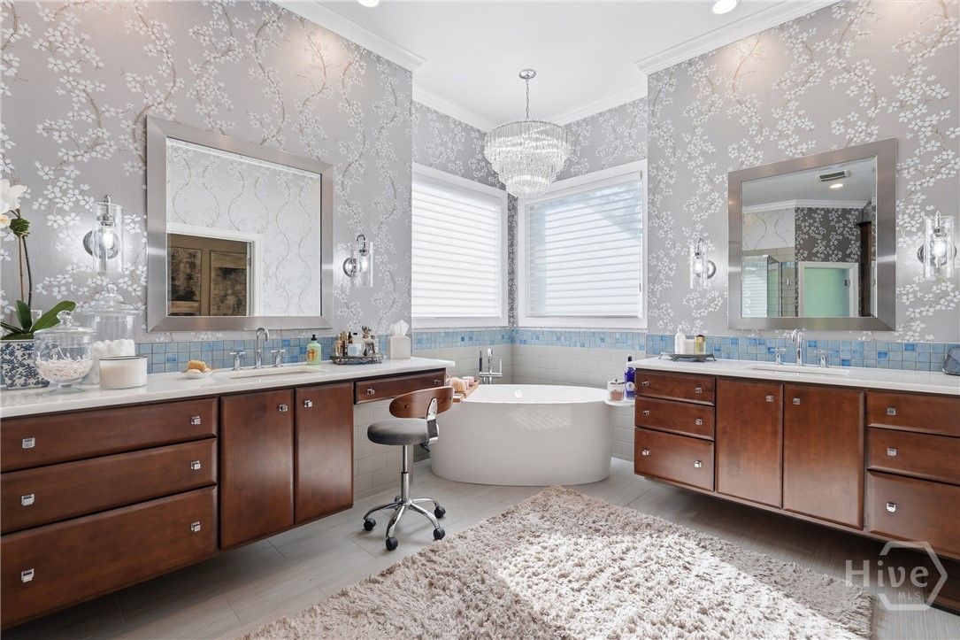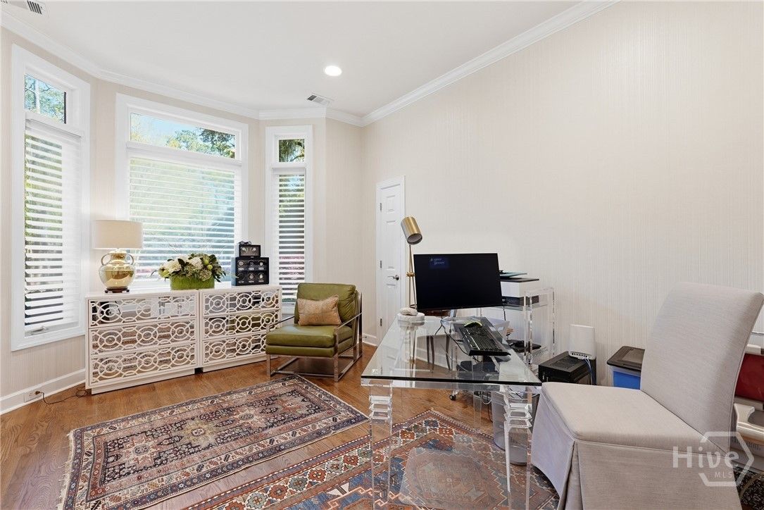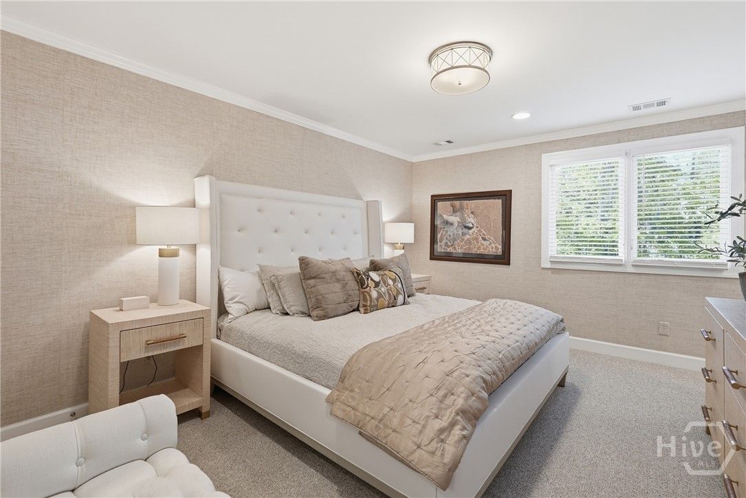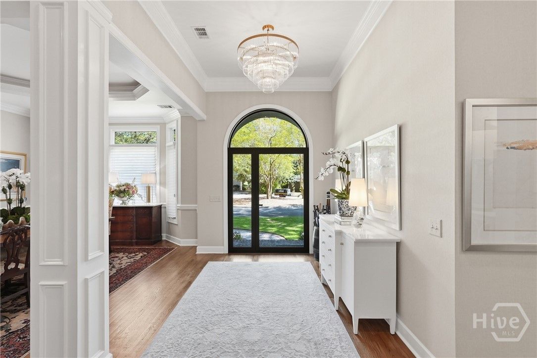 This beautifully maintained 4-bedroom, 4.5-bath home is located in the Oakridge area of The Landings on Skidaway Island and offers the perfect blend of comfort and style. Enjoy breathtaking lagoon views from the light-filled living spaces and relax year-round on the screened porch, ideal for taking in the serene surroundings. Designer finishes and 9’+ ceilings throughout this home elevate every room. The living and dining rooms are ideal for entertaining and feature a fireplace and lagoon views. The kitchen/family room combination with large island, quartz counters and high end appliances are ideal for gathering with family and friends. The thoughtfully designed layout features an owners’ suite on the main level with updated bath and an extra large walk in closet with built-ins. The first floor office features a custom storage system. 3 en-suite bedrooms on the second floor provide views, privacy and comfort for family and guests. The home has ample storage throughout, a whole house generator, landscape lighting, spray foam insulation, designer finishes, an EV car charger and a 2 car plus golf cart garage with a conditioned storage room. This homes is sited in an X-flood zone close to the village. Some amenities require additional membership.