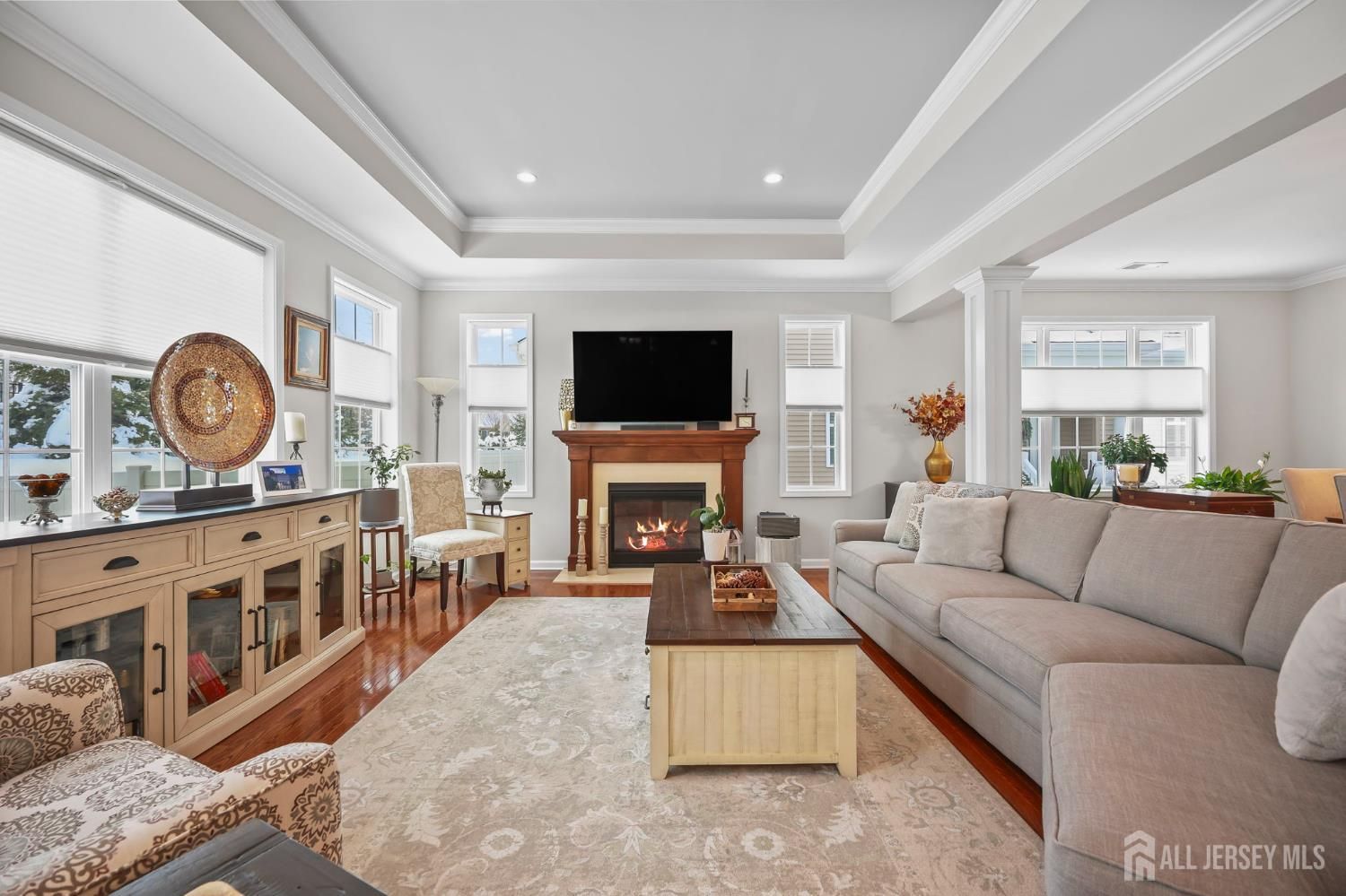 Welcome home to this meticulously maintained, oversized end-unit in Monroe's sought-after The Gables 55+ community. With over $90,000 in upgrades, soaring ceilings and high-end finishes set the tone, with a premium kitchen featuring granite counters, stainless steel appliances, and ample storage. Enjoy a sun-filled, open living space with a cozy gas fireplace, plus a first-floor primary suite with a spa-like en-suite, quartz counters, and custom closet. Upstairs offers a spacious loft, additional bedrooms, and room for guests. The finished basement includes a full bath, flexible living space, and exceptional storage. Relax in your private backyard or enjoy the Lifestyle Center with fitness, and more--just move in and enjoy, just minutes to shopping, Route 33, and the NJ Turnpike!