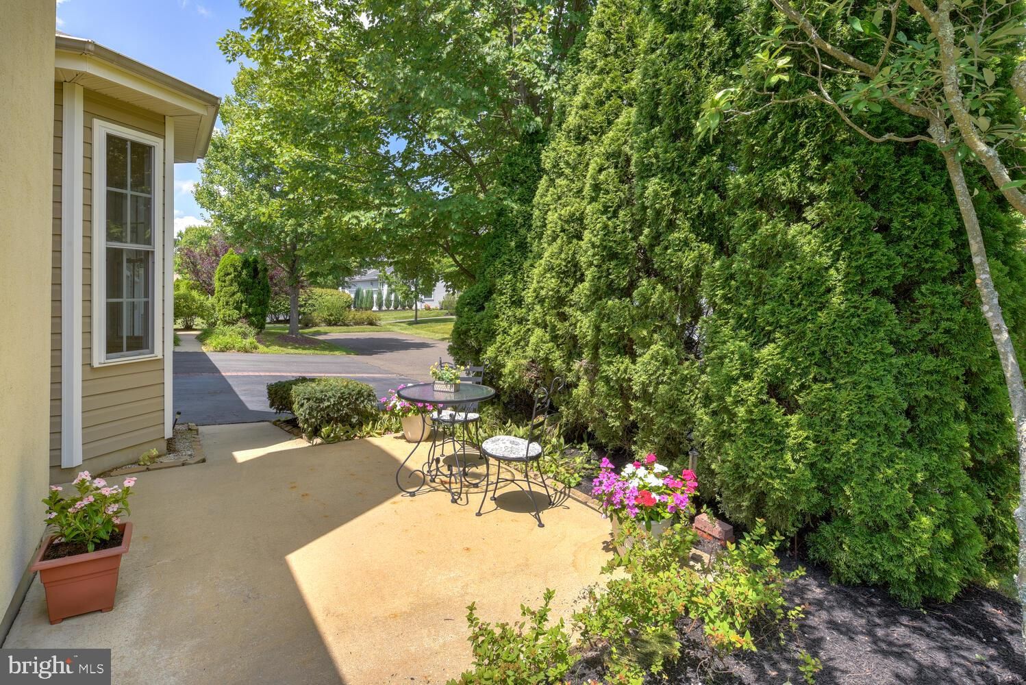 Welcome to this delightful Drake model home, ideally situated in the serene and highly sought-after Four Seasons at Historic Cranbury—an active adult community designed for relaxed, maintenance-free living. This beautiful 2 bedroom and 2 bathroom home enjoys a premium location within the community, surrounded by open space and peaceful charm. Step inside to find over 9-foot ceilings throughout, enhancing the light, open feel of the thoughtfully designed floor plan. The open-concept living and dining areas are perfect for entertaining or quiet evenings at home, featuring elegant crown molding, tubular skylight, and gleaming hardwood floors. The eat-in kitchen includes ample cabinet and counter space, pantry, breakfast bar, and a breakfast nook with bay window that fills the space with natural light. Recent updates include fresh paint throughout, new carpet in the second bedroom and closets, new stove, new refrigerator, new hot water heater, new tiled kitchen floor, and two new storm doors. The spacious primary bedroom includes a walk-in closet and bathroom complete with soaking tub, separate shower, and dual sinks. Enjoy your morning coffee or unwind in the evening on the cozy private patio. A two-car garage with automatic opener adds convenience. Residents of Four Seasons enjoy a wealth of resort-style amenities, including a clubhouse, outdoor pool, fitness center, tennis and pickleball court, and social activities. The location offers easy access to major highways and public transportation, as well as scenic Brainerd Lake, parks, historic downtown Cranbury, and a variety of local restaurants and shops. Don't miss your opportunity to own this wonderful home. Schedule your private showing today and experience the lifestyle that Four Seasons at Historic Cranbury has to offer.